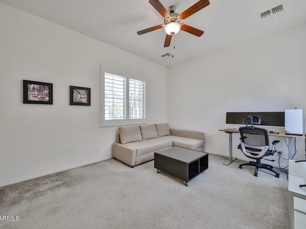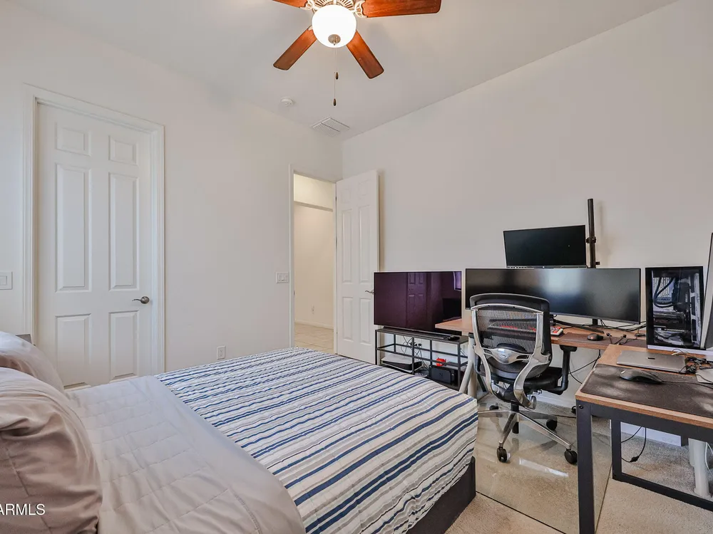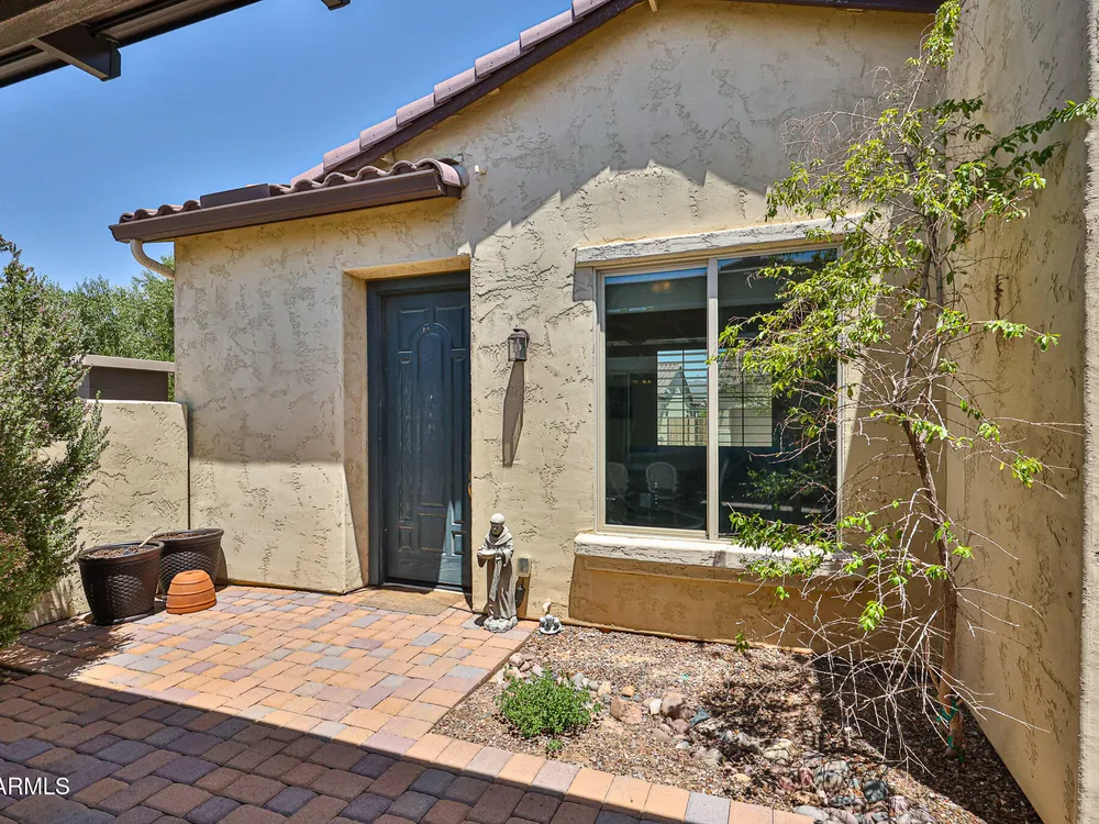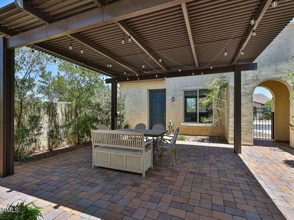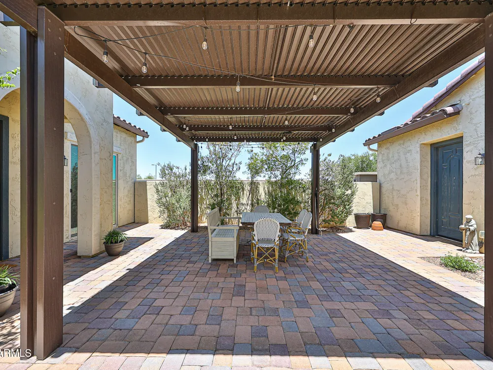 Welcome to your dream retreat in the heart of the vibrant 55+ community of CantaMia! This beautifully appointed 3-bedroom, 3-bathroom home sits on a premium corner lot and offers the perfect blend of comfort, privacy, and flexibility - ideal for entertaining, hosting guests, or multigenerational living. The detached casita is a standout feature, offering a private entrance, walk-in closet, and full bathroom - perfect for visiting family or a quiet home office. Step through the gated entry into a serene front courtyard with an adjustable pergola, where you can relax with morning coffee or unwind in the evenings under the stars. Inside the main home, an airy open-concept layout welcomes you with expansive windows that fill the space with natural light. The spacious kitchen seamlessly flows into an informal dining area and inviting great room, creating the ultimate hub for everyday living and casual gatherings. Hosting a more formal dinner? The elegant separate dining room is ready for your next celebration. A versatile flex room - currently a home gym - offers endless potential as a hobby room, office, or additional guest space. The thoughtfully designed layout includes a well-sized guest room and full bath in the main home, while the Arizona room brings the outdoors in, with screened comfort that opens to a beautifully landscaped backyard. With no neighbors to the north, you'll enjoy enhanced privacy and open desert views - an ideal setting for alfresco dining or relaxing with a good book. Need space for toys or tools? The 4' extended garage provides extra room for storage or larger vehicles. All of this is nestled in the award-winning, gated community of CantaMia, where residents enjoy a resort-style lifestyle with access to indoor and outdoor pools, a state-of-the-art fitness center, walking and biking trails, scenic lakes, pickleball and tennis courts, and an exciting calendar of events and clubs. Come experience the active adult lifestyle you've been dreaming of - where every day feels like a vacation in sunny Goodyear, Arizona.