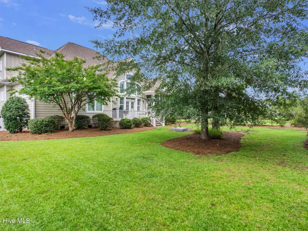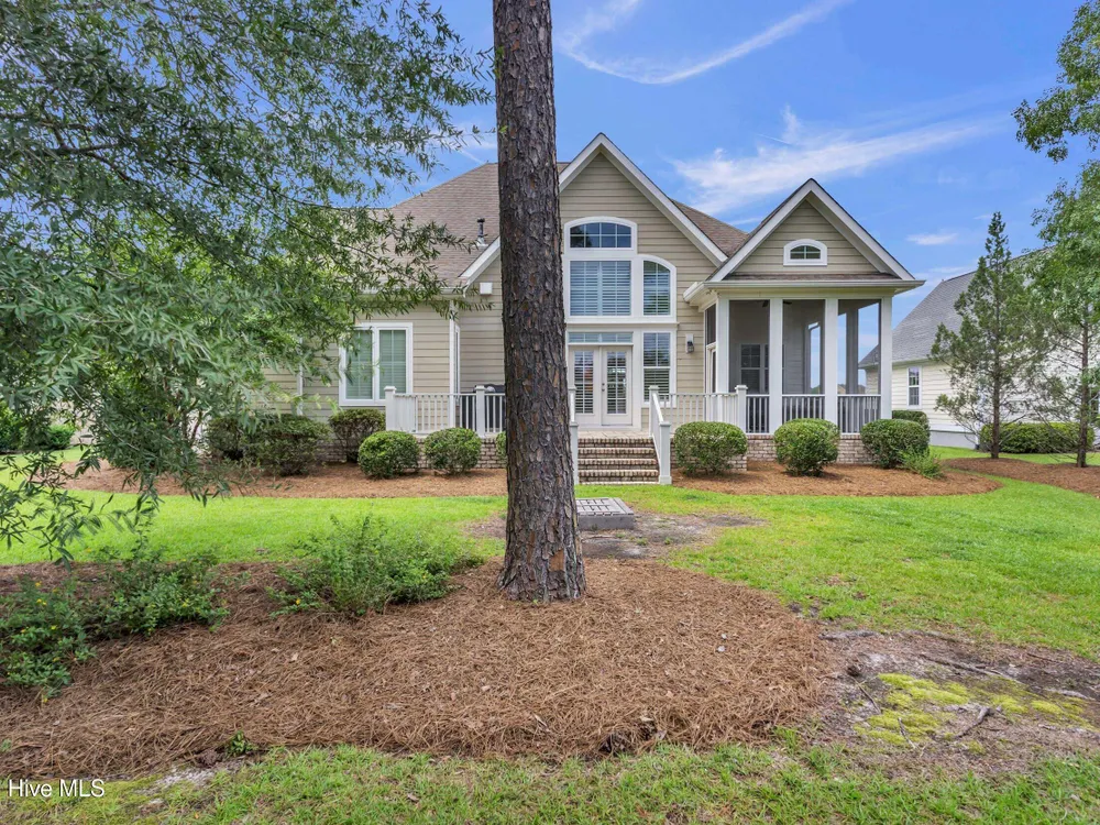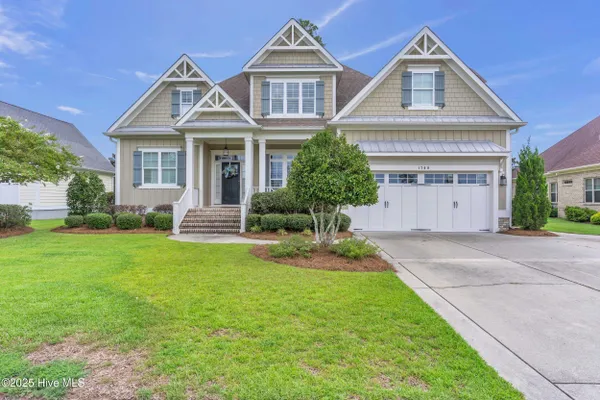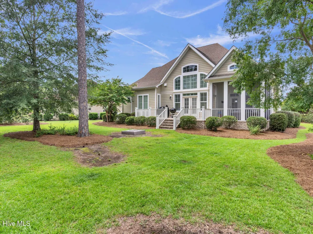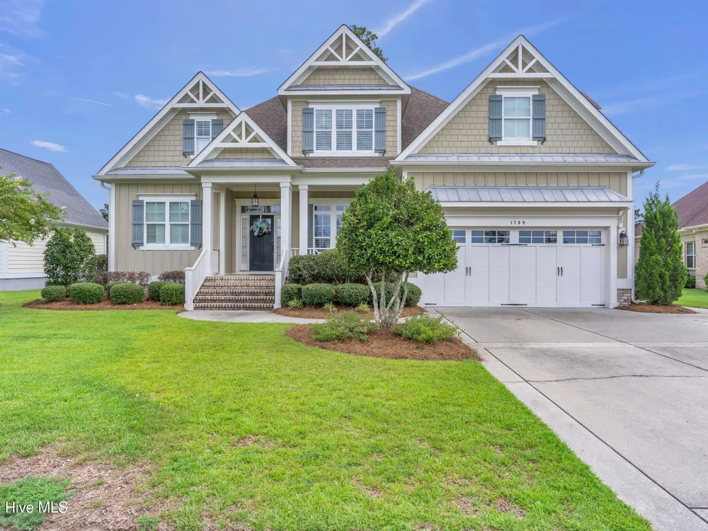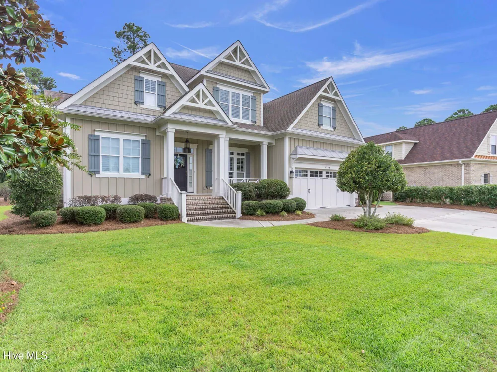 Welcome home to this stunning 5 bedroom, 3 bath home in the Walden neighborhood of Brunswick Forest, where beautiful craftsmanship meets modern comfort. Walking up to this exquisite property you will start to notice all the custom craftsman touches including wide brick steps, horse carriage garage doors, gable brackets, hardie board siding, metal roof overhang, intricate trim around windows, and even transom windows above the front door for inviting in more natural light. Entering, you are greeted by a grand foyer framed by a series of architectural details, intricate trim, substantial crown moldings, layered moldings, that lead you into the main living areas. The dining room offers a sophisticated backdrop for formal dinners with trey ceiling, board and batten wall details, and floor to ceiling windows. The expansive living areas flow seamlessly, creating the perfect setting for both everyday living and entertaining. The living room has built in arched bookcases, fireplace, a back wall of windows and glass doors, and exposed beams. The kitchen has an island with shiplap touches, natural brown cabinets which adds depth and some have glass door inserts, granite countertops, gas range and stainless steel appliances and large walk in pantry. There is also a cozy nook for more relaxed dinners that has access to the screened porch for indoor/outdoor dining. The owners bedroom is located on the first floor and has a private en suite bathroom complete with soaking bathtub, tiled walk in shower with glass door, separate vanities and custom framed mirror. There is also an expansive walk in closet that feels like a small boutique. There are 4 additional bedrooms that are unique and offer custom cubbies, built in benches, custom mill work touches all throughout and plenty of space. Outdoor living is easy with a deck, screened porch and large backyard. This home is better experienced in person. Make time to see it today!