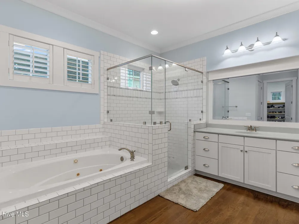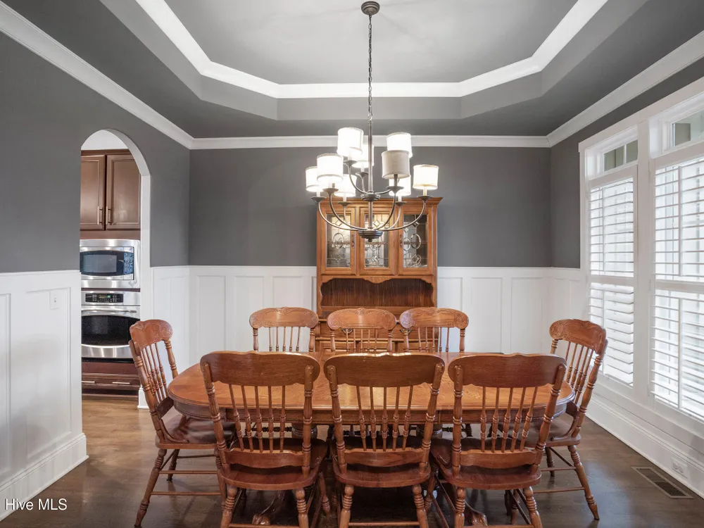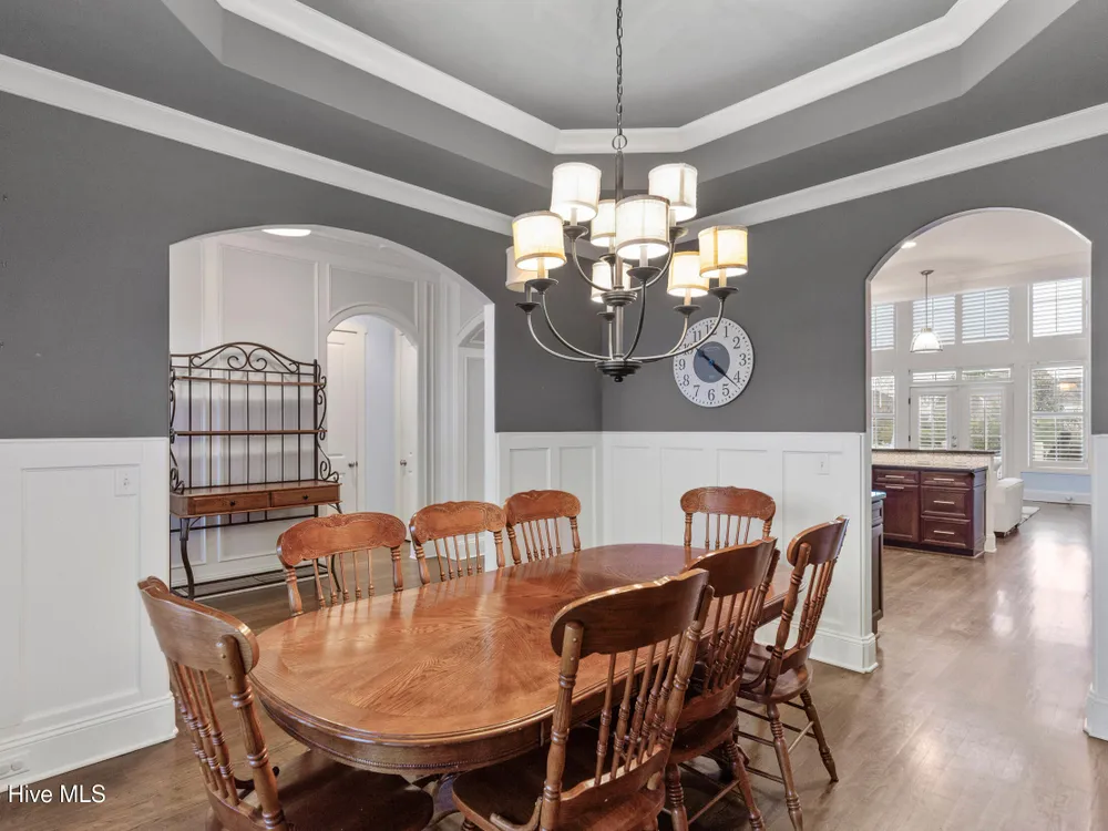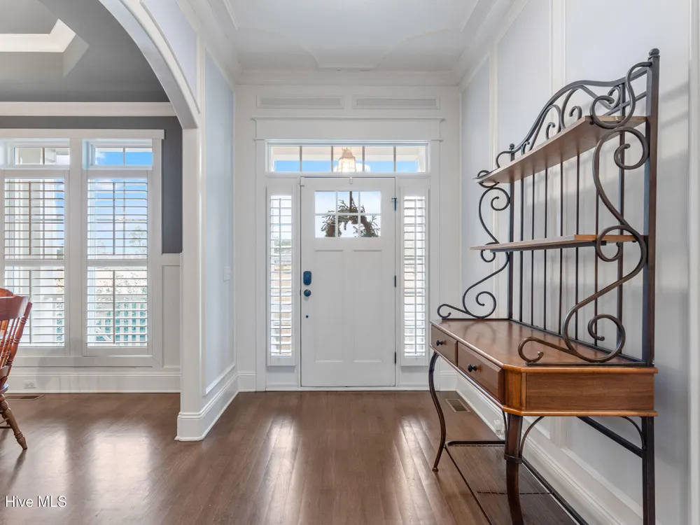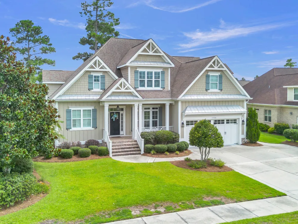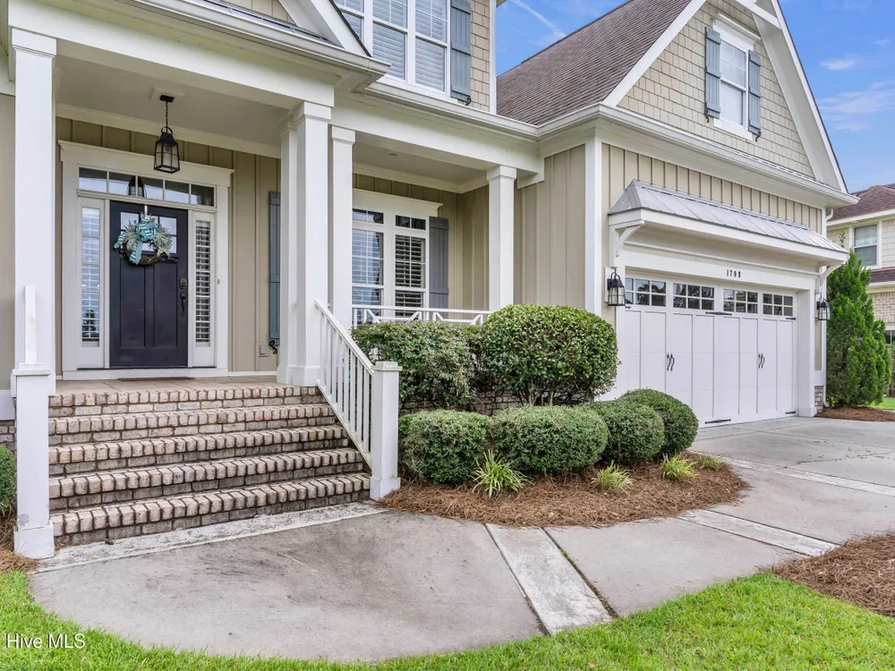 Welcome home to this stunning 5 bedroom, 3 bath home in the Walden neighborhood of Brunswick Forest, where beautiful craftsmanship meets modern comfort. Walking up to this exquisite property you will start to notice all the custom craftsman touches including wide brick steps, horse carriage garage doors, gable brackets, hardie board siding, metal roof overhang, intricate trim around windows, and even transom windows above the front door for inviting in more natural light. Entering, you are greeted by a grand foyer framed by a series of architectural details, intricate trim, substantial crown moldings, layered moldings, that lead you into the main living areas. The dining room offers a sophisticated backdrop for formal dinners with trey ceiling, board and batten wall details, and floor to ceiling windows. The expansive living areas flow seamlessly, creating the perfect setting for both everyday living and entertaining. The living room has built in arched bookcases, fireplace, a back wall of windows and glass doors, and exposed beams. The kitchen has an island with shiplap touches, natural brown cabinets which adds depth and some have glass door inserts, granite countertops, gas range and stainless steel appliances and large walk in pantry. There is also a cozy nook for more relaxed dinners that has access to the screened porch for indoor/outdoor dining. The owners bedroom is located on the first floor and has a private en suite bathroom complete with soaking bathtub, tiled walk in shower with glass door, separate vanities and custom framed mirror. There is also an expansive walk in closet that feels like a small boutique. There are 4 additional bedrooms that are unique and offer custom cubbies, built in benches, custom mill work touches all throughout and plenty of space. Outdoor living is easy with a deck, screened porch and large backyard. This home is better experienced in person. Make time to see it today!