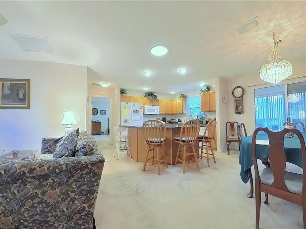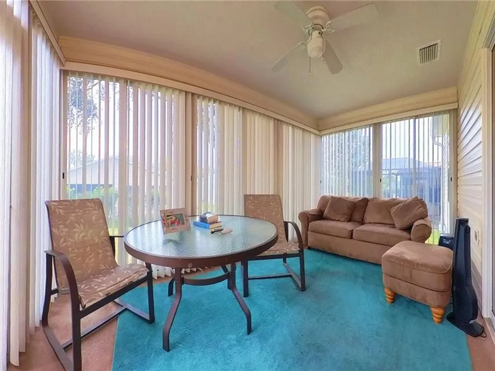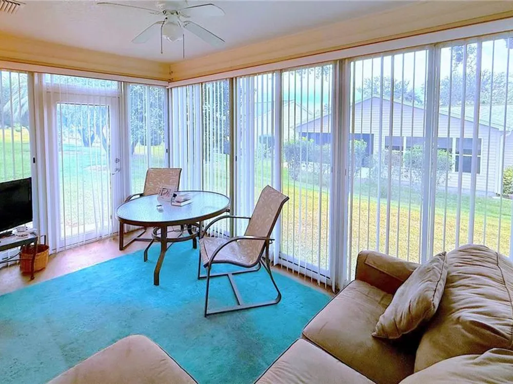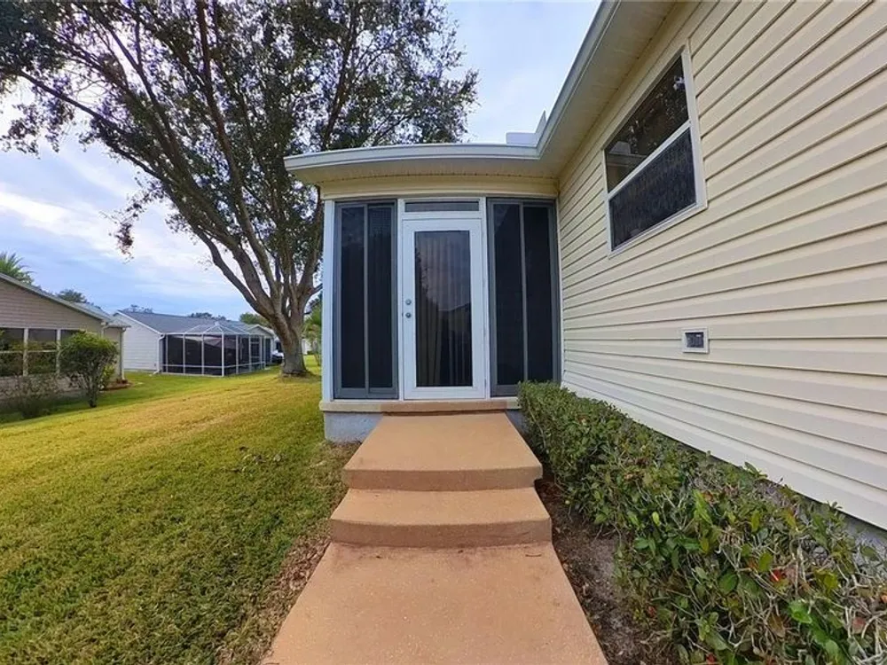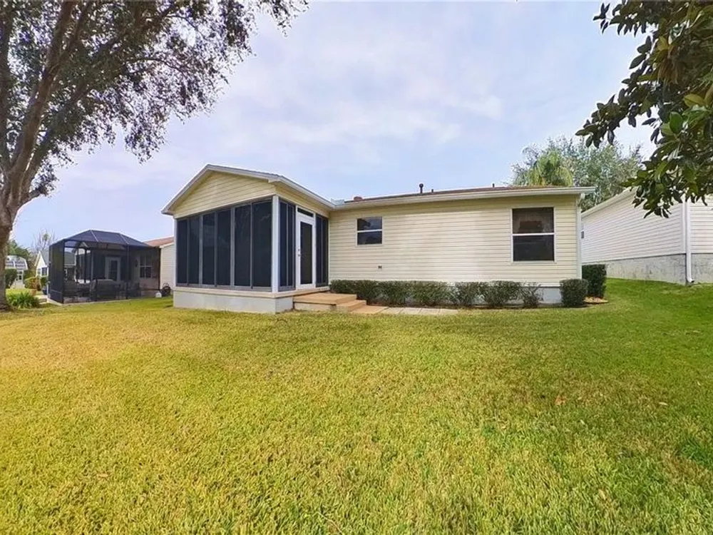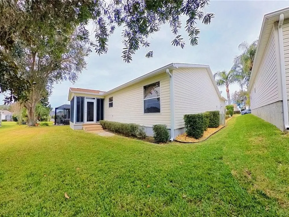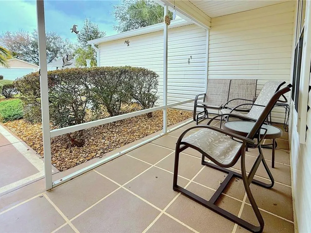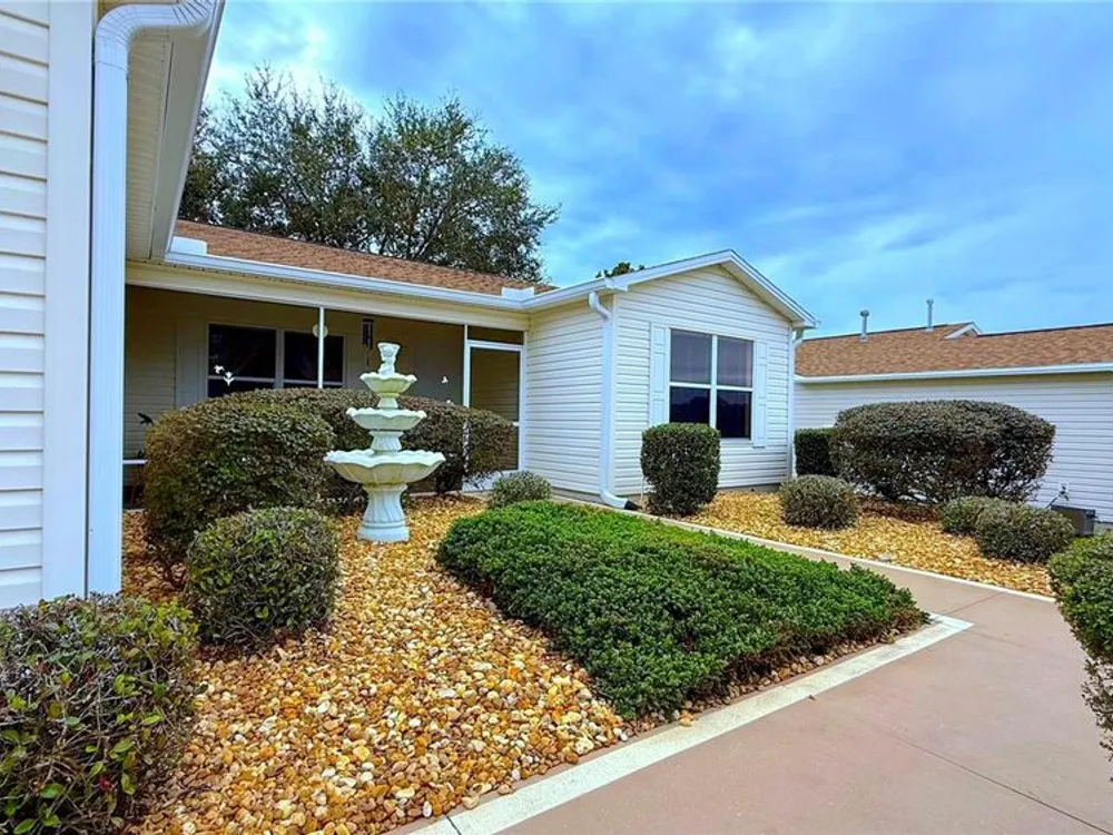 This beautifully landscaped Amarillo home in the Village of Woodbury is a true gem and even better that it is not on a through-street. The home has an open floor plan, featuring 3 bedrooms and 2 bathrooms, inside laundry, along with a 2-car garage. The lanai is glass-enclosed and is also on the central air of the house. The modern kitchen is a chef’s delight, equipped with granite countertops, newer appliances, and a convenient breakfast bar, perfect for casual dining. The expansive primary bedroom offers an ensuite bathroom and a generous walk-in closet, ensuring your comfort and privacy. Two Solar Tubes strategically placed throughout the home provide ample natural light, creating a warm and inviting atmosphere. The two additional bedrooms are situated on the opposite side of the home, offering flexibility for guests or family members, and the guest bath features a single vanity and a tub/shower combo, along with a linen closet. Recent updates include a new roof installed in 2023, offering peace of mind for years to come. Additional highlights include attic storage space, a utility sink in the garage, and a water filtration system. Less than 5 minutes to the grocery store. This prime location allows easy access to both Highway 441 and County Road 42, placing you in proximity to the VA Center at Mulberry Plaza, Spanish Springs Town Square, Savannah Center, Polo Fields, and the First Responders Recreation Center. Enjoy a variety of activities including golfing, tennis, pickleball, shuffleboard, water volleyball, shopping, and dining—all just moments away! Experience the vibrant lifestyle of The Villages—your NEW home awaits!
