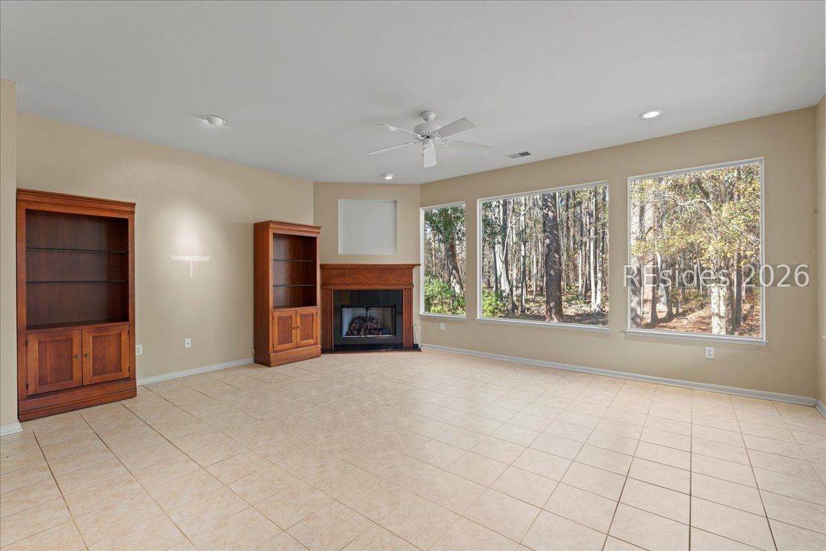 Located in Sun City's Alexandria Village, just minutes from the main gate and primary amenities, this Longleaf model offers a comfortable and functional layout with thoughtfully separated living spaces. The home features three bedrooms and two bathrooms, along with generous living and dining areas designed for both everyday living and entertaining.A fireplace adds warmth and character to the main living area, while the kitchen flows seamlessly into the surrounding spaces. Outdoor living is highlighted by a spacious travertine patio overlooking a private, wooded backdrop, ideal for relaxing or hosting guests.Conveniently situated near golf, fitness, dining, and social amenities, this home offers easy access to everything Sun City has to offer, along with nearby shopping, dining, and medical facilities.