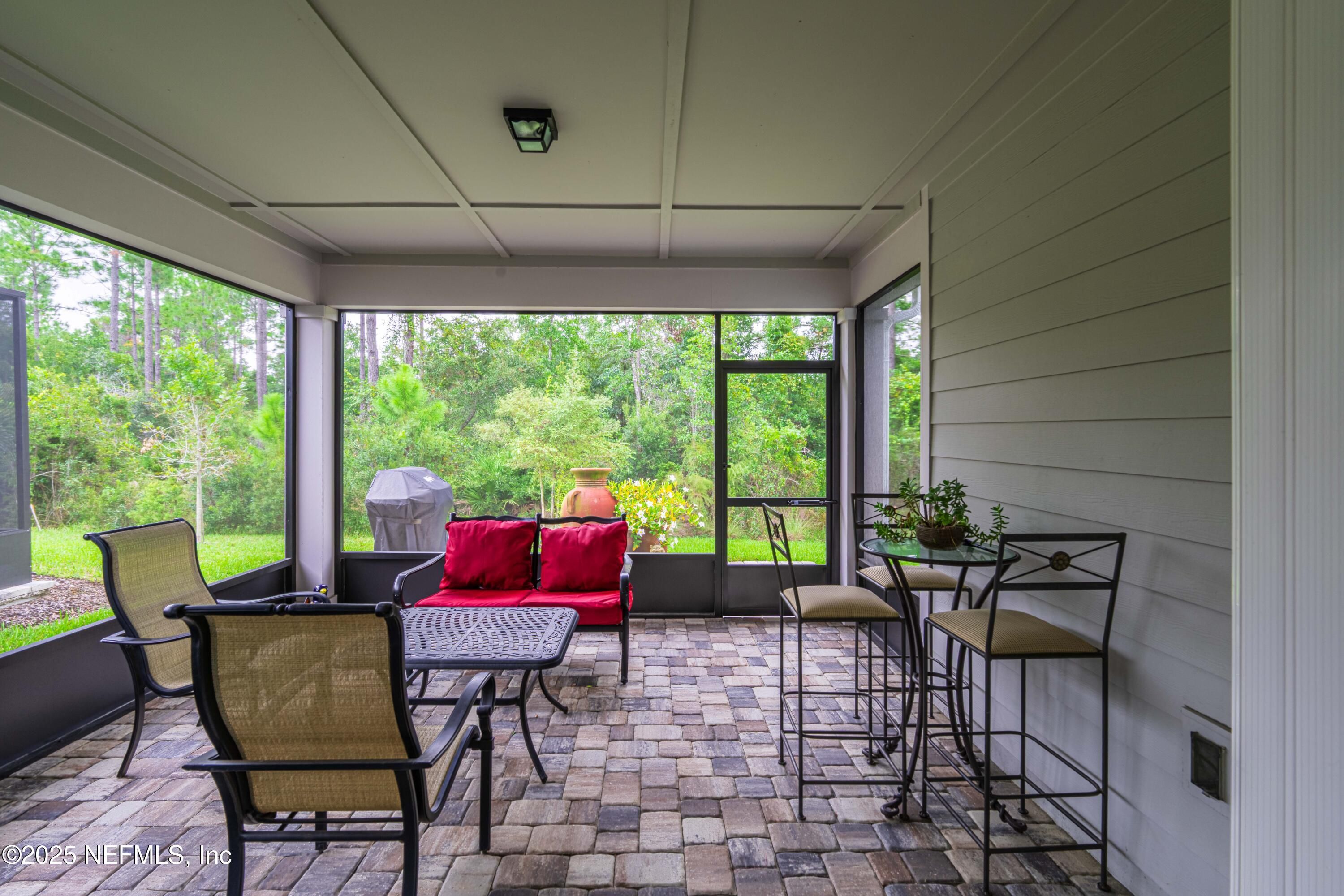 Beautiful Villa on a premier preserve lot located at the end of the Cul-de-sac. Kitchen includes white cabinetry, quarts counter tops with custom back splash, Island pendent lighting, self closing drawers, and upgraded KitchenAid appliances. The primary bath has upgraded tile floor and a frameless door walk in shower. This 2 bedroom home with the additional flex room offers plenty of space in a resort type setting. The garage offers a 4 foot has a extension, The home offers an extended, covered lanai which is plumbed for gas. Beyond the lanai is an extended outdoor patio. The HOA dues, for the Villa's , include lawn care and outside maintenance. This 55+ community offers a restaurant, club house, fitness room, pickleball courts, tennis courts, bocci ball courts, 2 swimming pools (one heated in the winter), large outdoor spa and numerous clubs and activities. The community is located near medical care facilities and shopping. It is only a 20 minute drive to Saint Augustine