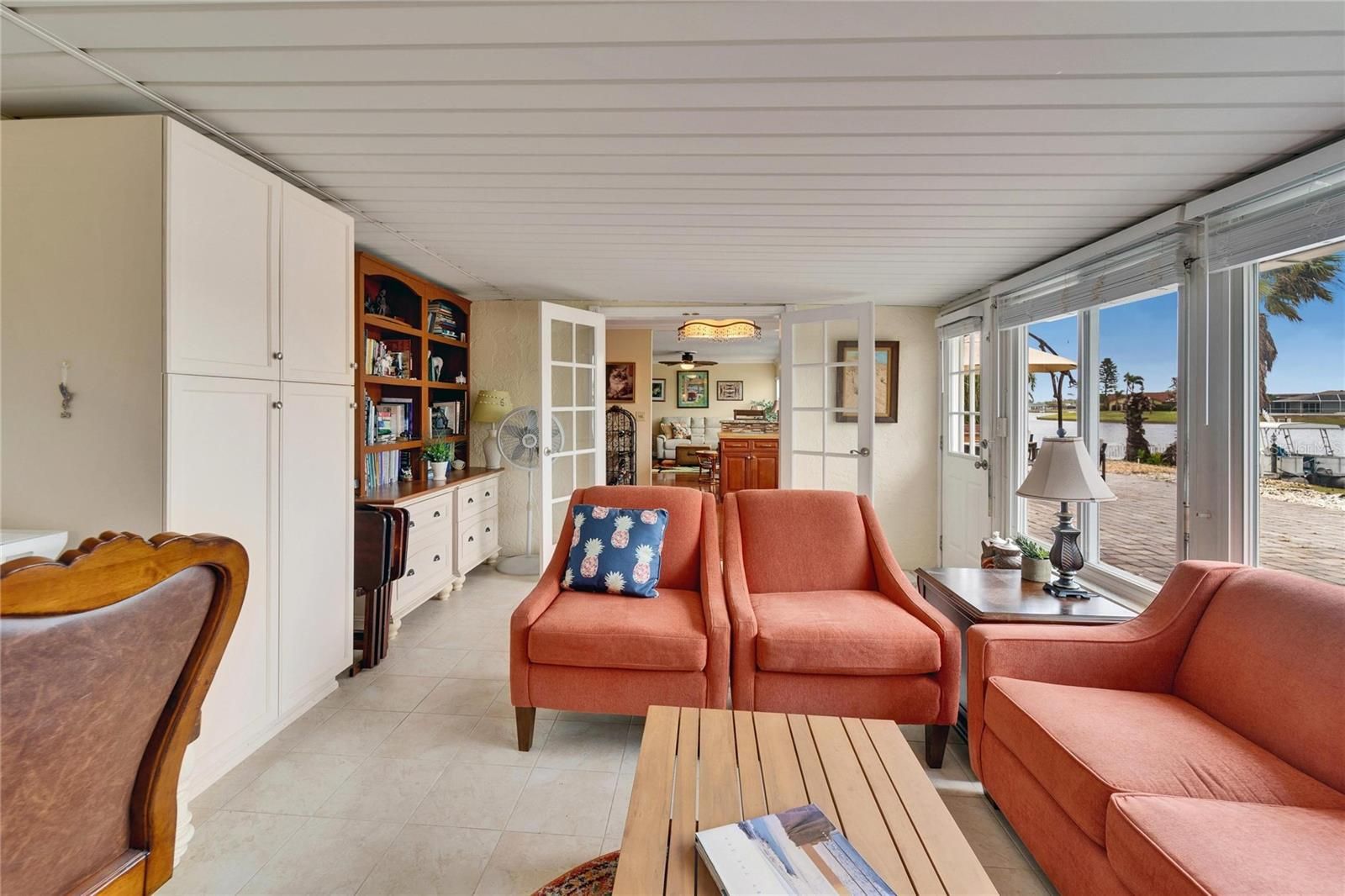 One or more photo(s) has been virtually staged. You must see this beautiful home located on Simmons Lake in the sought after 55+ community of Sun City Center. When you pull up to the home your eyes will be drawn to the pineapple post light. A paver brick driveway and walkway will lead you to the beveled lead glass entry door. As you first enter the home your eyes will be drawn through the dining and living rooms to the view of the lake through large windows all across the back of the family room. When you enter the spacious primary bedroom to the left of the dining room you will notice a small walk-in closet. As you get further into the room your eyes will be drawn to the wood paneled ceiling with a custom ceiling fan/light. The existing owner added a large walk-in closet with built-ins. The en-suite bath was expanded and completely remodeled. Take note of the tall dual sink vanity, garden soaker tub, and the large, tiled shower with a flat river rock floor. Do not miss the electric fireplace as well. The kitchen was completely remodeled. You will find solid wood counters and cabinet, granite countertops, soft close drawers, panty with slide out shelving and stainless-steel Samsung appliances. The range not only has a convection oven, but the oven is also dual zoned so you can bake two different items at the same time and has a warming drawer. A dry bar with seating and a small appliance hutch completes this fantastic room. The second bedroom has a custom murphy bed, and the second bathroom has also been completely remodeled. The oversized garage has plenty of built-in storage, a work bench and a craft bench. New roof, lanai screen cage and exterior paint in 2025. New hot water tank in 2024, HVAC in 2018. Make sure you pick up a feature sheet to see everything the owner has done to the home. Centered between the Publix shopping center, Aldi's, Walmart, the Sun City Center Plaza and this self-contained community's world-class amenities, all you will need is a golf cart to start enjoying the Sun City Center lifestyle. Sun City Center is Florida’s most affordable active living senior community, with an exceptional range of recreational and social amenities. Minutes from an assortment of Florida's best beaches, Tampa's convenient cruise port and Disney World, this debt-free community has two-multimillion-dollar clubhouses, 3 heated pools, a state-of-the-art fitness center, a sports complex, his & her saunas, an arts & crafts building and multiple golf courses. Sun City Center has the very best medical facilities with its own hospital, and free ambulatory and paramedic service. This 55+ Del Webb community has nearly 200 social and sports clubs and endless entertainment resources all accessible by golf cart. There's never a boring minute in Sun City Center. With near perfect weather year-round, Sun City Center is one of Florida's best places to live.