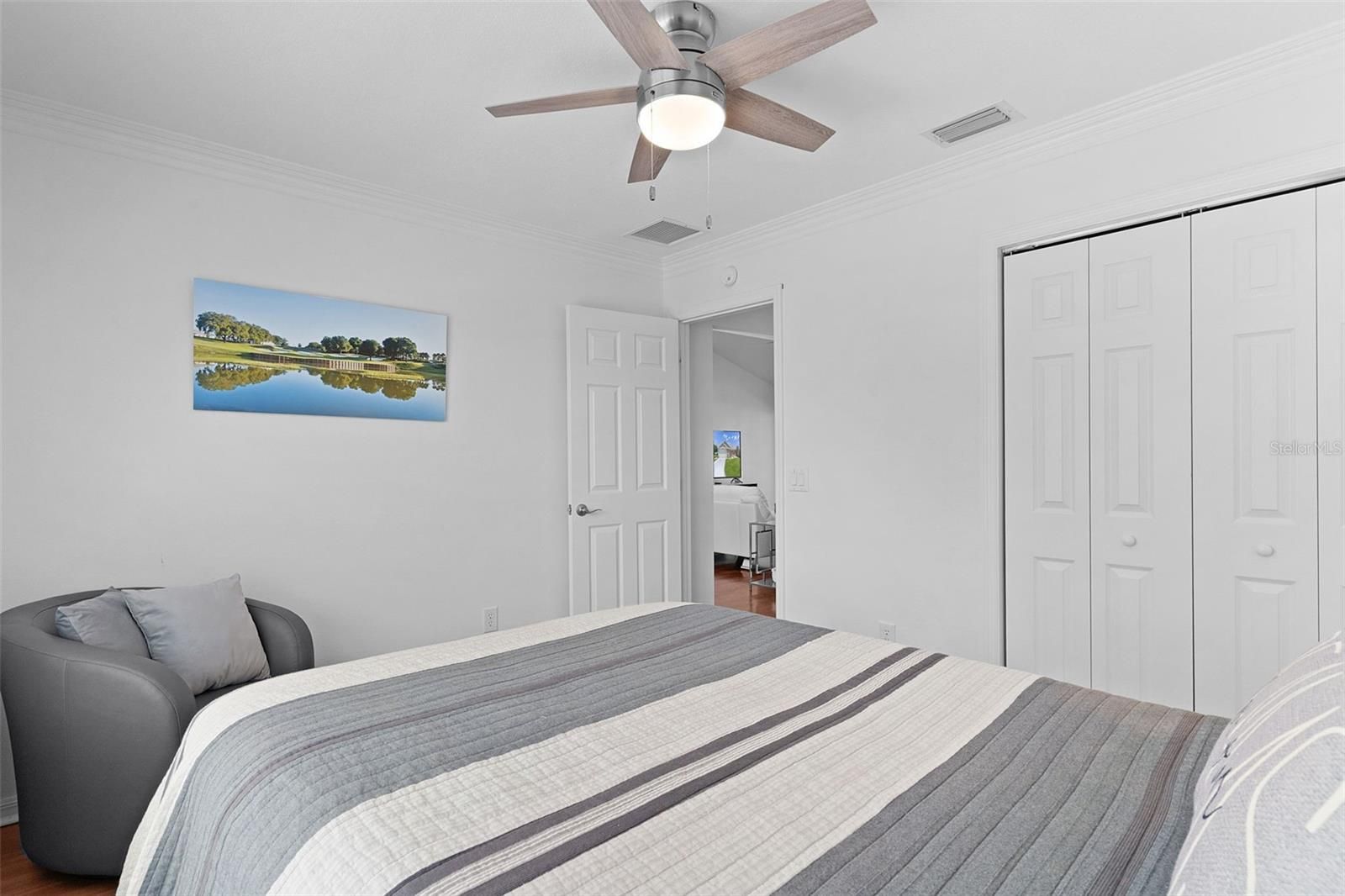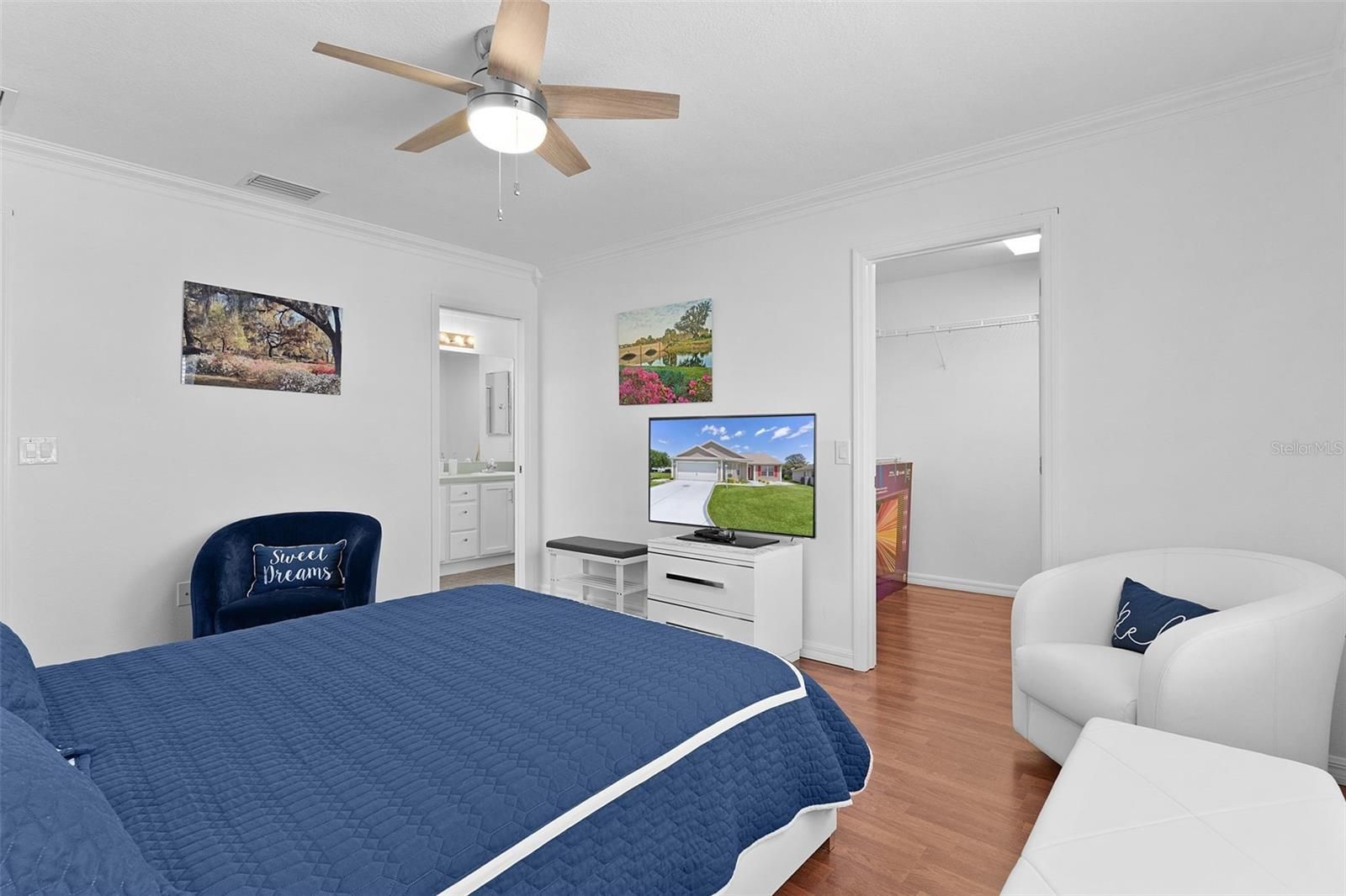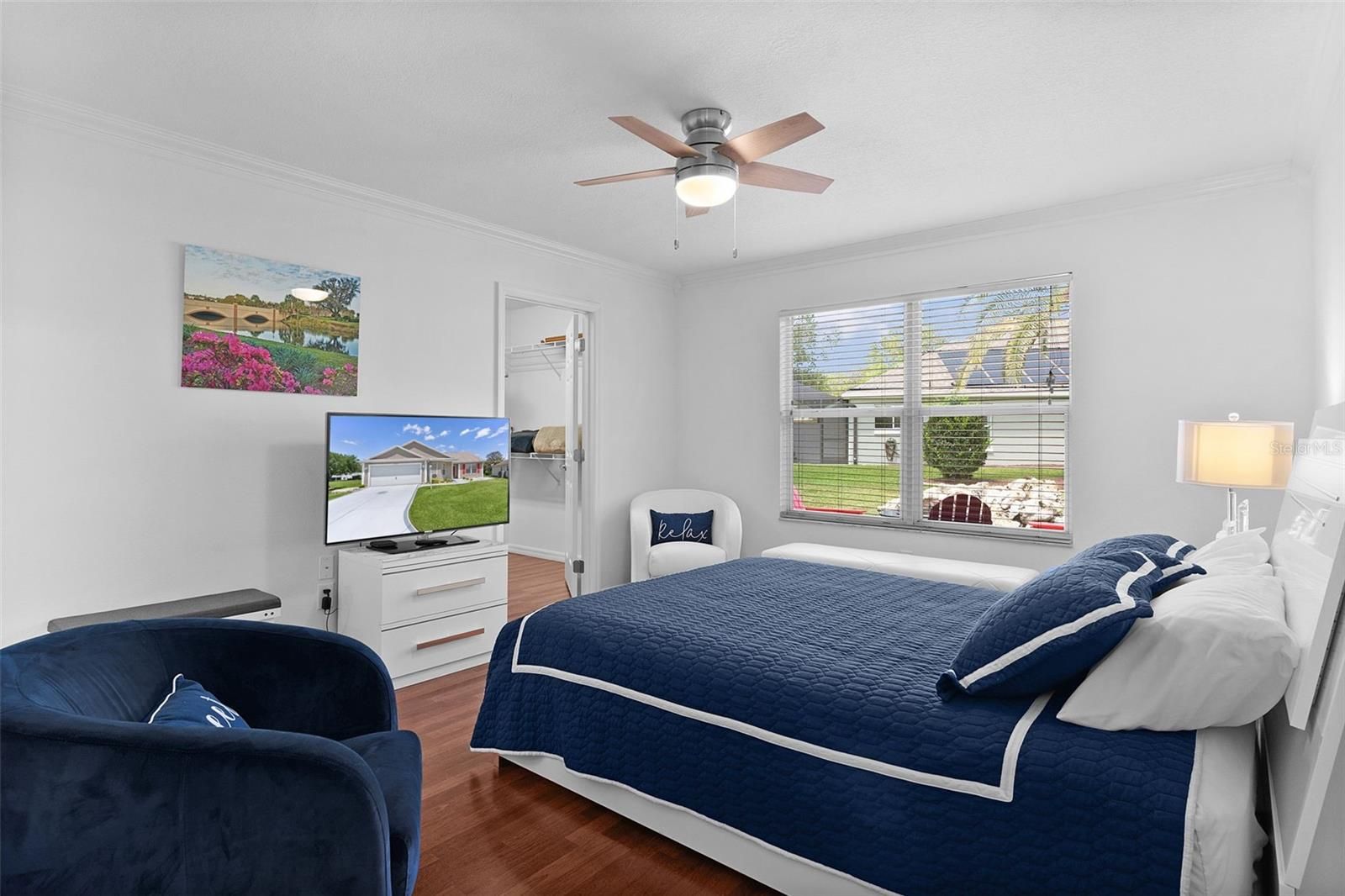 - Ceiling Fan(s), Crown Molding, High Ceilings, Open Floorplan, Thermostat, Vaulted Ceiling(s), Walk-In Closet(s)