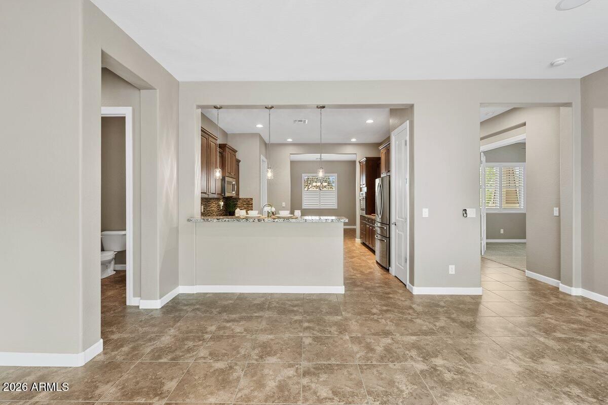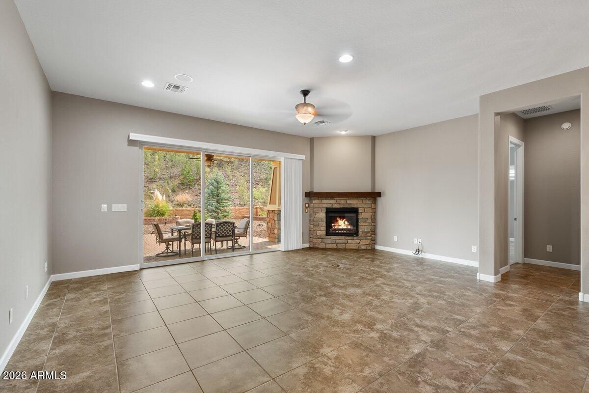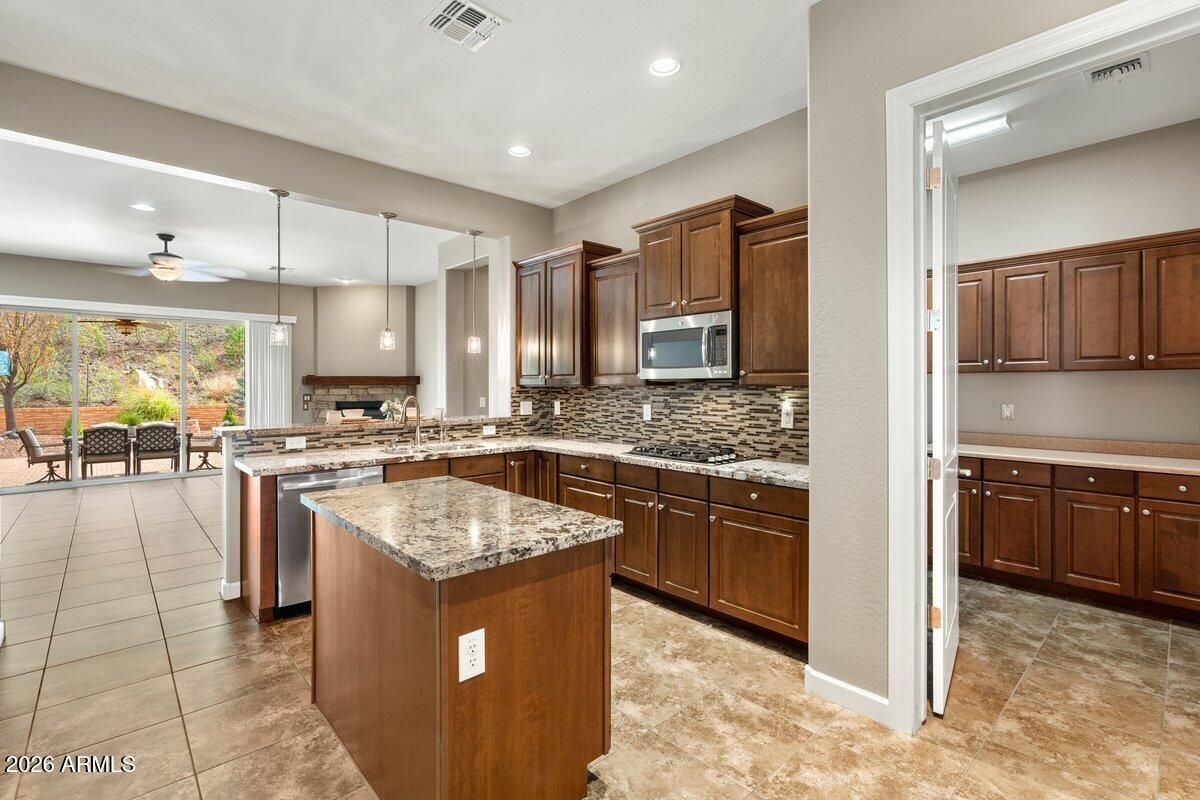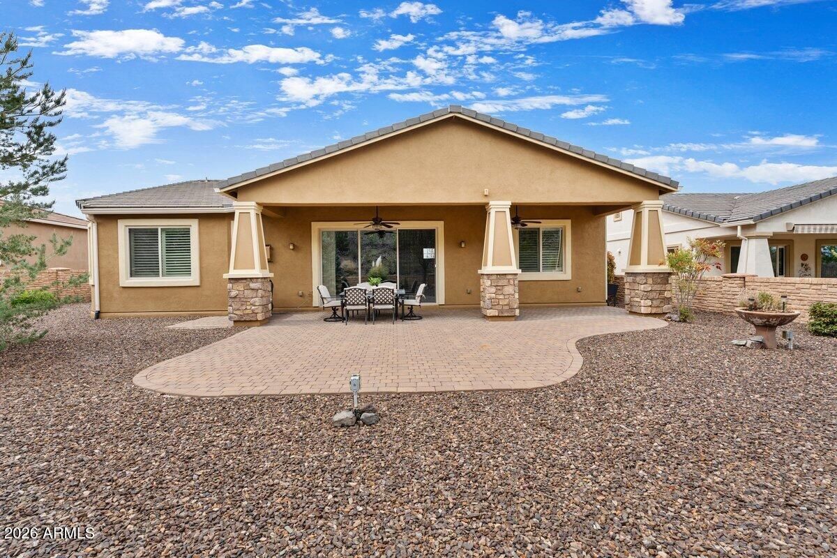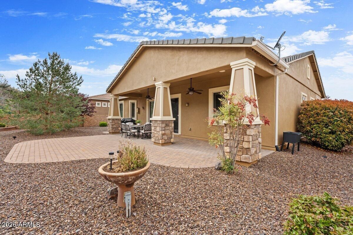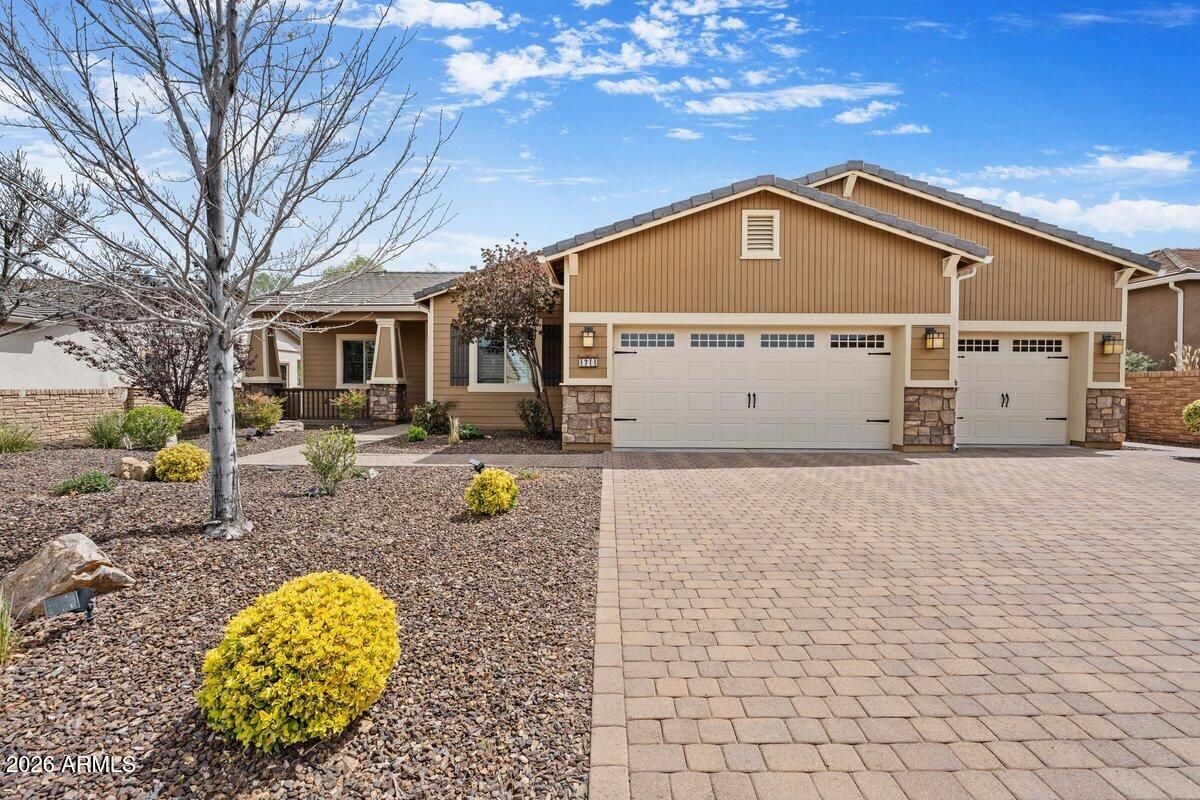 Discover a serene and elevated lifestyle in the Pinnacle Views lll neighborhood at Prescott Lakes. This single level home offers a desirable split floor plan designed for both comfort and privacy. The beautifully appointed kitchen features upgraded cabinetry, GE stainless steel appliances, Samsung refrigerator, reverse osmosis system, upgraded granite countertops, an island for gathering, and countertop seating. Enjoy entertaining in the ideally located dining room filled with natural light and adjacent to the kitchen.The spacious laundry room includes LG washer and dryer, upper and lower cabinets and ample counter space. The primary suite features a charming bay window overlooking the lush backyard, a relaxing garden tub, separate tiled shower, dual sink vanity and a large walk-in closet. The guest bedroom includes its own private full ensuite bathroom. The office is enhanced with double doors and can serve as a third bedroom. The home has been lovingly cared for with fresh interior paint, shutters and plush bedroom carpet with premium padding all in 2024. Step outside to a tranquil backyard featuring a covered extended paver patio with two ceiling fans. Both the front and backyard showcase a variety of landscaping, including apple trees, red maples, aspens, Colorado blue spruce, iris, mums and more. The 3 car garage has new garage doors, a 4ft extension, service door, soft water system and instant hot recirculating water heater. The Prescott Lakes community is set among rolling hills, breathtaking views, walking trails, and offers an active social lifestyle just minutes from downtown Prescott. At the heart of the community is The Club at Prescott Lakes, featuring a Hale Irwin designed championship golf course, a full service athletic club, pools, tennis and pickleball courts, and an inviting clubhouse with dining, a bar and comfortable gathering spaces. Enjoy the lifestyle and welcoming community where beautiful surroundings and everyday conveniences make it easy to feel right at home.