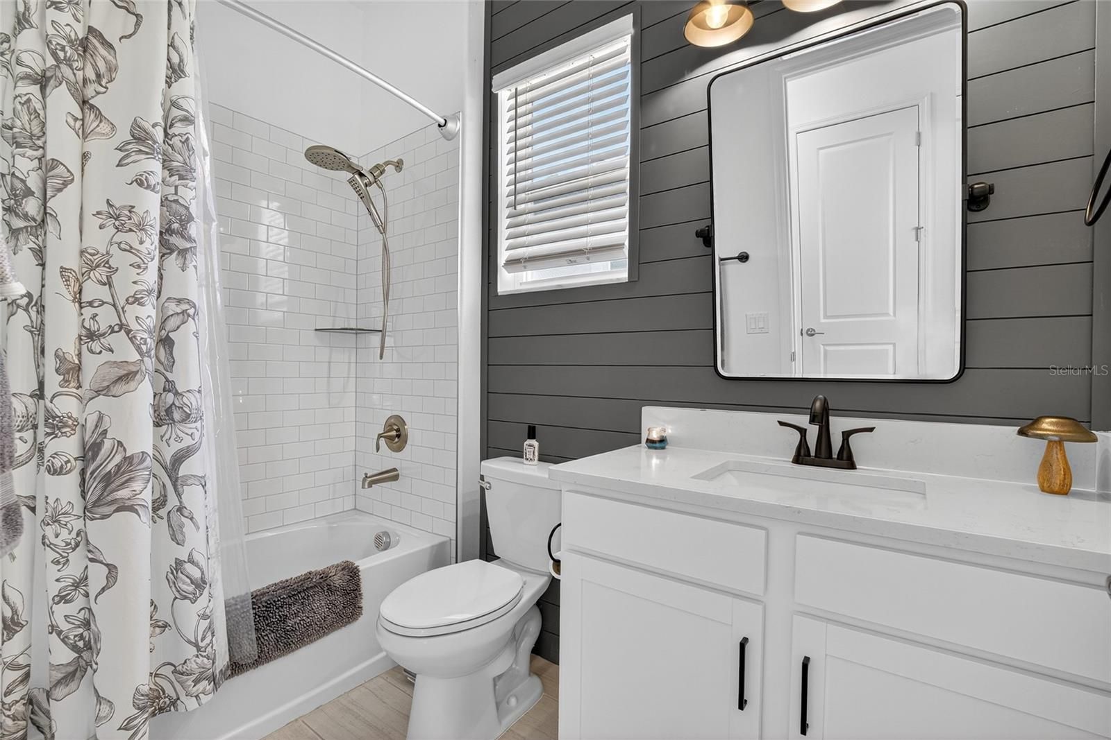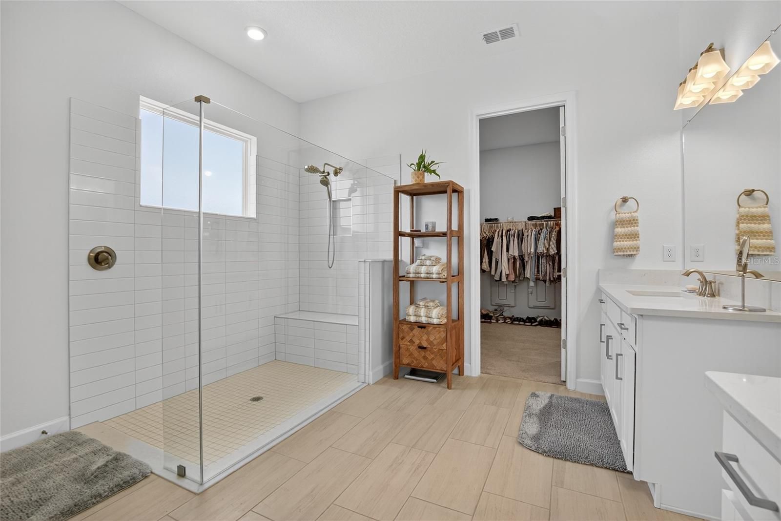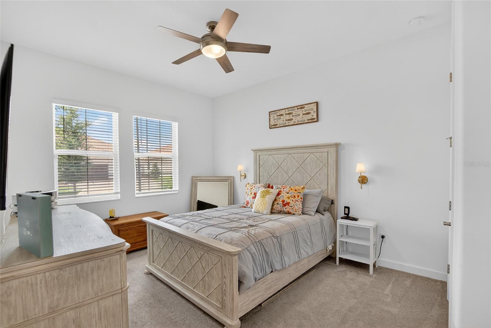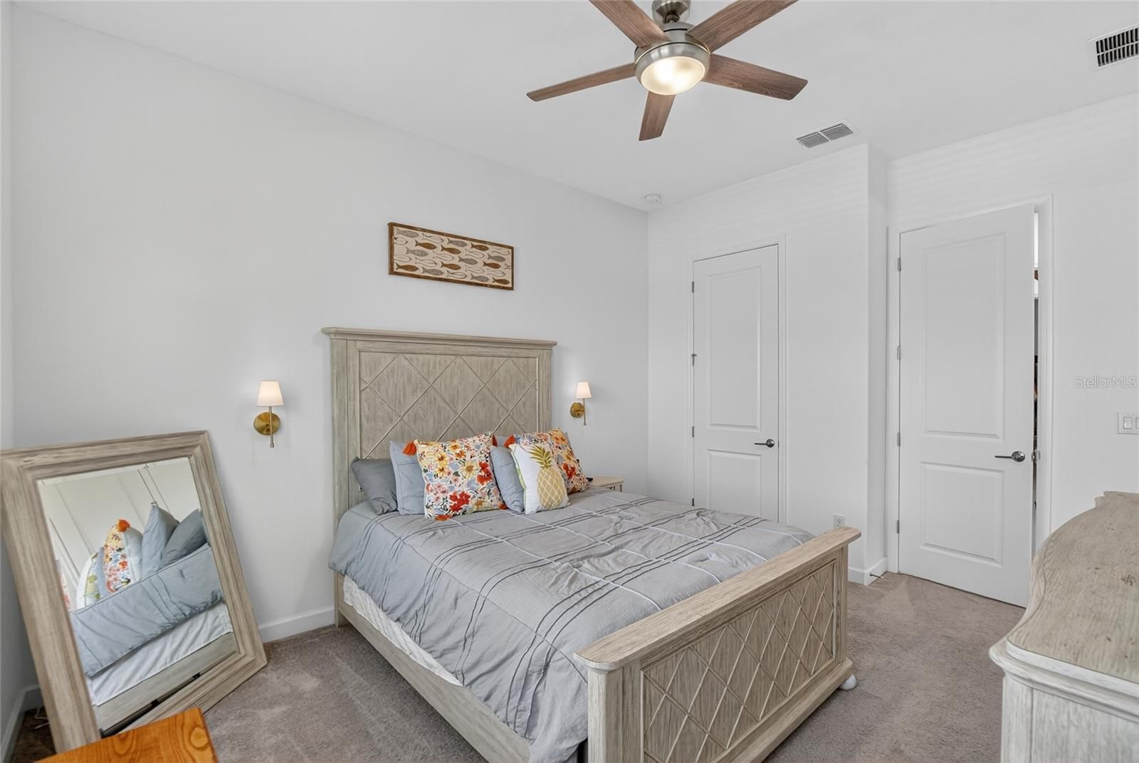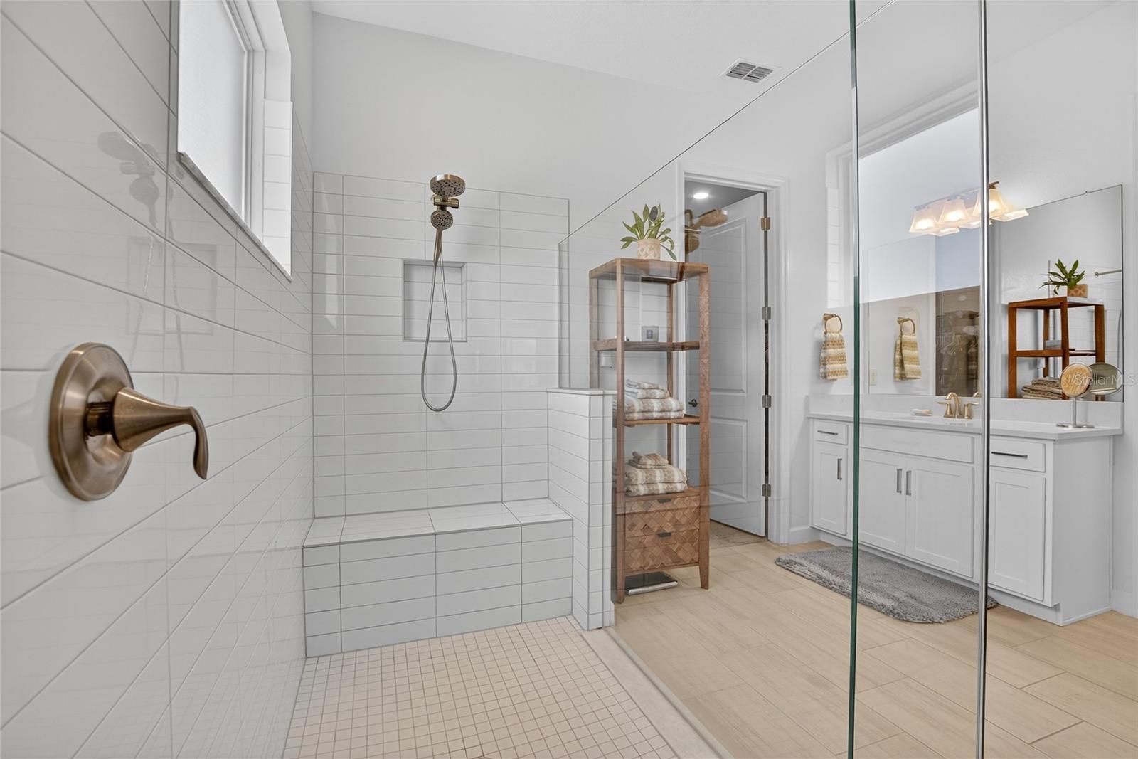 Experience resort-style living in Medley at Southshore Bay, a premier 55+ active adult community! This elegant 4-bedroom, 3-bathroom home with a 3-car garage showcases an open floor plan filled with high-end finishes and luxury tile plank flooring throughout. The heart of the home is the expansive kitchen, featuring quartz countertops, modern cabinetry, stainless steel appliances, a large center island, and both a walk-in and butler’s pantry for added storage and prep space. The kitchen flows effortlessly into the dining and living areas, creating the perfect atmosphere for everyday living and entertaining. The split-bedroom design offers privacy for everyone. The spacious primary suite includes a spa-like ensuite with dual vanities, a large walk-in shower, and an oversized walk-in closet with direct access to the laundry room. Bedrooms 2 and 3 share a convenient Jack-and-Jill bath, while Bedroom 4 is tucked away with a nearby full bath—ideal for guests or in-laws. Step outside to your private retreat featuring a luxurious pool and spa surrounded by a large screened-in patio with tiled flooring and cooling ceiling fans—perfect for relaxing afternoons or hosting gatherings year-round. Life in Medley is about more than just the home—it’s about the lifestyle. Residents enjoy both manned and unmanned gated entrances for secure, easy access, as well as golf-cart friendly paths and trails for exploring the community. The private clubhouse is the social hub, offering a café and bars, billiards, card and game rooms and a formal ballroom for special events. A monthly calendar of activities keeps the community buzzing with energy, offering everything from karaoke nights and comedy shows to live bands, as well as special interest and social groups—including men’s cigar gatherings and several hobby clubs that make it easy to connect with neighbors. Outdoor recreation abounds with pickleball and bocce courts, a dog park, a convenient dog bathing station, walking trails, and a resort-style heated pool—all just steps from the incredible 5-acre Metro Lagoon by Crystal Lagoons. With HOA fees covering internet, basic cable and lawn care, you can spend less time on chores and more time enjoying the endless activities at your fingertips. This move-in ready home offers the perfect blend of luxury, convenience, and community—where every day feels like a vacation.