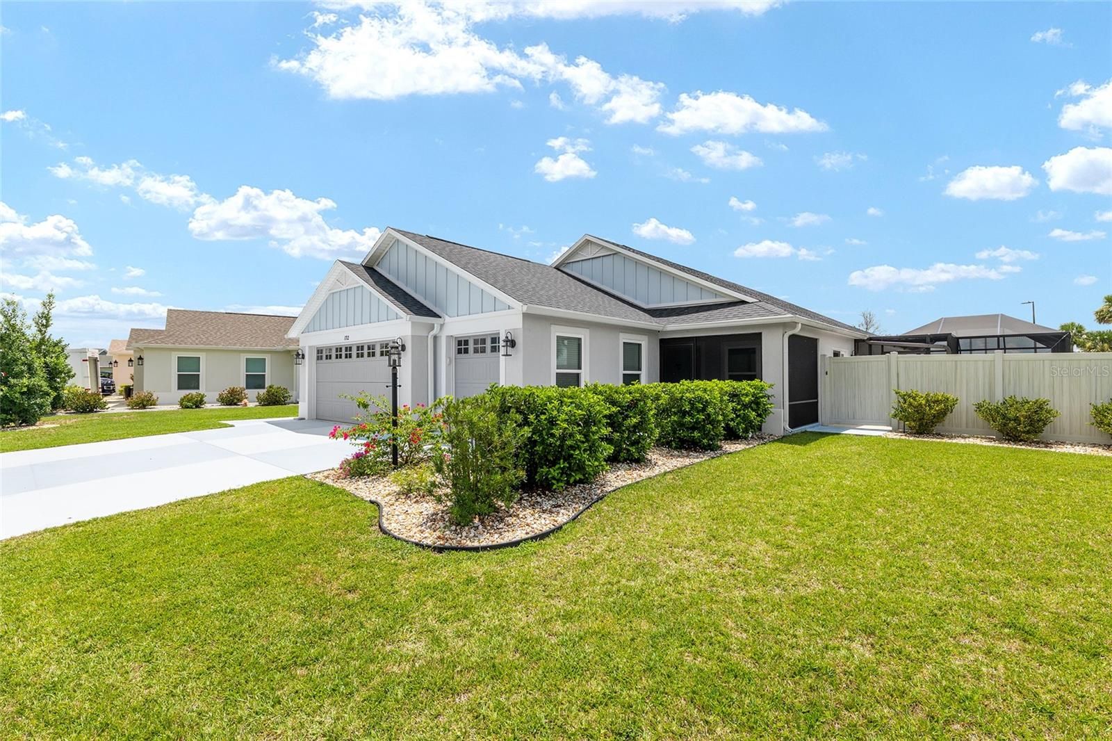 Welcome to THE VILLAGE OF ST. JOHN! This elegant, low maintenance COURTYARD VILLA "AVONDALE MODEL" is perfect for those seeking privacy, enclosed space for a pet or those who wish to spend a little less time caring for a yard and more time enjoying the lifestyle.The property features three-bedroom, two bath, two-car, golf-cart garage, water filtration system, all situated on a 0.30-ACRE CORNER LOT that offers COMPLETE PRIVACY and ROOM FOR A POOL. With a NEW BIRDCAGE and POND VIEW it's quite SPECTACULAR! As you step inside, you'll be greeted by a spacious living area filled with natural light, ideal for relaxation or entertaining guests. The well-appointed kitchen features modern STAINLESS STEEL appliances, ample CABINET and COUNTER SPACE. A large DINING ROOM area, with views of the backyard. A Large LIVING ROOM with views of the back yard. The owner's suite features LARGE WALK-IN CLOSET and an ENSUITE BATHROOM, ROMAN WALK-IN SHOWER, DUAL SINKS and tile flooring. Guests will enjoy their own private space with separate hallway, full bathroom, and both rooms with built-in closets. Additional highlights include an INDOOR LAUNDRY room with utility sink, washer, gas dryer, a NEW BIRDCAGE with ROOM FOR A POOL and a SCREEN-IN FRONT PORCH, for enjoying VIEWS OF THE POND. Conveniently located just a few miles to Sawgrass Grove and Brownwood Paddock Square and all the excitement of the newest Town Center, Eastport. There are many Golf Courses nearby as well as the Magnolia Shopping Plaza and the Water Lily and Everglades Recreation Centers are just a short Golf Cart ride away. Face Time tour available upon request.