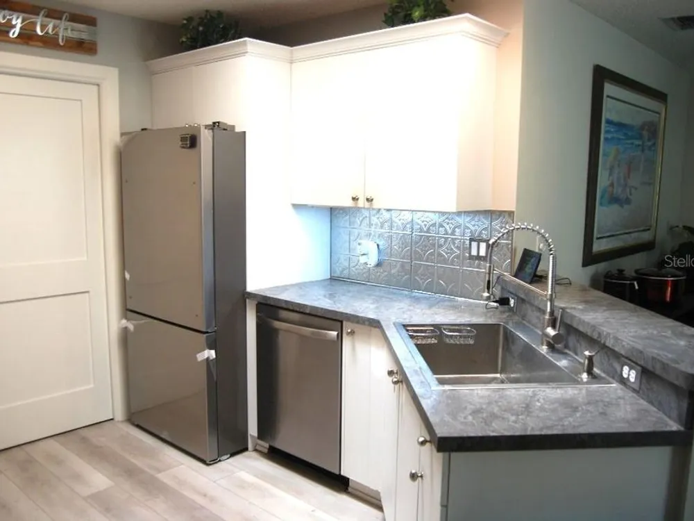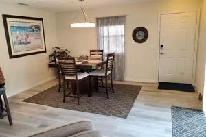 Beautifully updated 2-bedroom, 2-bath home with oversized 1.5-car garage and lithium-powered 4-seater golf cart included. Move-in ready or turnkey rental opportunity. Interior Features 2 bedrooms, 2 full bathrooms Both bathrooms completely gutted and remodeled to modern standards New laminated floors throughout the home Entire home freshly painted two years ago. Kitchen with brand-new, never-used appliances: refrigerator, dishwasher, stove, and microwave Three flat-screen televisions (one in each room) included Ceiling fans in living room, master bedroom, and enclosed porch Home sold fully furnished, including silverware, cooking utensils and tools Including all gardening equipment. Modern sliding glass doors installed about two years ago with entry lock and screen door Structural & Mechanical Roof: 11 years old Heat pump: 11 years old, excellent performance (100-degree heat at vents) Air conditioning system delivers 49-degree cold air at vents All new Anderson 5500 hurricane-resistant windows with open restrictors Lifetime, no-questions-asked transferable warranty on windows Kwikset programmable phone entry system installed Exterior & Outdoor Oversized 1.5-car garage with storage space Included lithium-powered 4-seater golf cart Lawn completely resodded 5-point sprinkler system refurbished and in excellent working order Enclosed porch furnished and ready for use Key Advantages Fully refurbished and modernized throughout No repairs or upgrades needed—home is completely move-in ready Can also be immediately used as a fully furnished turn-key rental property must be seen to be believed!!!