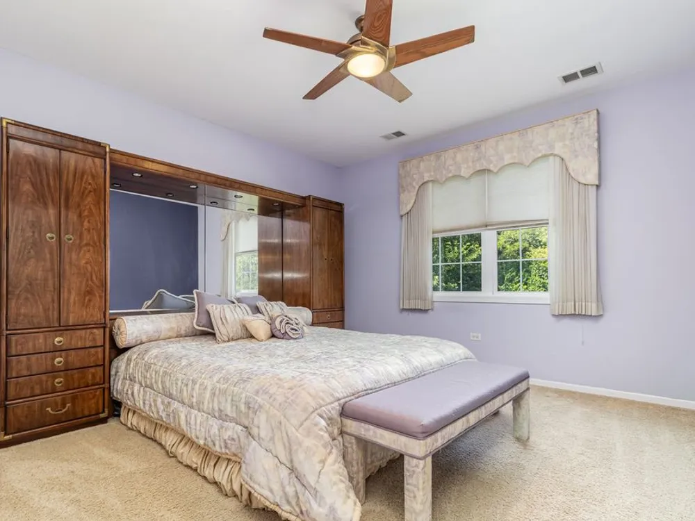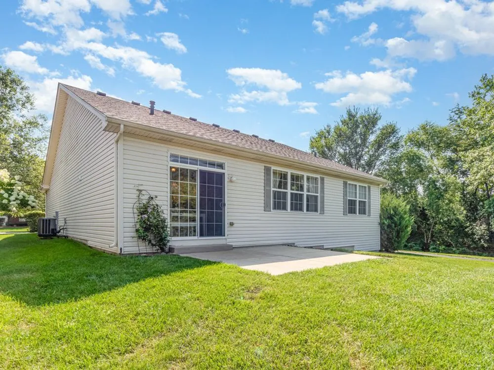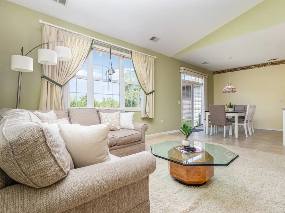 Welcome to this beautifully maintained Coral Gables Model in the sought-after 55+ active adult community of Lago Vista! This all-brick, single-family home offers 2 bedrooms, 2 full bathrooms, and 1,552 square feet of comfortable living space. Enjoy an open floor plan with vaulted ceilings in the living and dining rooms, and an eating area that opens to a private patio with peaceful wooded views and abundant nature. The spacious primary suite features dual closets and a large bathroom with double sinks and a walk-in shower. The versatile second bedroom or den is adjacent to a full bath with a deep soaking tub, ideal for guests or home office needs. New roof and water softener (July, 2025), newer water heater (2024) and furnace (2021), and well-maintained appliances and mechanicals offer peace of mind. Lago Vista residents enjoy maintenance-free living-no snow shoveling or lawn care-plus exceptional amenities including a clubhouse, indoor and outdoor pools, fitness center, walking paths, ponds, and planned social events. Estate sale-home is being sold as-is, but is in excellent condition. Don't miss this opportunity to enjoy easy living in a vibrant, active community!