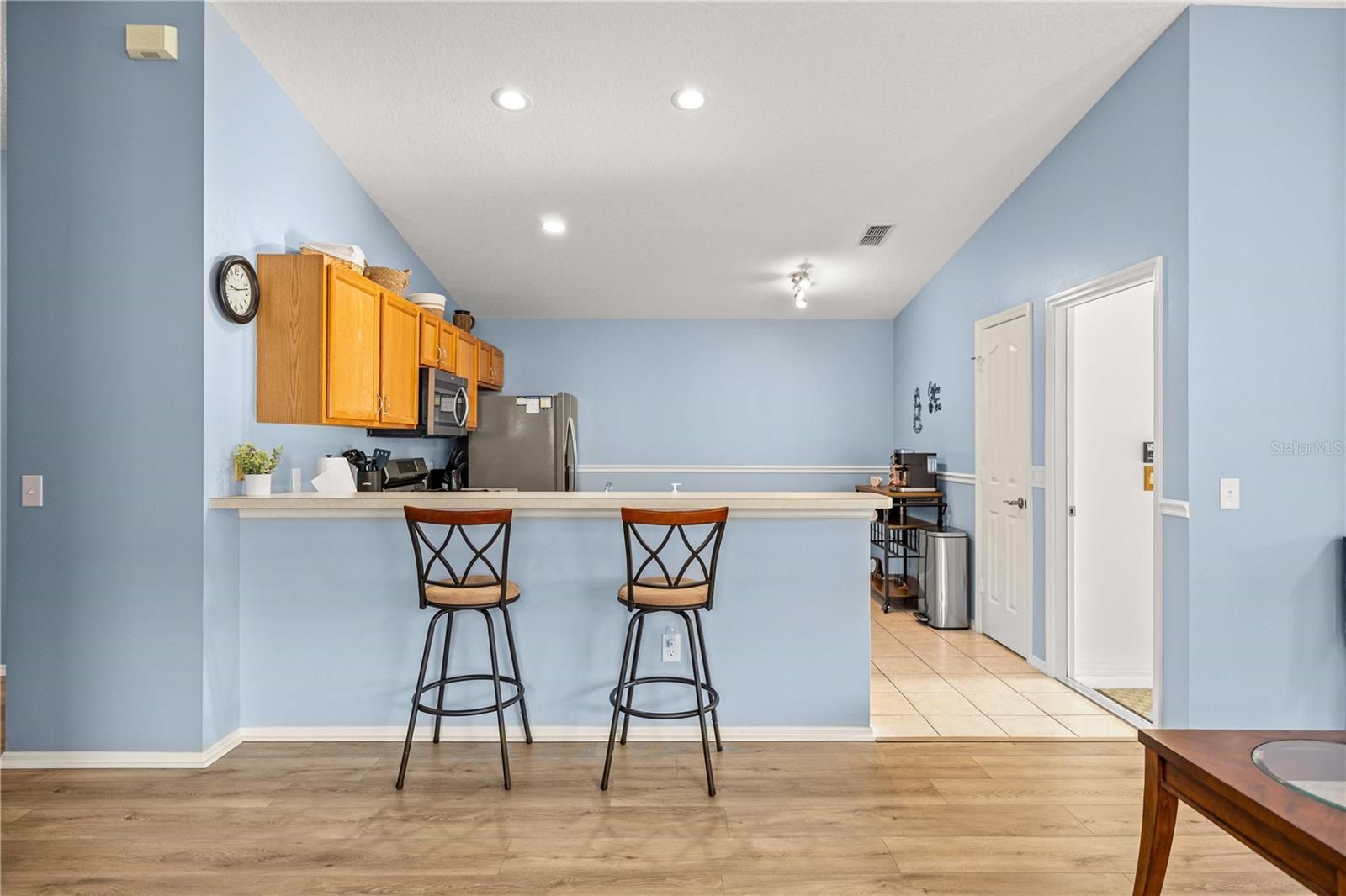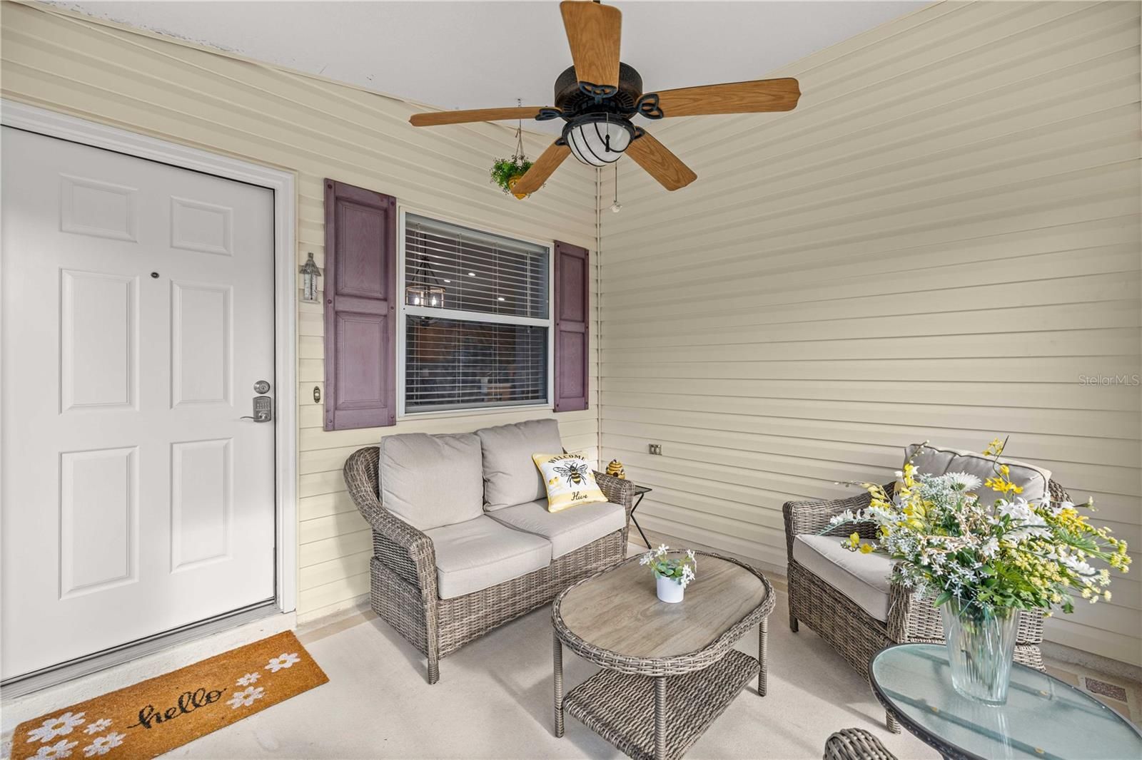 Welcome to this beautifully updated 2-bedroom, 2-bath Colony Villa in the highly sought-after Village of Del Canto—where style, comfort, and an unbeatable lifestyle come together! ~NO BOND ~ Enjoy peace of mind with major updates already completed: Roof (2025) A/C (2018) Water Heater (2019). Step inside to a bright, open feel featuring vaulted ceilings, fresh interior paint, and no popcorn ceilings. The home showcases luxury vinyl plank flooring (2022) throughout—no carpet anywhere! The spacious kitchen is perfect for entertaining with stainless steel appliances, a gas double oven, upgraded lighting, and a convenient pantry for extra storage. Unwind in your enclosed lanai with new sliding windows (2024)—ideal for enjoying Florida living year-round. The primary suite offers a walk-in closet and an updated bath with a new glass shower door, while the guest bedroom provides plenty of space and comfort for visitors. Additional features include a water softener, upgraded fans and lighting, a garage screen door, and furniture available separately for a turnkey option. Location is everything! Ideally situated just minutes by golf cart to Spanish Springs Town Square for nightly live entertainment, Savana Center, El Santiago family Pool, as well as championship golf, dining, and social events. You’re also close to the Paradise Recreation Center, featuring a resort-style pool, fitness, and endless activities. This move-in ready villa truly has it all—modern updates, low maintenance, and access to The Villages’ incredible lifestyle. Schedule your private showing today and start enjoying everything this home has to offer! Enjoy our video!