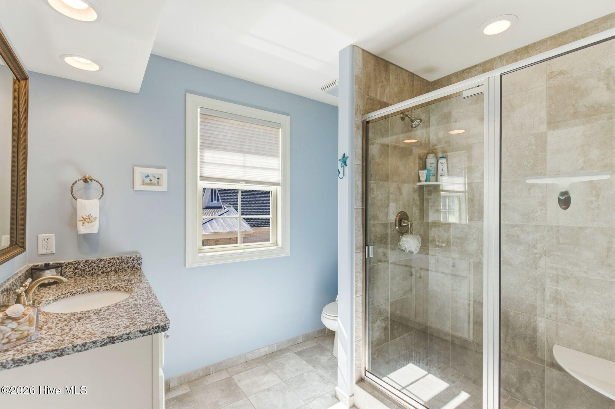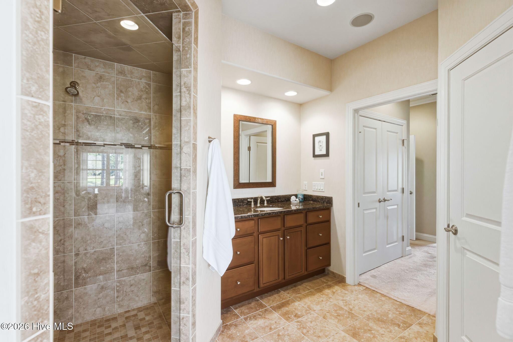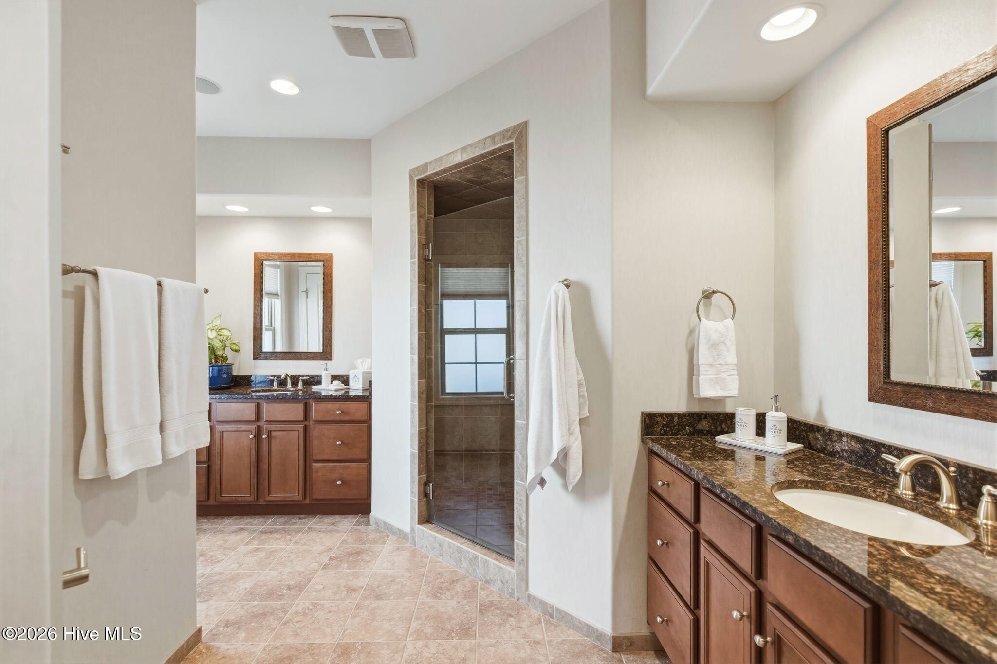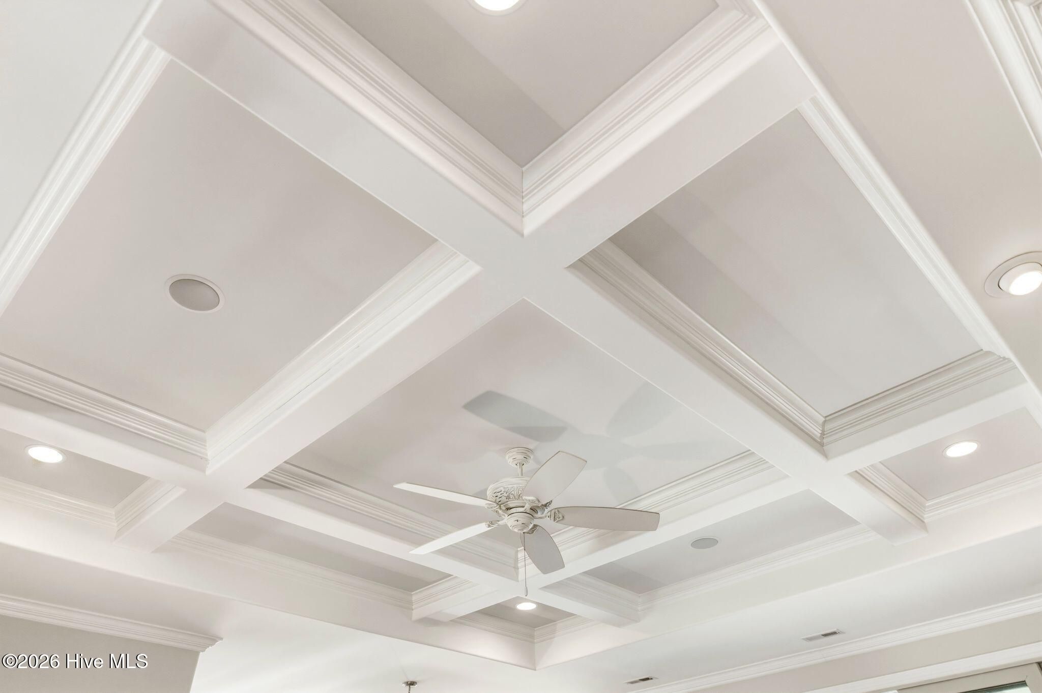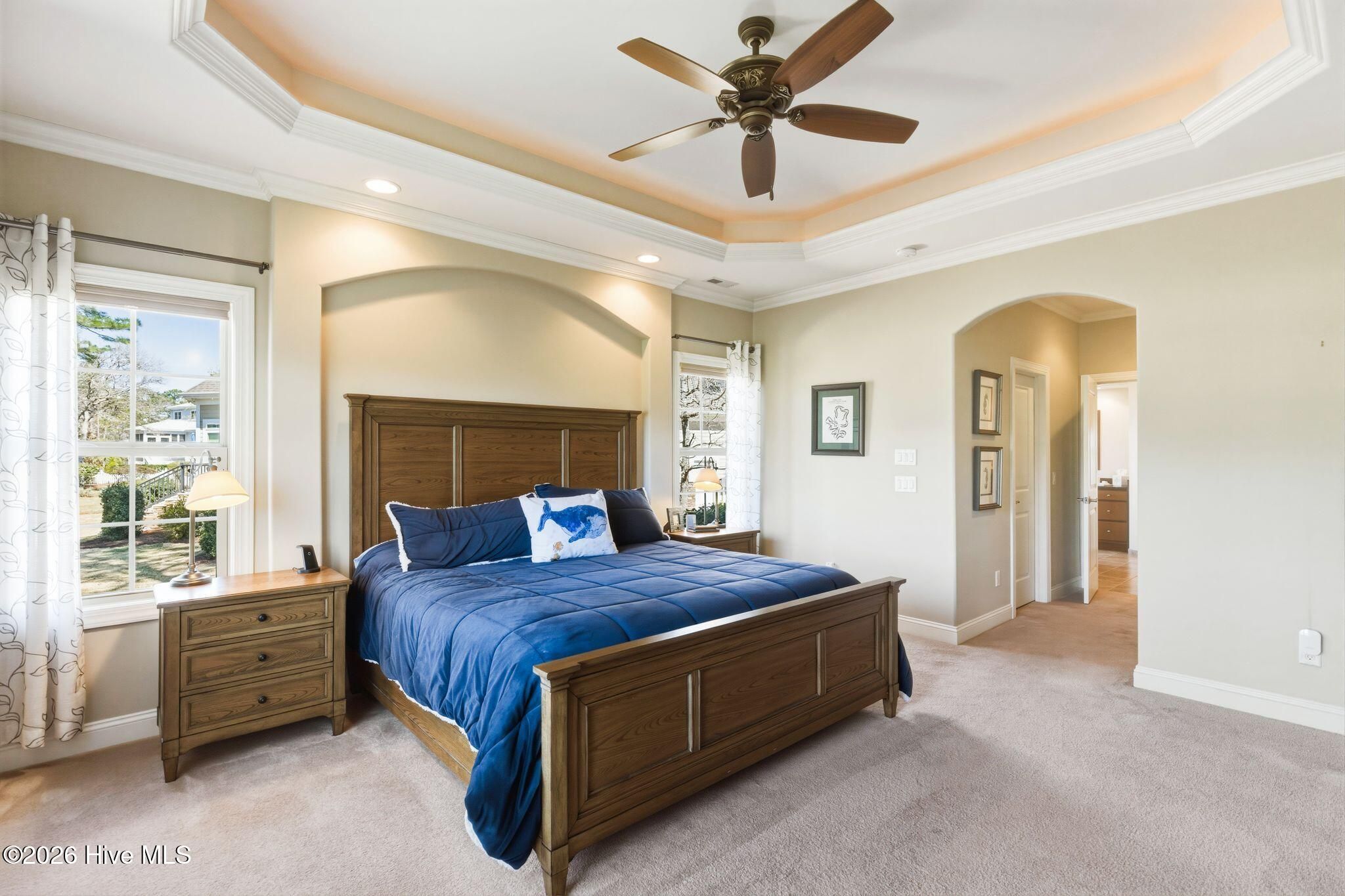 - Master Downstairs, Tray Ceiling(s), High Ceilings, Bookcases, Kitchen Island, Ceiling Fan(s), Walk-In Shower