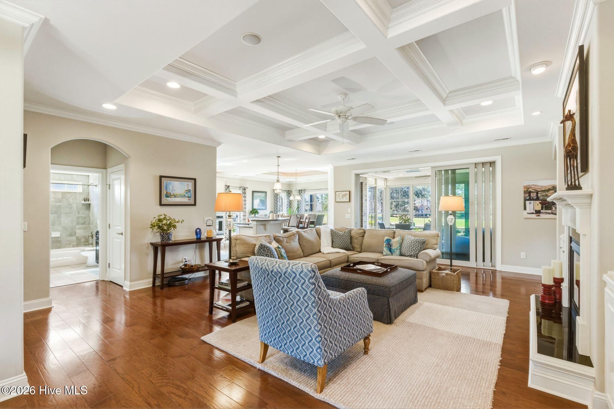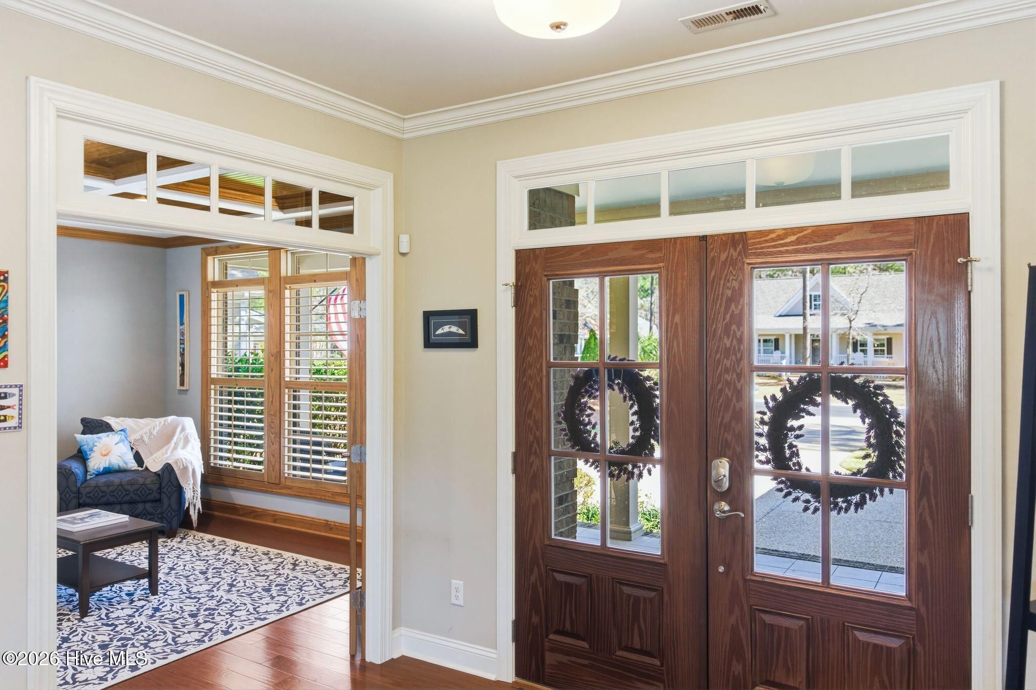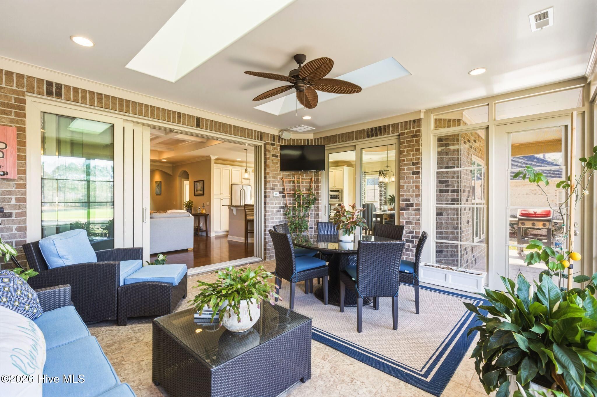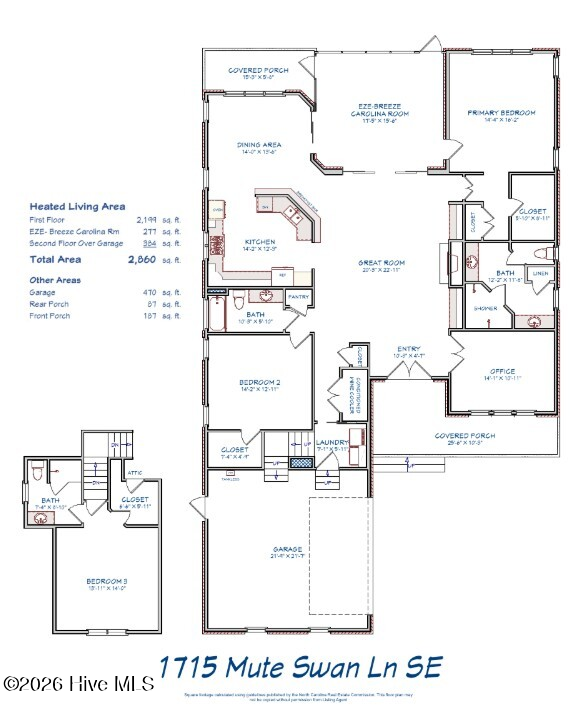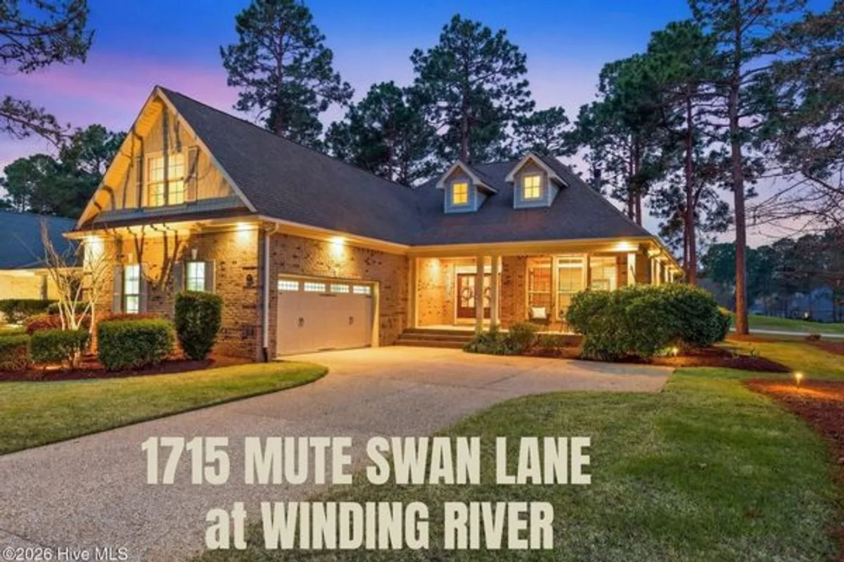 1715 MUTE SWAN LANE at Winding River Calling all Wine Enthusiasts, and those who love to entertain: Showcase your wine selection within the Glass enclosed climate-controlled Wine-Closet. Step inside 1715 MUTE SWAN LANE and feel an immediate sense that this is the ONE--A place to call home. Upon entering, the grand foyer leads to a spacious great room with coffered ceilings and a gas fireplace, ideal for gatherings. The Carolina room offers relaxation with views of Carolina National's Egret 2 fairway, while floor-to-ceiling windows and skylights enhance the sunroom with abundant natural light and evening sunsets. The backyard patio presents a comfortable area for winding down and stargazing. The kitchen is equipped with a six-burner gas cooktop, modern tile backsplash, stainless steel appliances including a wall oven and microwave, and crisp white cabinetry contrasted by black speckled granite counters, providing ample storage and workspace. A dedicated dining area features sliding doors opening to a three-season room. The primary bedroom suite on the main floor includes a tray ceiling and paddle fan, offering a peaceful retreat. The east side off the foyer French Glass doors announce your home office, while the west side provides guest accommodations with a spacious bedroom and private access to a full bathroom. Upstairs, the third bedroom or flex space benefits from a third full bathroom. The property spans 0.38 acres of well-manicured landscaping, with soft landscape lighting in the evening and a 470 sq ft side-facing two-car garage. Location and Community Features Winding River is conveniently located--approximately 40 minutes south of Wilmington ILM, and 60 minutes north of Myrtle Beach MYR airports. Close to the historic seaport towns of Southport, Oak Island and Holden Beaches. Residents enjoy a coastal lifestyle with access to a private oceanfront Beach Club and pool on Holden Beach. Boating facilities include two marinas, one on the Intracoastal Waterway and another at the ''River House'' Clubhouse on Lockwood Folly River, offering the option to travel to the Beach Club by boat. Community amenities feature a Property Owners Clubhouse and Event Center, Poolside Pavilion with BYOB bar, picnic, and grilling areas. Outdoor recreation options include the Carolina National Fred Couples 27-hole Audubon golf course, fitness center, walking trails, tennis, pickleball, bocce ball, and a community garden. Winding River fosters an active and welcoming environment, encouraging neighborly interactions within a thriving coastal community.