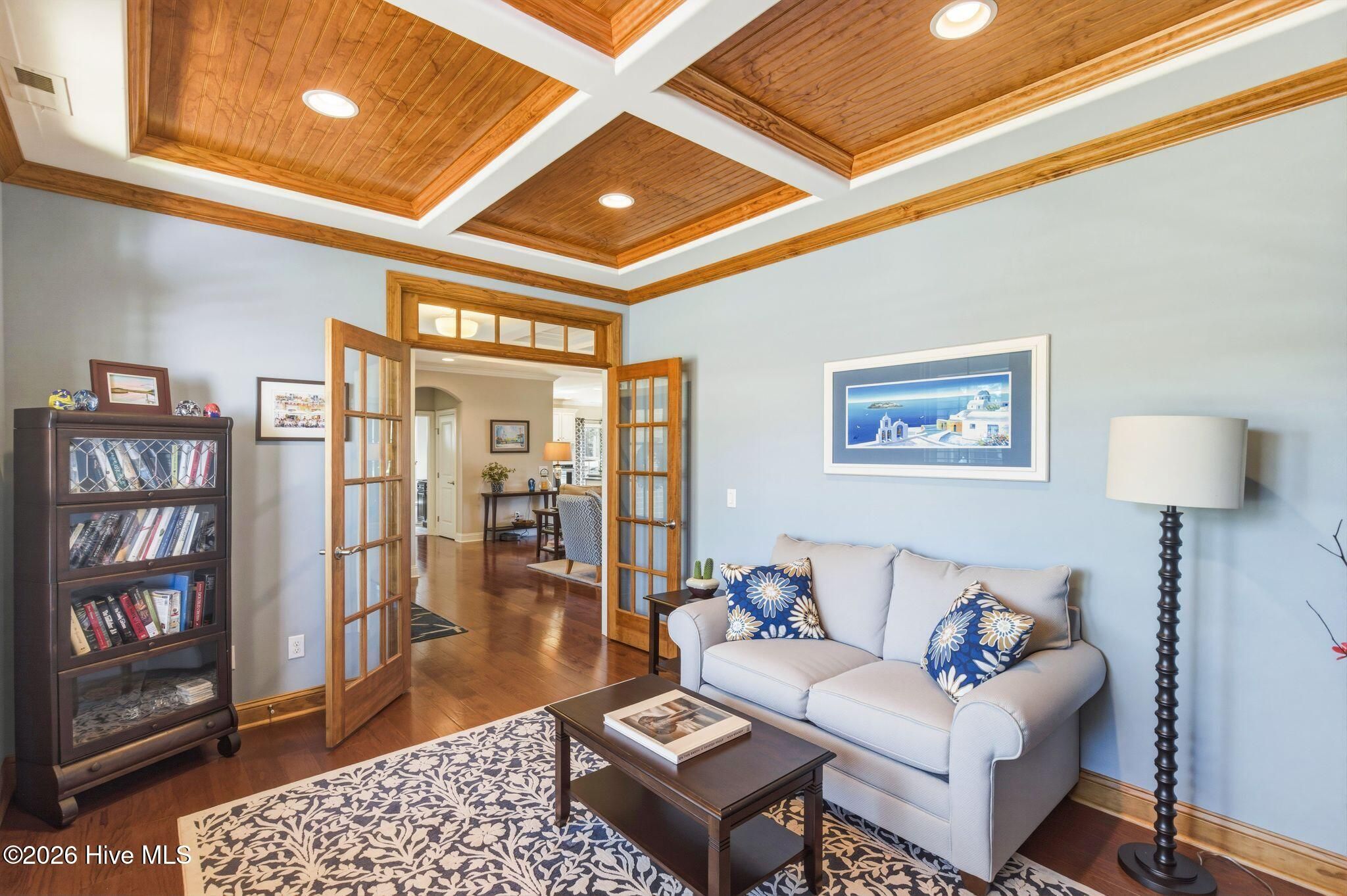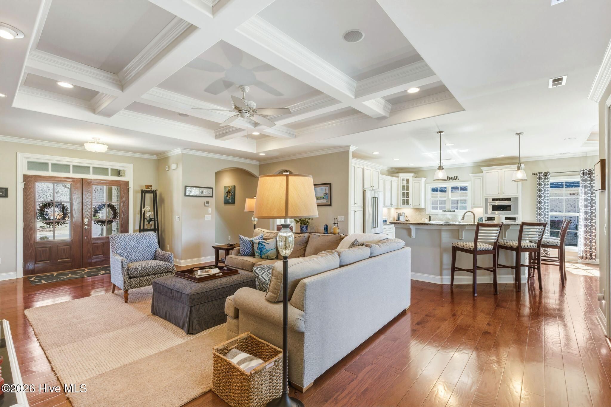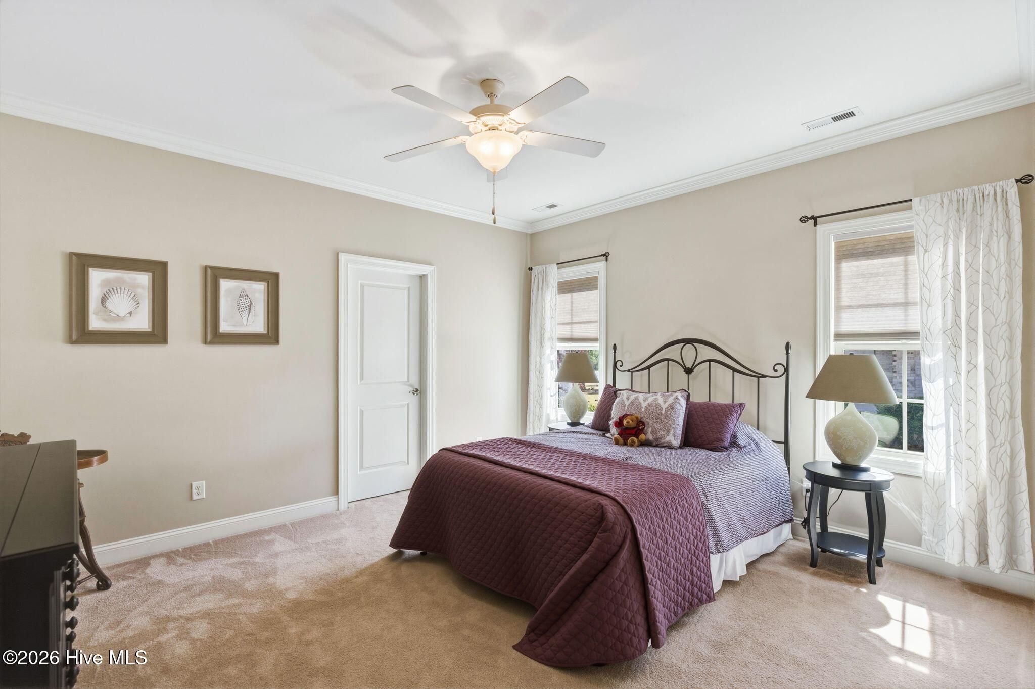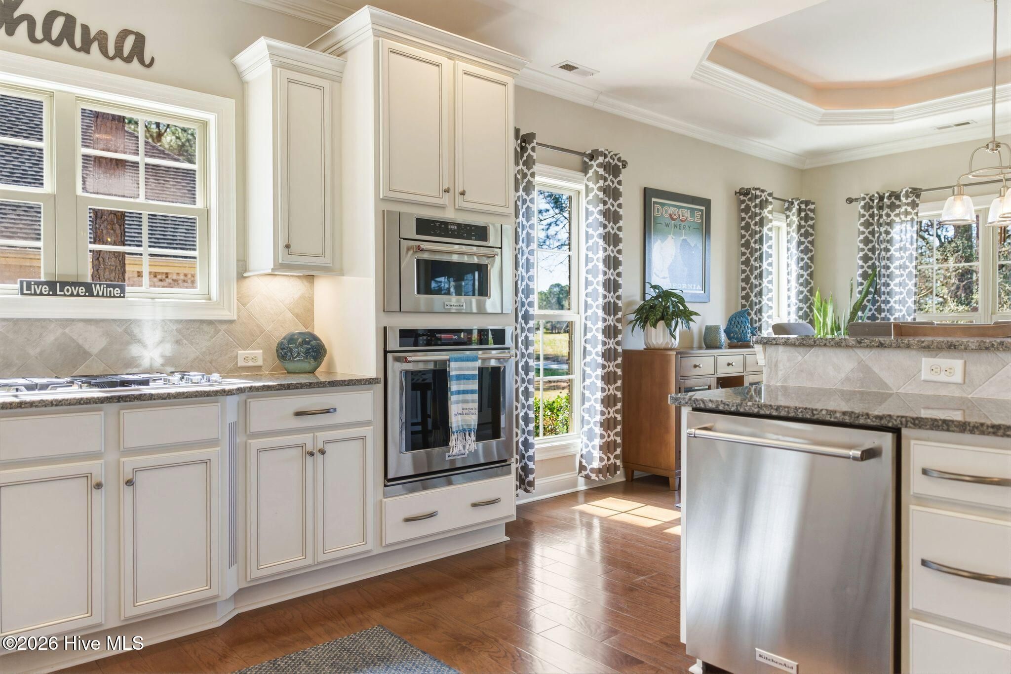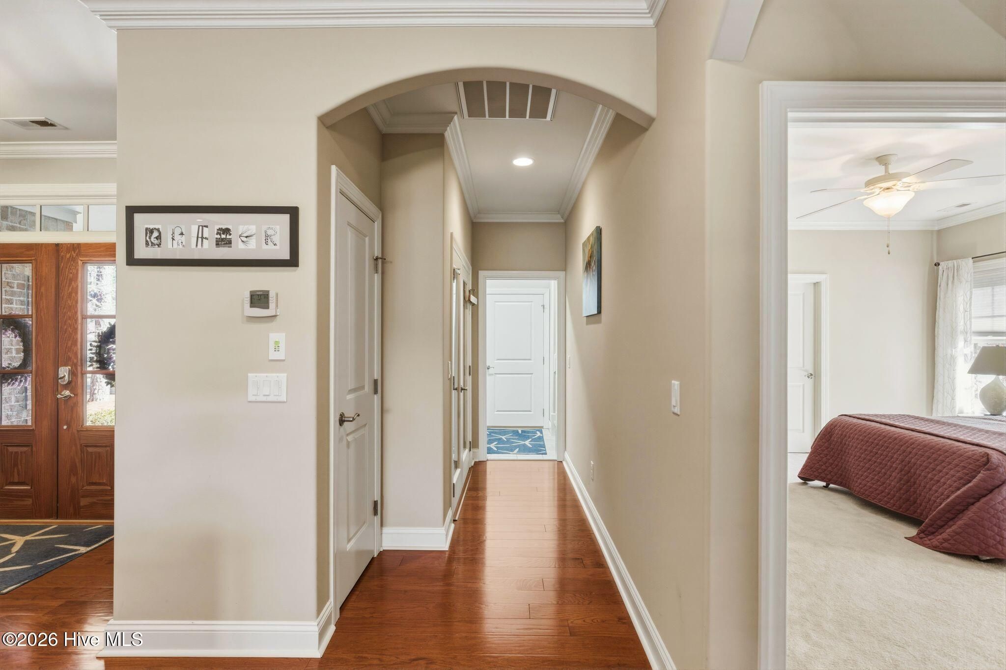 1715 MUTE SWAN LANE at Winding River Calling all Wine Enthusiasts, and those who love to entertain: Showcase your wine selection within the Glass enclosed climate-controlled Wine-Closet. Step inside 1715 MUTE SWAN LANE and feel an immediate sense that this is the ONE--A place to call home. Upon entering, the grand foyer leads to a spacious great room with coffered ceilings and a gas fireplace, ideal for gatherings. The Carolina room offers relaxation with views of Carolina National's Egret 2 fairway, while floor-to-ceiling windows and skylights enhance the sunroom with abundant natural light and evening sunsets. The backyard patio presents a comfortable area for winding down and stargazing. The kitchen is equipped with a six-burner gas cooktop, modern tile backsplash, stainless steel appliances including a wall oven and microwave, and crisp white cabinetry contrasted by black speckled granite counters, providing ample storage and workspace. A dedicated dining area features sliding doors opening to a three-season room. The primary bedroom suite on the main floor includes a tray ceiling and paddle fan, offering a peaceful retreat. The east side off the foyer French Glass doors announce your home office, while the west side provides guest accommodations with a spacious bedroom and private access to a full bathroom. Upstairs, the third bedroom or flex space benefits from a third full bathroom. The property spans 0.38 acres of well-manicured landscaping, with soft landscape lighting in the evening and a 470 sq ft side-facing two-car garage. Location and Community Features Winding River is conveniently located--approximately 40 minutes south of Wilmington ILM, and 60 minutes north of Myrtle Beach MYR airports. Close to the historic seaport towns of Southport, Oak Island and Holden Beaches. Residents enjoy a coastal lifestyle with access to a private oceanfront Beach Club and pool on Holden Beach. Boating facilities include two marinas, one on the Intracoastal Waterway and another at the ''River House'' Clubhouse on Lockwood Folly River, offering the option to travel to the Beach Club by boat. Community amenities feature a Property Owners Clubhouse and Event Center, Poolside Pavilion with BYOB bar, picnic, and grilling areas. Outdoor recreation options include the Carolina National Fred Couples 27-hole Audubon golf course, fitness center, walking trails, tennis, pickleball, bocce ball, and a community garden. Winding River fosters an active and welcoming environment, encouraging neighborly interactions within a thriving coastal community.