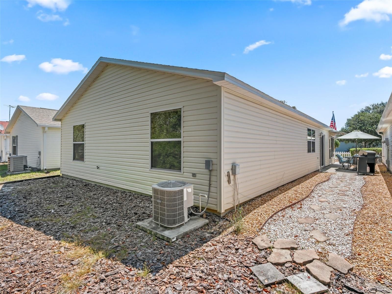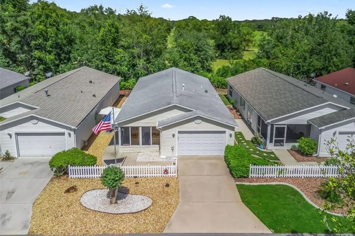 BOND PAID~! No Back Neighbors, PRIVATE SETTING~! TURNKEY Including 2016 Yamaha Golf Cart~! Light and Bright~! Enclosed Front Lanai, GRANITE Counters Throughout. ROOF 2019, GAS WATER HEATER (2013), GAS FURNACE, A/C (2013). INDOOR LAUNDRY with GAS DRYER~! Gas Cooking Available. NO CARPET. Large Open Living Room/Dining Room Area with NEW 75” TV and Newer Solar Tube. Primary Suite has Large Walk-In Closet and En-Suite Bath with Granite Counters and Solid Surface Shower. Guest Bath has Granite Counters and Tub/Shower Combination. Centrally Located with Many Executive Golf Courses, and Championship Golf Courses Nearby. Easy Golf Cart Access to Shopping, Hospital, Spanish Springs Town Square and Lake Sumter Landing Town Square. Truly a MUST SEE~!