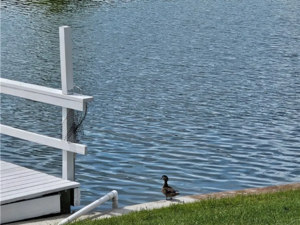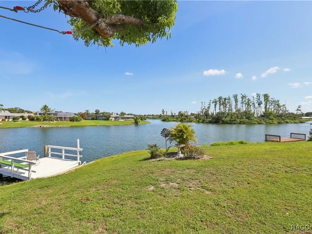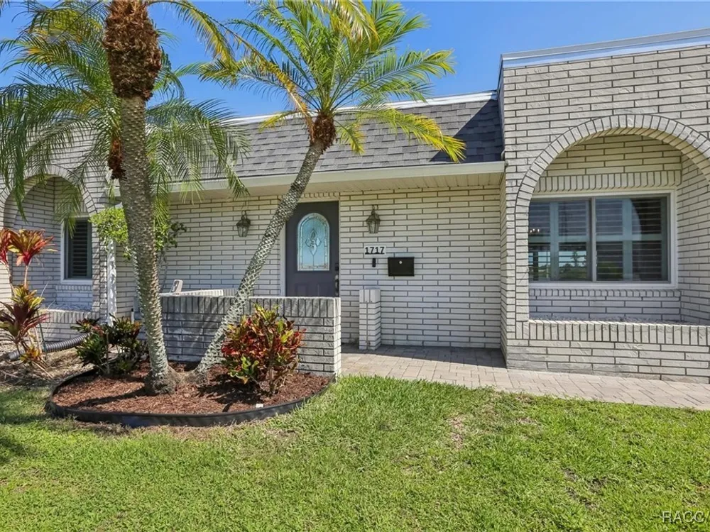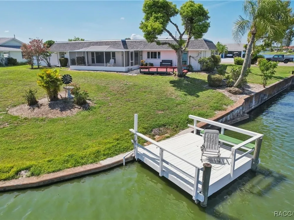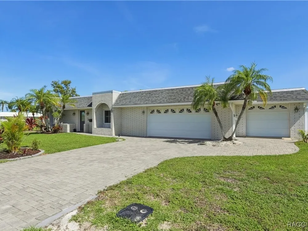 **55+ COMMUNITY** UPDATED & MOVE IN READY concrete block house on lake with nature preserve island. 2 bedroom 2 bath 3 car garage - inside AC laundry room - 1603 SF - No flood insurance required Roof 2022 AC 2020 Electric Panel 2025 Updated Windows