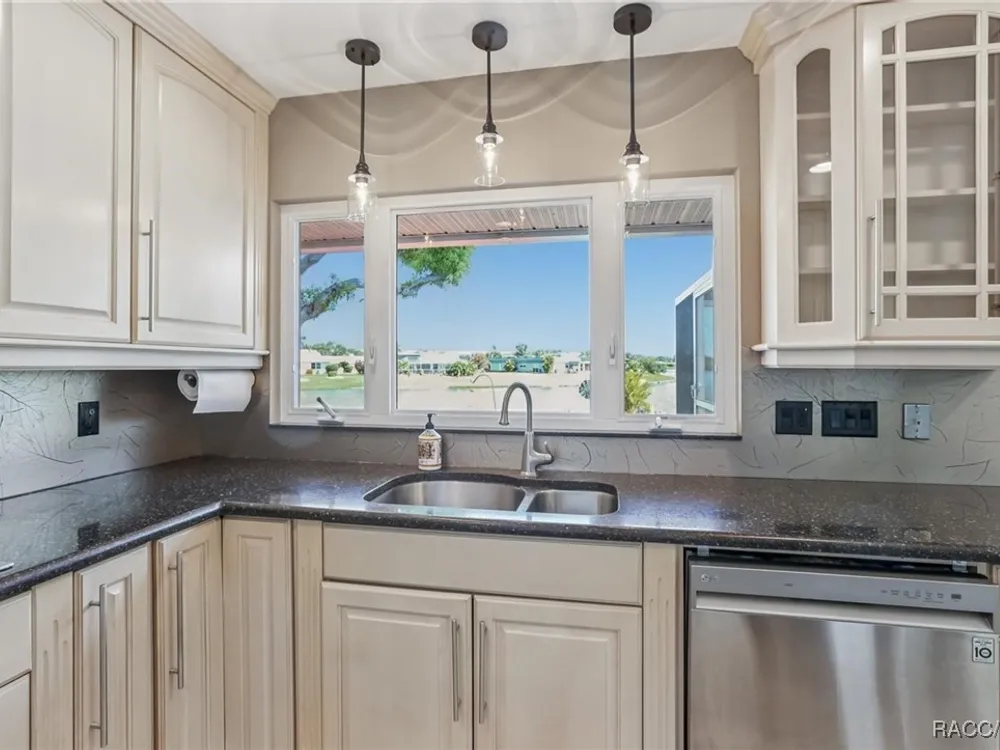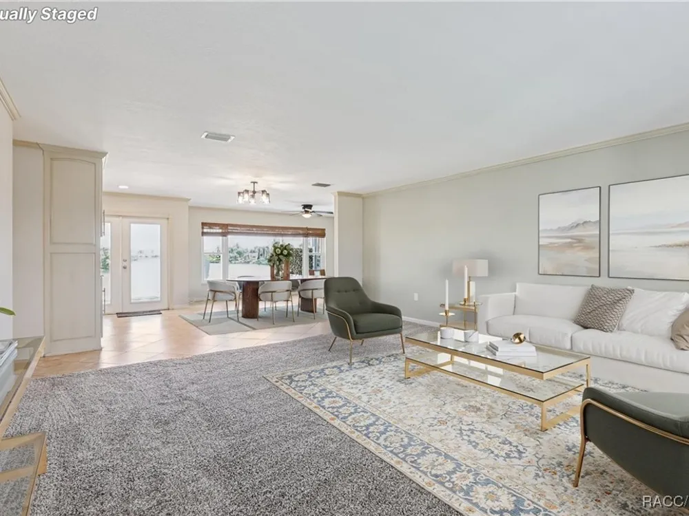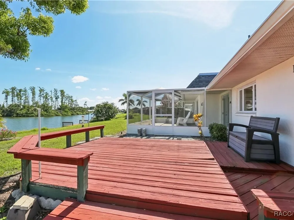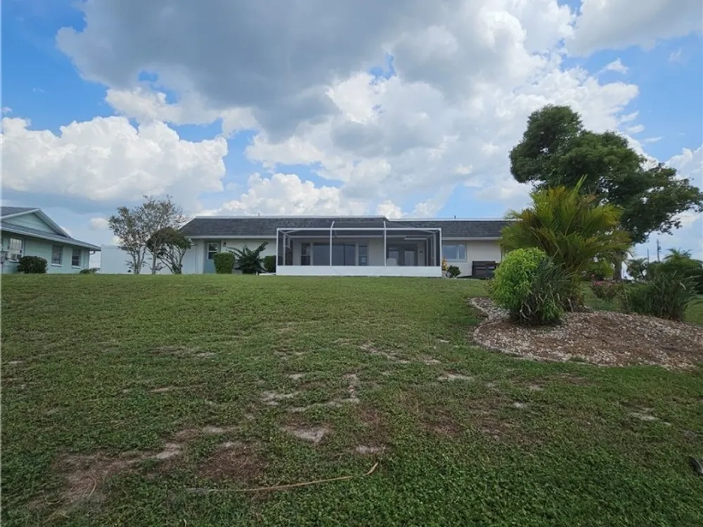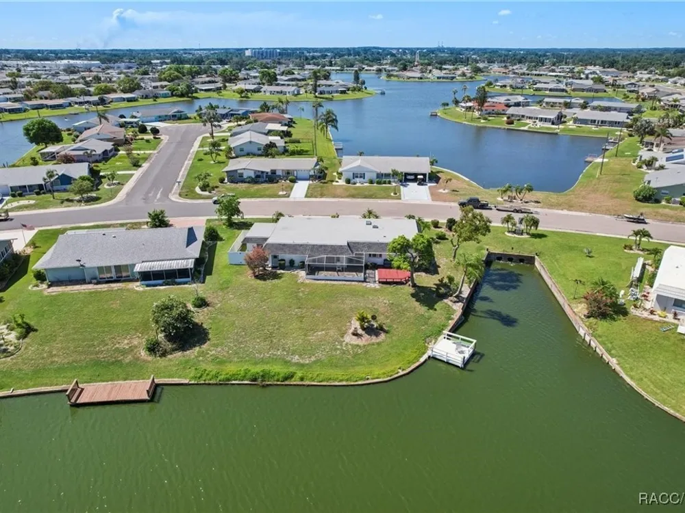 **55+ COMMUNITY** UPDATED & MOVE IN READY concrete block house on lake with nature preserve island. 2 bedroom 2 bath 3 car garage - inside AC laundry room - 1603 SF - No flood insurance required Roof 2022 AC 2020 Electric Panel 2025 Updated Windows
