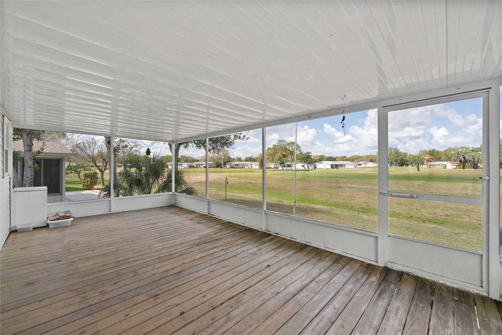 ~NO BOND~ ~GOLF COURSE VIEW~ ~2021 ROOF~ ~2018 HVAC~ ~BONUS ROOM~ Welcome to this charming FURNISHED manufactured home in the Village of COUNTRY CLUB HILLS, perfectly positioned on the 2nd FAIRWAY of the ORANGE BLOSSOM GOLF COURSE, offering beautiful GOLF COURSE VIEWS and a peaceful setting. Surrounded by MATURE LANDSCAPING and featuring a painted concrete driveway and GOLF CART GARAGE, this home delivers classic Villages charm with plenty of space to relax and entertain. Step inside to HIGH VAULTED ceilings that create a bright and open feel. The living room features LAMINATE flooring, built-in shelving, and 2 SKYLIGHTS that bring in abundant natural light. The adjacent dining room continues the open concept with LAMINATE flooring and HIGH ceilings. The kitchen offers LAMINATE flooring, HI-DEF countertops, a cooktop, and a wall oven, providing both functionality and convenience for everyday cooking. The primary suite includes carpet, a ceiling fan, HIGH ceilings, and a SPACIOUS WALK-IN CLOSET. The ensuite bath features tile flooring, a WALK-IN shower, garden tub, linen closet, DOUBLE SINKS, UPGRADED cabinetry, and elegant MARBLE countertops. The guest bedroom offers carpet, a WALK-IN CLOSET, and a ceiling fan, while the guest bath includes linoleum flooring, a fiberglass tub/shower combo, linen closet, and laminate countertops. The INSIDE LAUNDRY ROOM is equipped with ceramic tile flooring, a BUILT-IN DESK and cabinetry, and SAMSUNG appliances, adding both storage and workspace. Relax outdoors in the SCREENED-IN WOODEN DECK overlooking the golf course, or enjoy the side patio, perfect for grilling and entertaining. An additional bonus room with carpet and crown molding provides flexible space for a hobby room, office, or extra guest area and offers direct access to the carport. This inviting golf course home combines comfort, character, and an unbeatable location in the historic side of The Villages. Conveniently located near Spanish Springs Town Square, UF Health facilities, with shopping and dining along HWY 27/441.