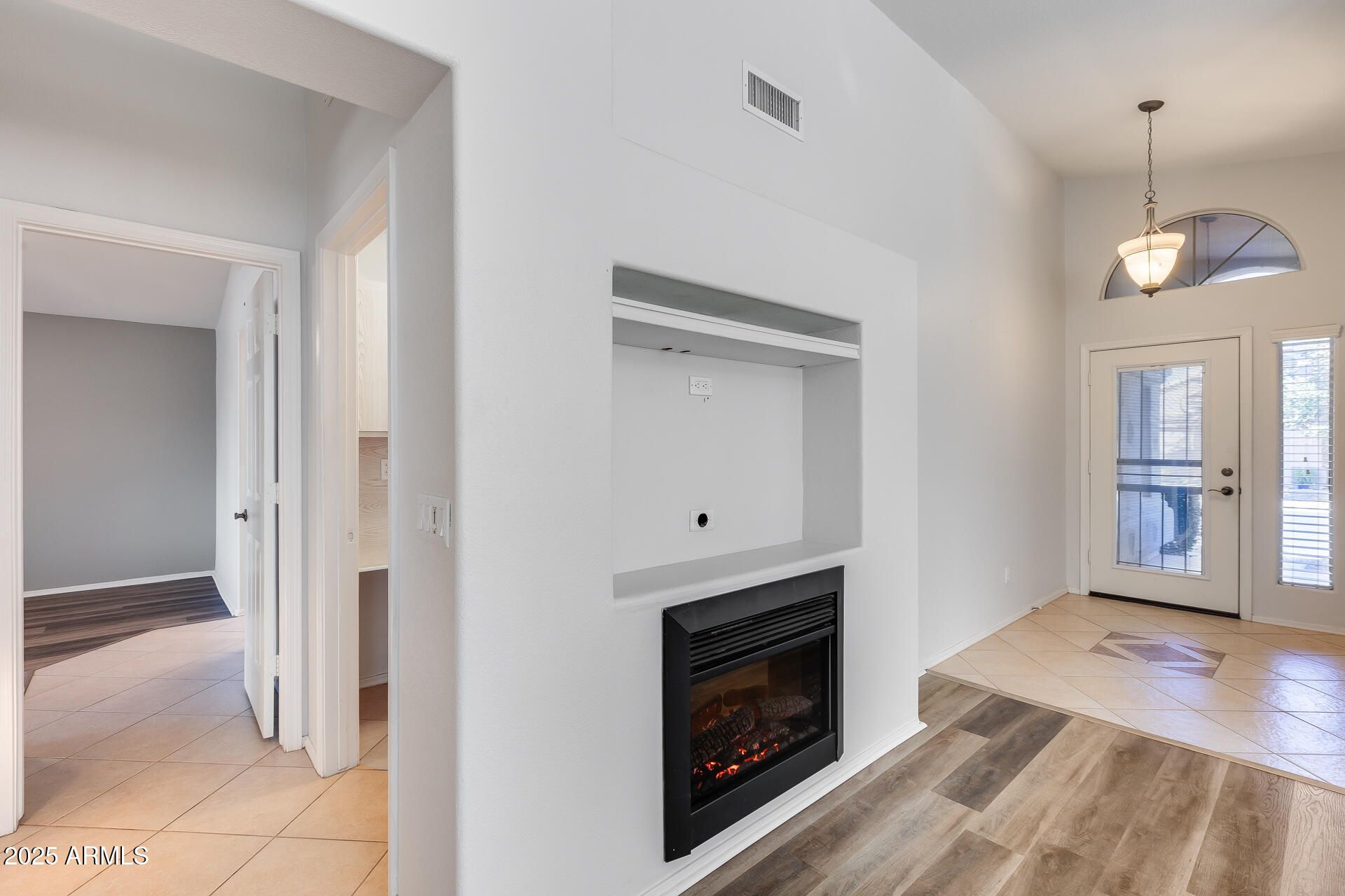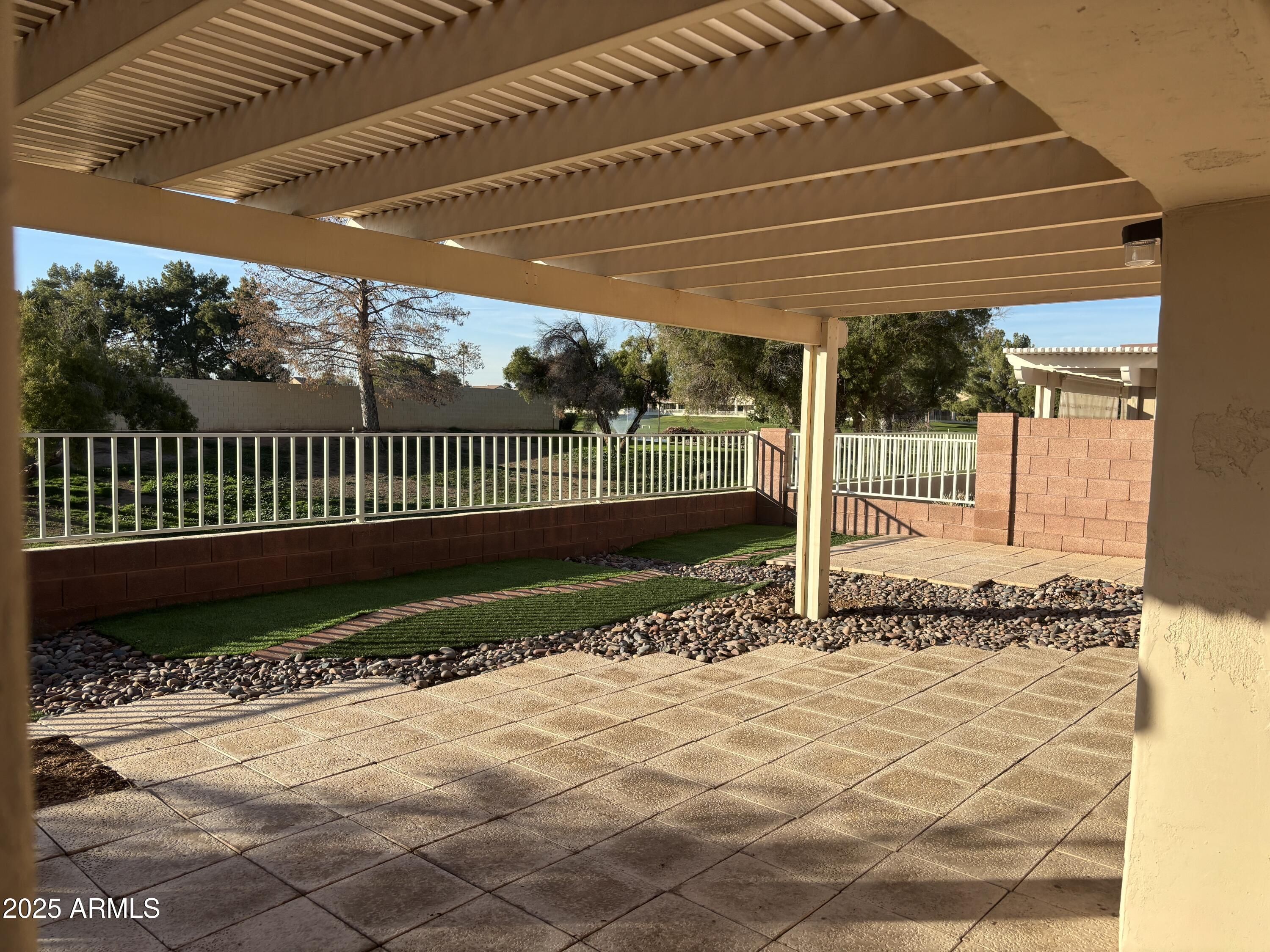 Beautiful Home in Gated Sun Village! This charming home is filled with thoughtful upgrades throughout. Step inside to enjoy newer flooring and fresh interior paint, an inviting electric fireplace, and blinds built into the doors for added convenience. The kitchen showcases Corian countertops, while ceiling fans throughout ensure year-round comfort. Additional features include attic access with pull-down stairs, an upgraded master closet, and raised toilets. The garage cabinets provide ample storage, and sun screens and tinted windows help with energy efficiency. Enjoy Arizona living at its best with a roller shade on the patio, beautiful paver accents, and low-maintenance artificial grass in the backyard. The backyard is perfectly situated on the greenbelt with serene lake views! Sun Village is an 55+ Gated, Resort Style Community. Enjoy the 18 hole par 3 golf course, gigantic heated pool & spa, pickleball, tennis, fitness gym, woodshop, billiards, onsite entertainment in our ball room and onsite restaurant!Sun Village, is a gated, security guarded, age 55+, community, in the city of Surprise, Arizona. This small community is made up of just under 1400 homes and condominiums. The Sun Village Community has an 18 hole, par three "no-"riding" golf course, an heated swimming pool and spa, tennis, pickle ball and shuffleboard courts, horseshoe pits, an exercise room, a billiards room, sewing and crafts rooms, Carpentry club and a ballroom where national and international entertainment can be enjoyed. Close by you will find the spring training home of the Texas Rangers and the Kansas City Royals. Across the street from Surprises' baseball complex, is a 25 court tennis complex that is home to national and international tennis tournaments. A Regional Library, a park, and a fishing lake are also part of this fantastic recreational area.