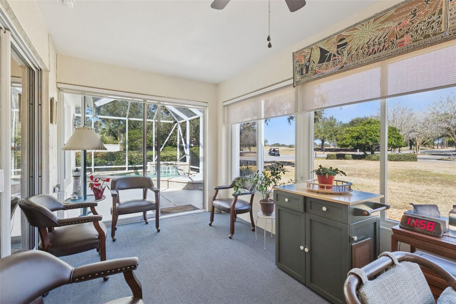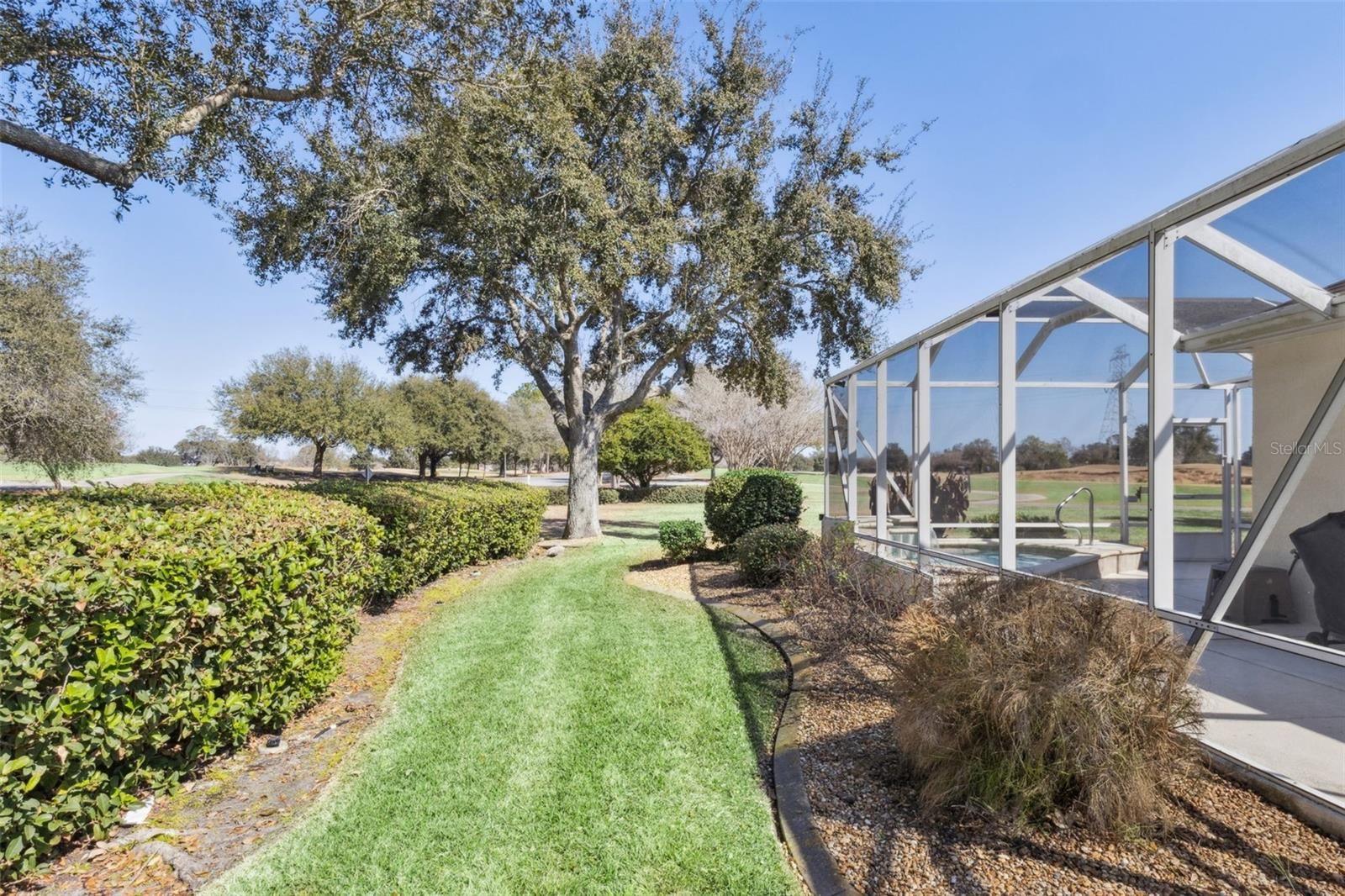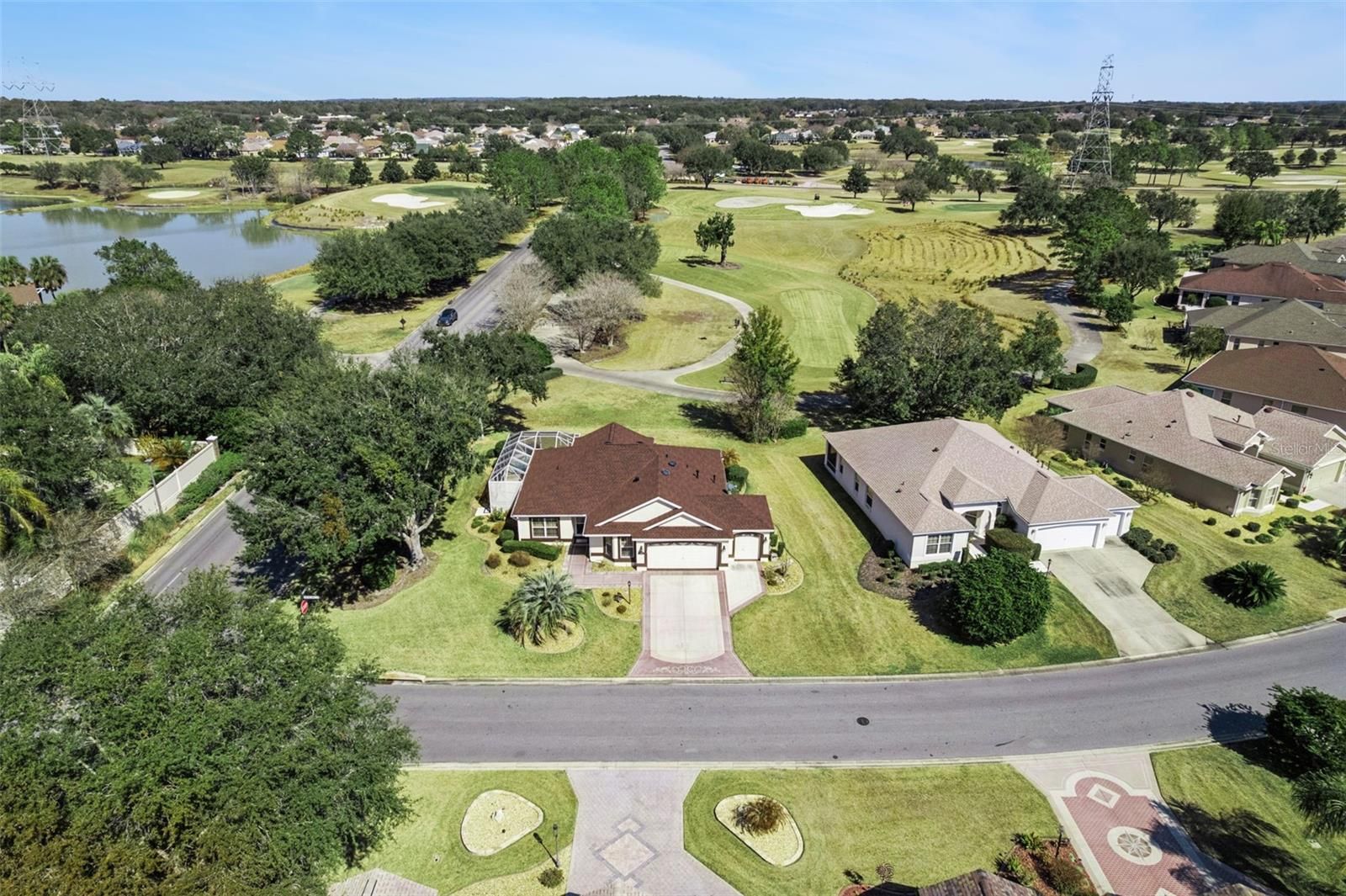 BRAND NEW ROOF 2026 | Golf Course Frontage | Birdcage Spa Home with Golf Cart Garage – Village of Briar Meadow MAJOR VALUE ALERT — Brand NEW ROOF INSTALLED 2026 and positioned on Hole #1 of BOTH the Briarwood and Walnut Grove Golf Courses, this beautifully maintained Jasmine Designer stucco home offers rare dual golf course views, exceptional outdoor living, and a prime Village of Briar Meadow location. From the moment you enter, soaring ceilings and abundant natural light enhance the spacious split-bedroom layout, while the open living and dining area is perfectly oriented to capture panoramic fairway views through large sliding glass doors. The enclosed northeast-facing lanai features its own dedicated HVAC system, creating comfortable year-round living space ideal for relaxing, entertaining, or enjoying peaceful golf course mornings. Step outside to a private birdcage-enclosed outdoor retreat showcasing an in-ground jetted spa with waterfall and adjoining grilling area — designed for easy Florida living and gatherings with friends and neighbors. The kitchen offers both style and functionality with granite countertops, stainless steel appliances, custom tile backsplash, pantry storage, convenient pot drawers, and eat in Dining area. The primary suite enjoys beautiful golf views and includes a large walk-in closet and spacious private suite bath with dual vanities and corner walk-in shower. A standout convenience is the laundry room located directly off the primary bath with access to the garage, complete with utility sink and additional cabinetry. On the opposite side of the home, guests will find two generously sized bedrooms and a full guest bath featuring a $20,000 walk-in jetted bathtub with shower designed for accessibility and comfort. Additional highlights include: Brand new roof installed 2026 * Golf cart garage with epoxy flooring * Low bond balance of $1,649 * Energy-efficient layout * Meticulously updated and maintained interior and exterior Outstanding corner lot Location Conveniently located near championship golf, dining, pools, tennis, and recreation at Nancy Lopez Legacy Country Club and Glenview Country Club, plus nearby executive courses, shopping, medical services, and activities at Mulberry Recreation Center. If you are searching for golf views, outdoor living, and a move-in-ready Villages home with a brand-new roof already completed, this property deserves to be at the top of your list. Schedule your private showing today.