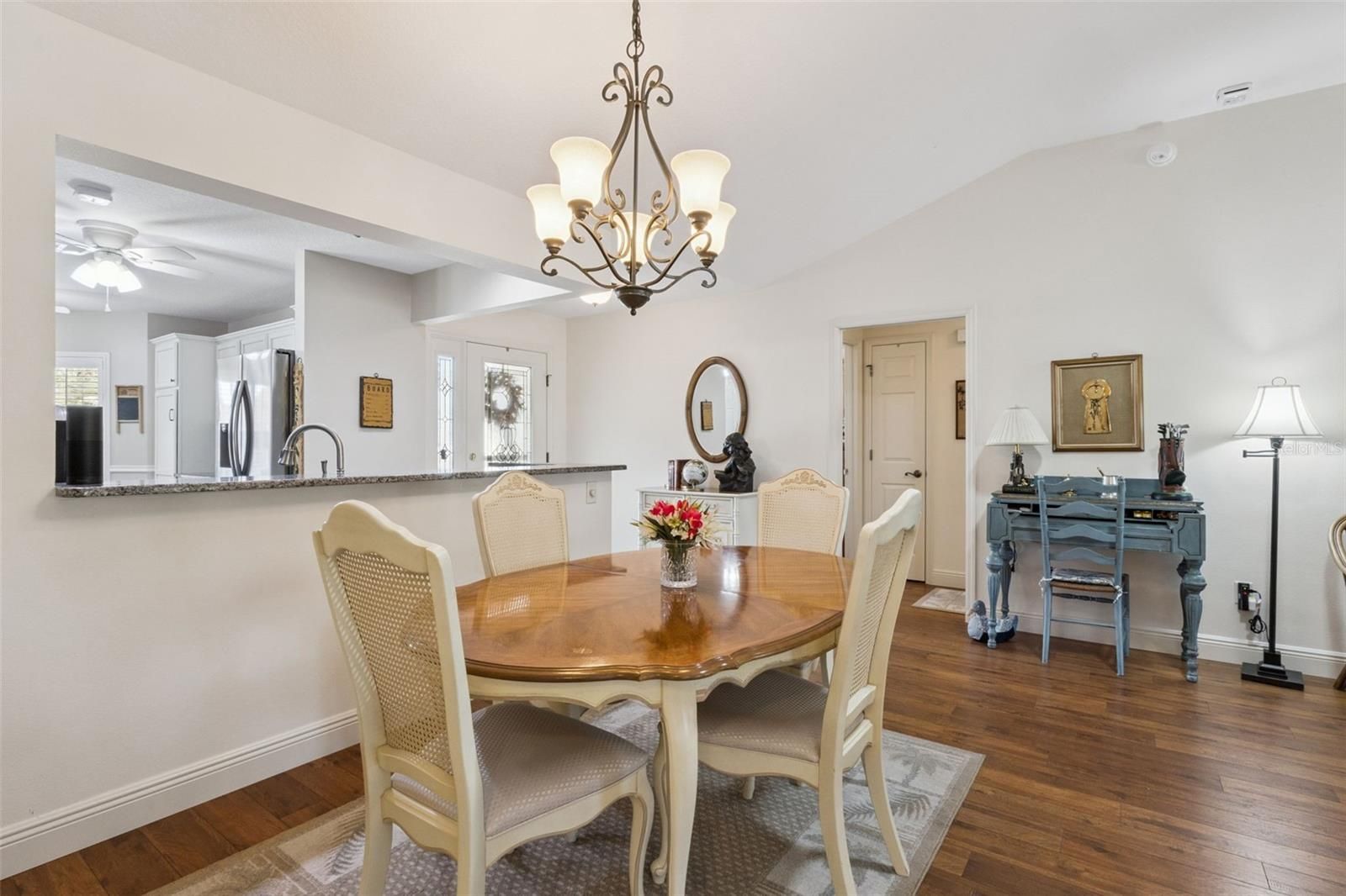 - Cathedral Ceiling(s), Ceiling Fan(s), Eat-in Kitchen, High Ceilings, Living/Dining Room, Open Floorplan, Main Level Primary, Solid Surface Counters, Split Bedrooms, Stone Counters, Thermostat, Vaulted Ceiling(s), Walk-In Closet(s), Window Treatments