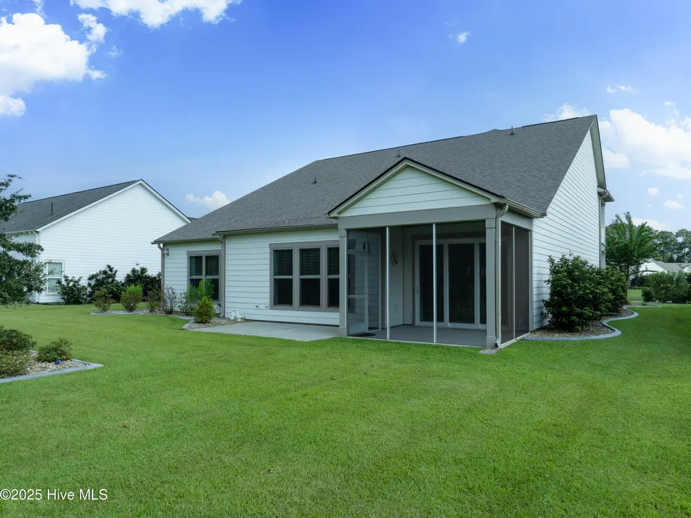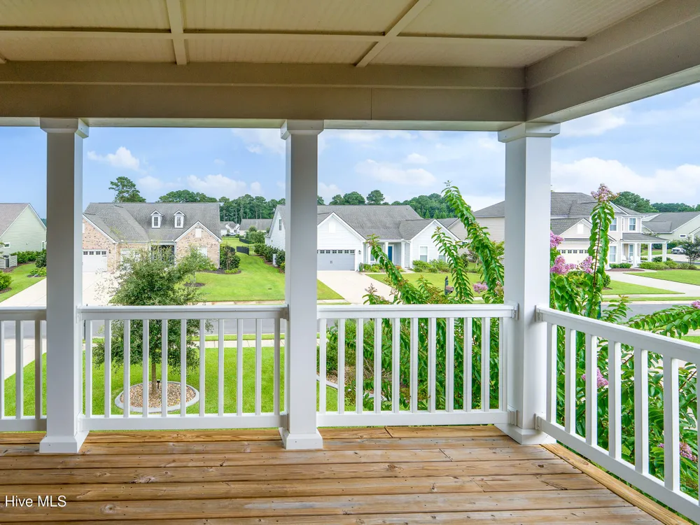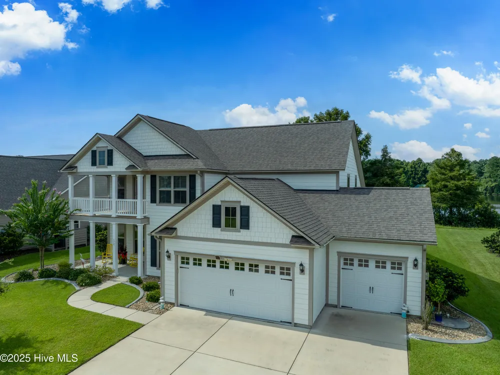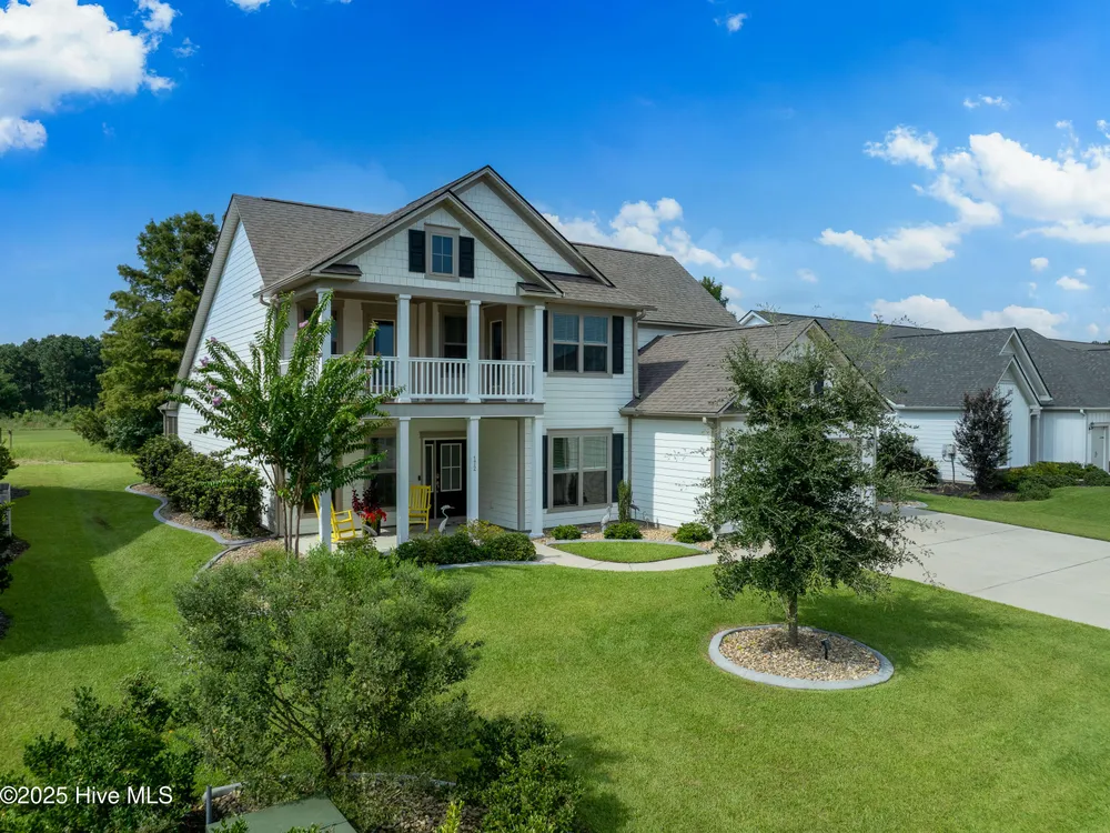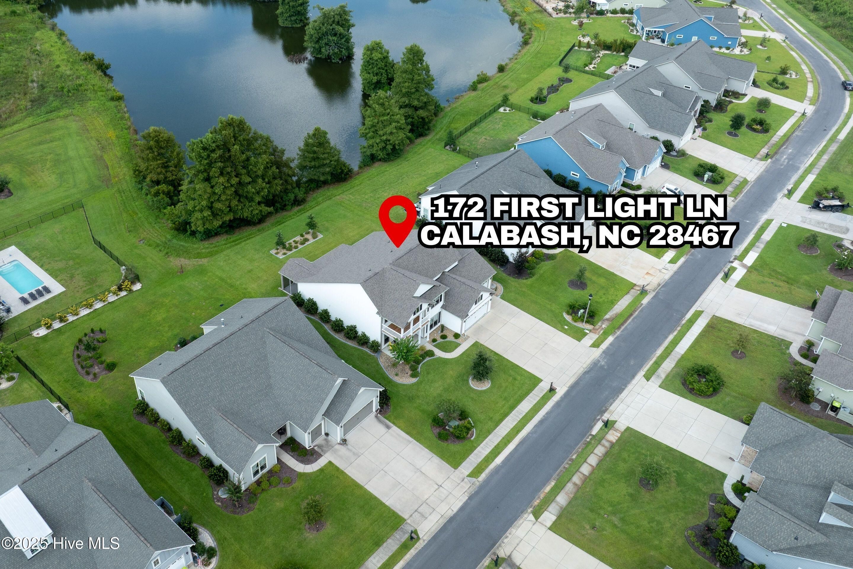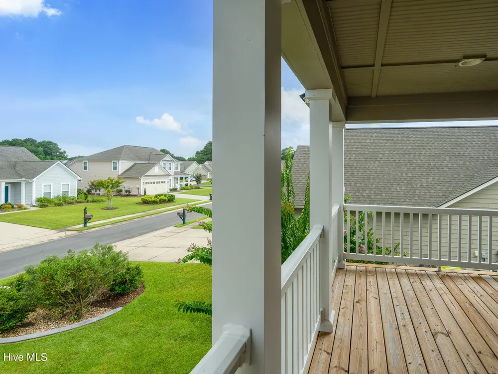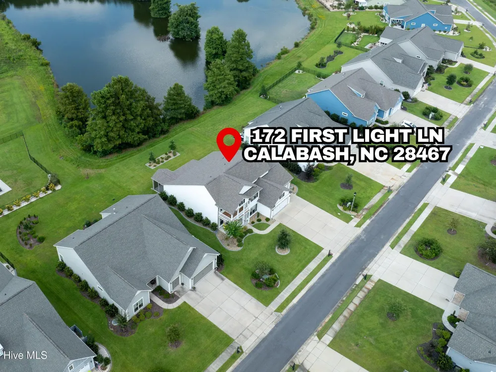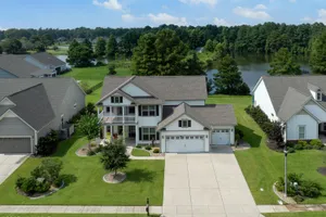 Experience refined coastal living with the Vanderbilt floor plan by Pulte Homes, celebrated for its spacious design and thoughtful details. This 4-bedroom, 2.5-bath residence offers over 3,400 sq. ft. of living space, blending open-concept areas with private retreats and ample space for everyday living. Best of all, this home is located OUTSIDE the flood zone and does not require flood insurance. The property is beautifully landscaped and set along a serene community pond, creating a picturesque backdrop. The main level features a 19' x 26' living room designed for gatherings, seamlessly flowing into a chef's kitchen with an expansive island, abundant cabinetry. Direct access to the dining room through a convenient butler's pantry from the kitchen. At the entrance to the home is a library / study with glass door entry. Large sliding glass doors lead to a covered screened porch extending the living space outdoors.. A unique elevated office overlooking the living room provides the perfect spot for additional workspace while staying connected to the heart of the home. The owner's suite, approximately 16' x 15', offers two generous closets, a spa-inspired bath with a walk-in tile shower, soaking tub with tile surround, and dual vanities topped with granite. Upstairs, the versatile bonus room is ideal as a game room, family room, or hobby space, complemented by 3 guest bedrooms one of which is access to the covered balcony. A 3-Car garage provides ample storage for a multiple cars as well as golf cart, bikes, or recreational vehicles. Located in the gated Crow Creek Golf Community, residents enjoy resort-style amenities including an 18-hole championship course, clubhouse, fitness center, outdoor pool, and walking trails. Just minutes from the shops and dining of Calabash, and a short drive to Sunset and Ocean Isle Beaches, this home checks all the boxes for an ideal coastal lifestyle.