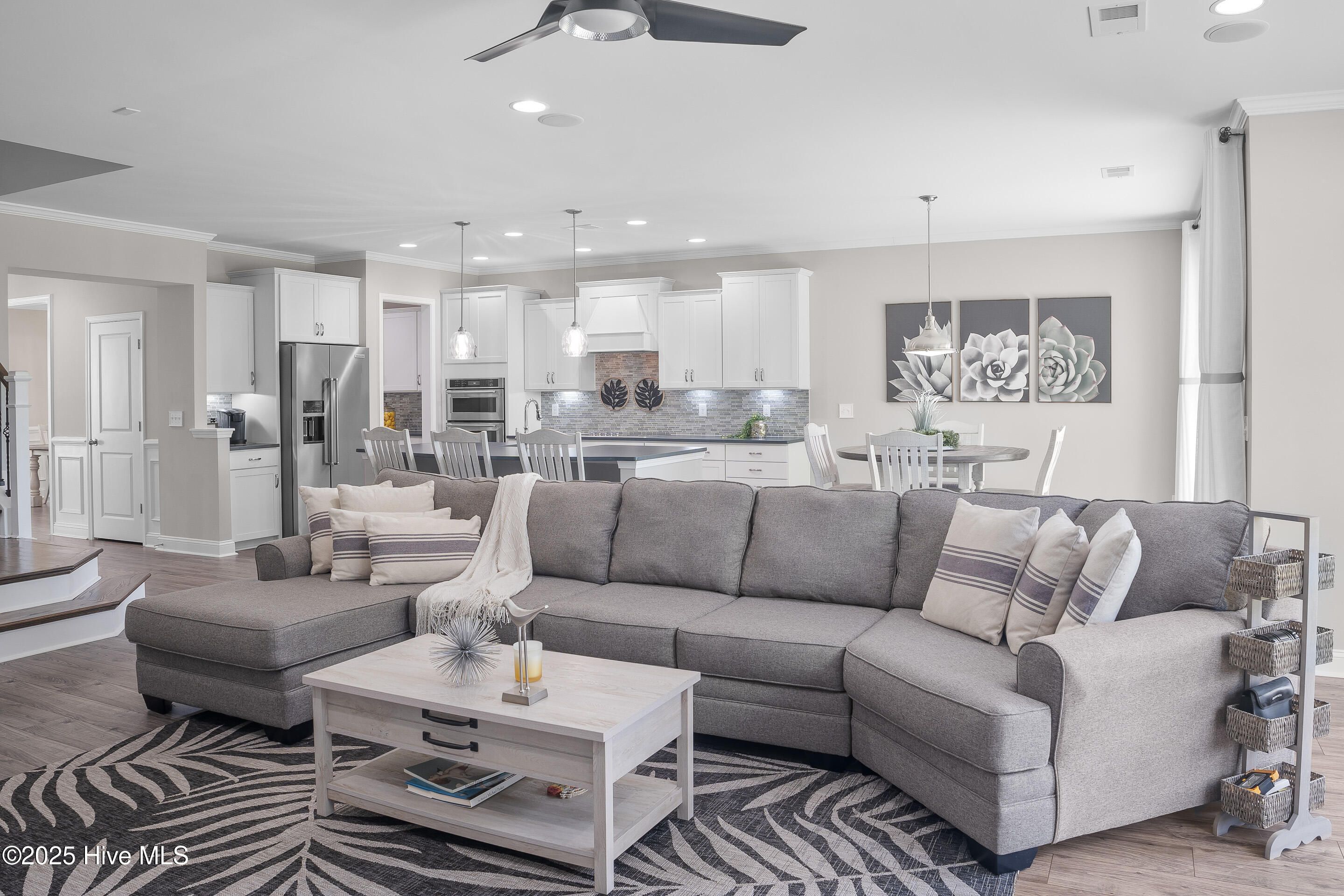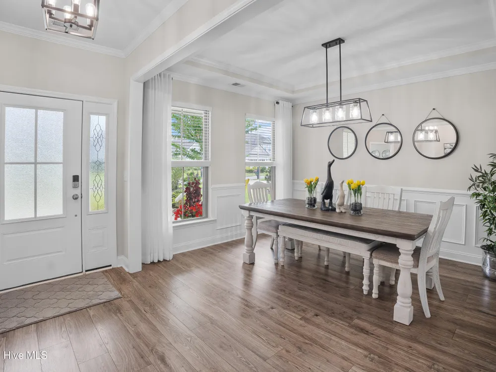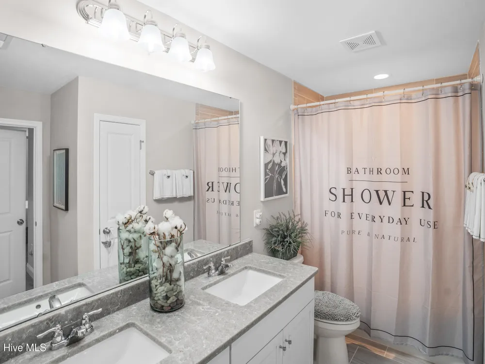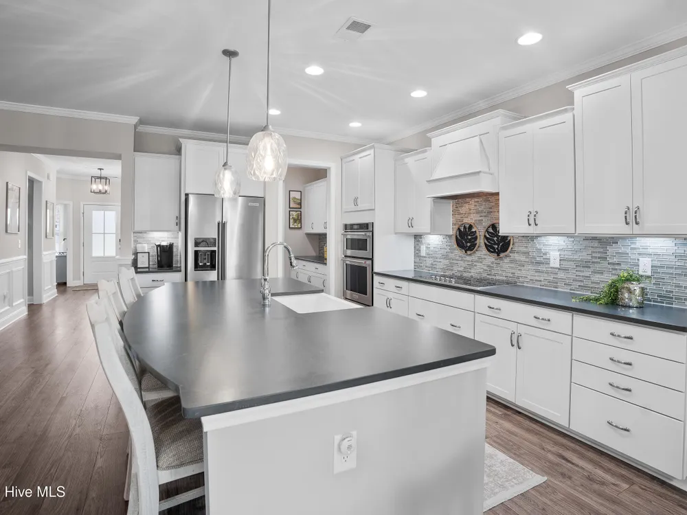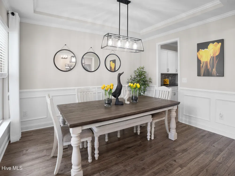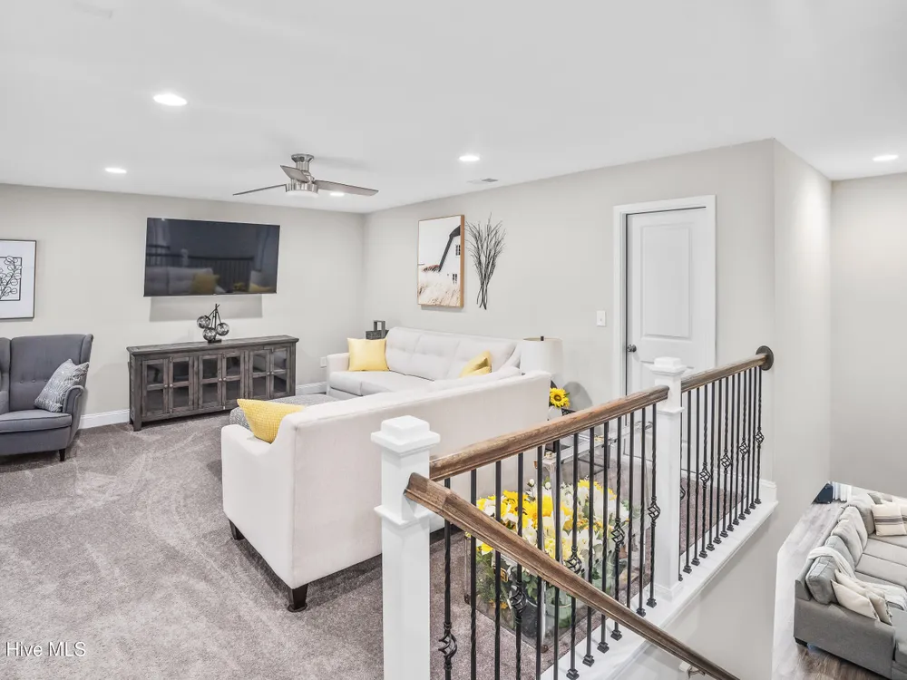 Experience refined coastal living with the Vanderbilt floor plan by Pulte Homes, celebrated for its spacious design and thoughtful details. This 4-bedroom, 2.5-bath residence offers over 3,400 sq. ft. of living space, blending open-concept areas with private retreats and ample space for everyday living. Best of all, this home is located OUTSIDE the flood zone and does not require flood insurance. The property is beautifully landscaped and set along a serene community pond, creating a picturesque backdrop. The main level features a 19' x 26' living room designed for gatherings, seamlessly flowing into a chef's kitchen with an expansive island, abundant cabinetry. Direct access to the dining room through a convenient butler's pantry from the kitchen. At the entrance to the home is a library / study with glass door entry. Large sliding glass doors lead to a covered screened porch extending the living space outdoors.. A unique elevated office overlooking the living room provides the perfect spot for additional workspace while staying connected to the heart of the home. The owner's suite, approximately 16' x 15', offers two generous closets, a spa-inspired bath with a walk-in tile shower, soaking tub with tile surround, and dual vanities topped with granite. Upstairs, the versatile bonus room is ideal as a game room, family room, or hobby space, complemented by 3 guest bedrooms one of which is access to the covered balcony. A 3-Car garage provides ample storage for a multiple cars as well as golf cart, bikes, or recreational vehicles. Located in the gated Crow Creek Golf Community, residents enjoy resort-style amenities including an 18-hole championship course, clubhouse, fitness center, outdoor pool, and walking trails. Just minutes from the shops and dining of Calabash, and a short drive to Sunset and Ocean Isle Beaches, this home checks all the boxes for an ideal coastal lifestyle.
