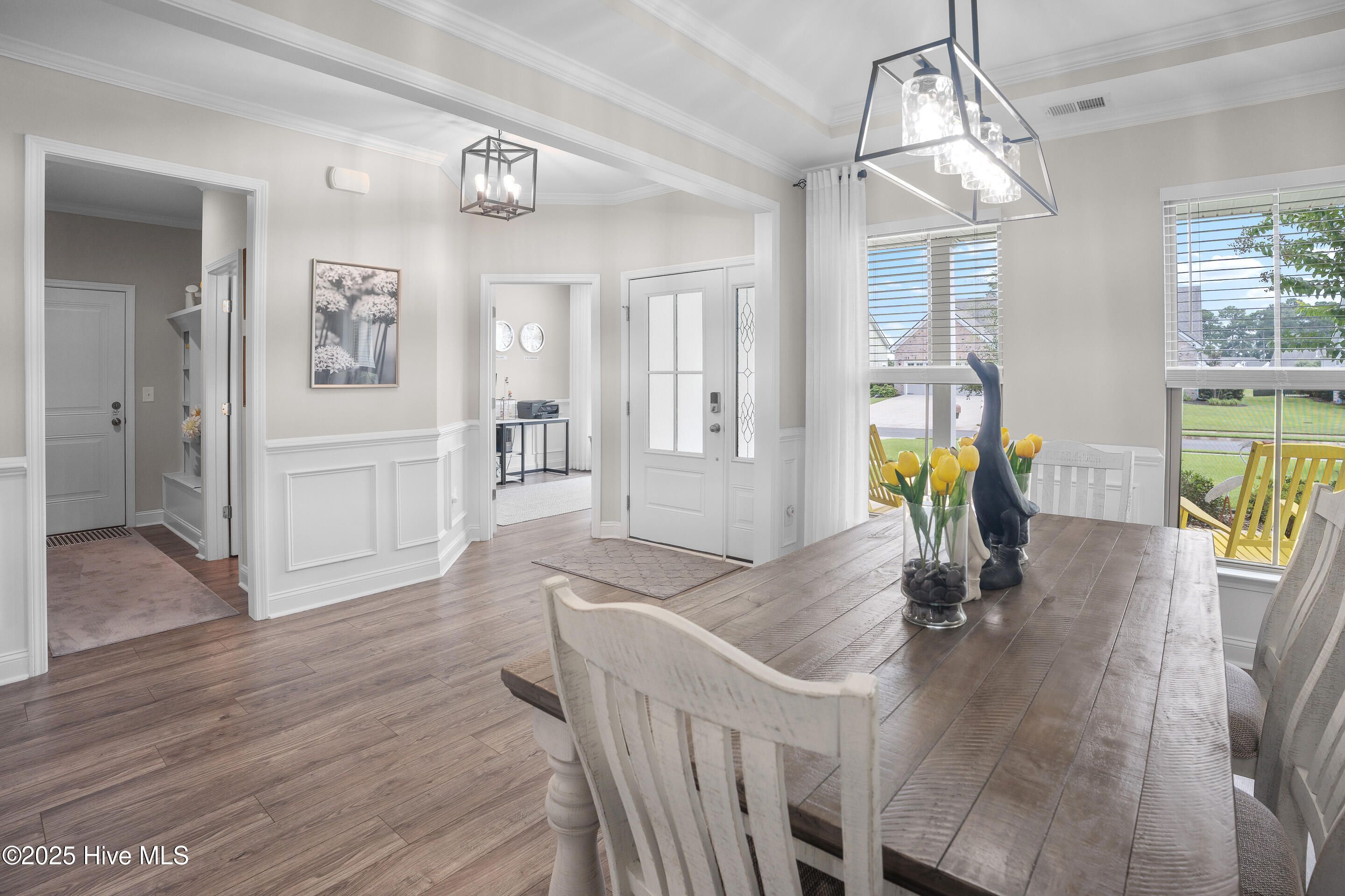 - Master Downstairs, Walk-In Closet(s), Tray Ceiling(s), High Ceilings, Entrance Foyer, Mud Room, Solid Surface Counters, Pantry, Walk-In Shower, Blinds, Separate/Formal Dining Room