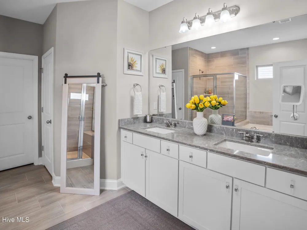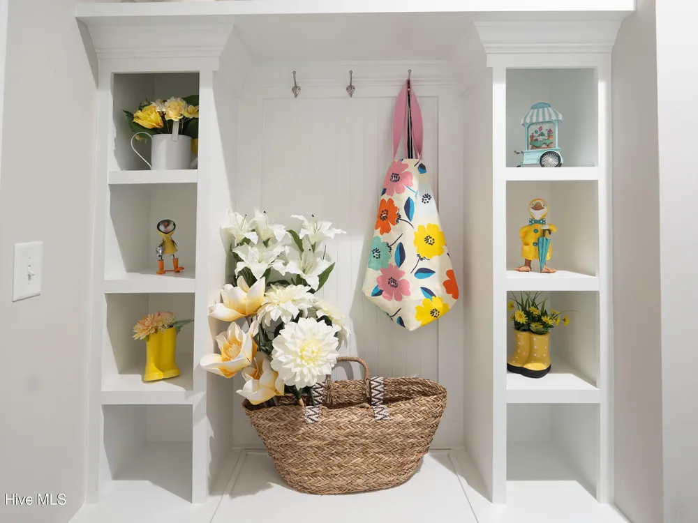 - Blinds/Shades, Solid Surface, Walk-In Closet(s), Walk-in Shower, Tray Ceiling(s), Entrance Foyer, Pantry, Mud Room, Master Downstairs, High Ceilings