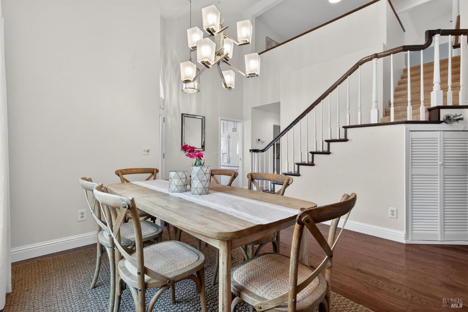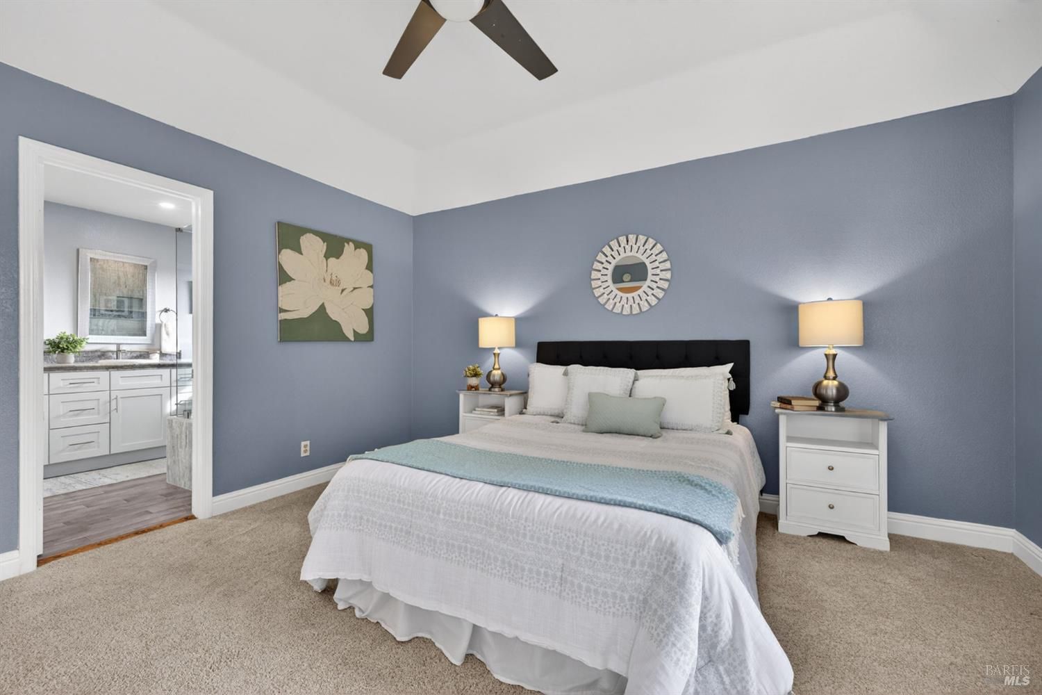 Come home to Chanterelle in Sonoma's coveted 55+ community where Wine Country living meets ease and elegance. This beautifully updated two-story home offers the rare convenience of a main-level primary suite with a remodeled bath, creating the ideal blend of comfort and accessibility. The remodeled kitchen features modern cabinetry, beautiful solid-surface counters and a gorgeous backsplash as well as a cozy breakfast nook, perfect for entertaining or quiet evenings at home. The open living and dining areas are light-filled and inviting, flowing effortlessly to a private patio complete with hot tub that backs to walking trails, the pool, and clubhouse just steps from your door. Upstairs, guest quarters or flex space provide room for visiting family, hobbies, or a home office. Thoughtful upgrades, a peaceful setting, and a move-in-ready condition make this residence a standout in one of Sonoma's most desirable active-adult enclaves. Enjoy low-maintenance living with community amenities, scenic trails, and close proximity to downtown Sonoma's shops, dining, and tasting rooms. Discover the lifestyle you've earned relaxed, refined, and distinctly Wine Country.