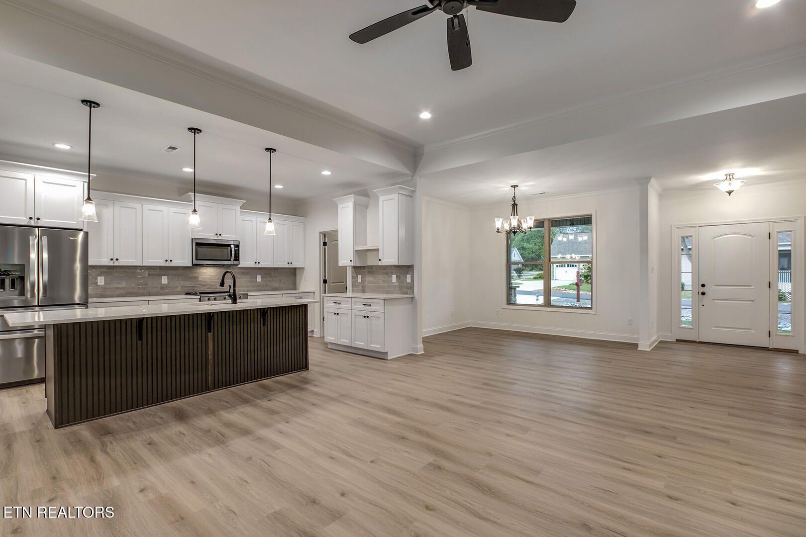 One of Tellico Village's premier builders presents a stunning home ready for you! Situated on a level lot, this exquisite residence features an oversized three-car garage with convenient access. The open-concept design offers a touch of luxury, boasting stainless steel appliances, quartz countertops, a spacious pantry, and elegant cabinetry. The expansive great room flows seamlessly into a formal dining room and a cozy breakfast nook. The master suite includes a luxurious master bathroom and a generous walk-in closet. This split-floorplan home also features two additional bedrooms and a full bathroom on the main level. Upstairs, a versatile bonus room—perfect as a bedroom, recreation room, or whatever suits your needs—comes with another full bathroom and a walk-in storage area for all your belongings. Don't wait—this exceptional home won't last long! Square footage is approximate, buyers to verify.