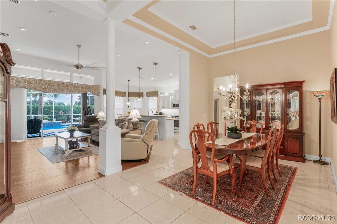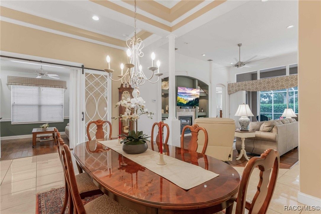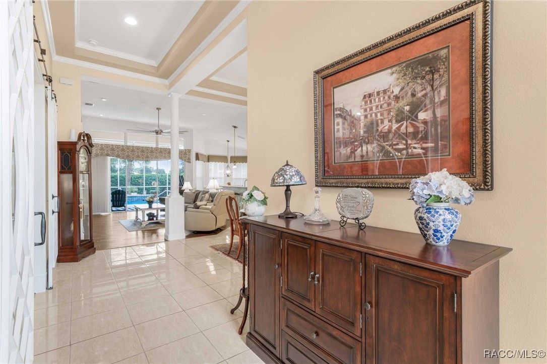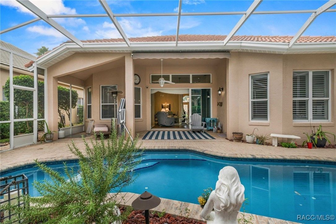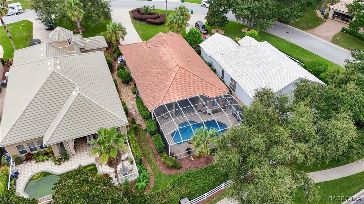 The St. Royal is a very fitting name for this former model home in Sky Glen because living like royalty will be a breeze in this open floor plan. No expense was spared to bring the finest quality craftsmanship and materials together to create one beautiful house for you to make home! You already know the fabulous amenities of this premier lifestyle community from the Bella Vita Spa to the activity center, the Skyview club, golf and tennis but if you haven’t experienced the charm of a quiet cul-de-sac where no two homes look alike and neighbors know your name then you haven’t seen one of the prettiest streets in Terra Vista…yet! Stunning curb appeal with manicured landscaping, an amazing lawn and a long driveway for off-street parking, too! The leaded glass single-light French door with side light and eyebrow window overhead are a gracious welcome for your guests while filtering light throughout the day into the foyer. The den/study features custom-built-in cabinets, designer barn doors, and the hardwood floors offer an organic, grounded feeling throughout the great room and into the primary suite. Step out to your personal oasis where the pool was refinished in 2021 along with a new pool pump and the entire cage rescreened in 2024. A whole house generator was installed in March 2025. The kitchen is every cook’s dream with state-of-the-art gas range and all stainless-steel appliances. There are so many upgrades in this house that you owe it to yourself to see them in person! But do it while you can, this crown jewel won’t be around forever!