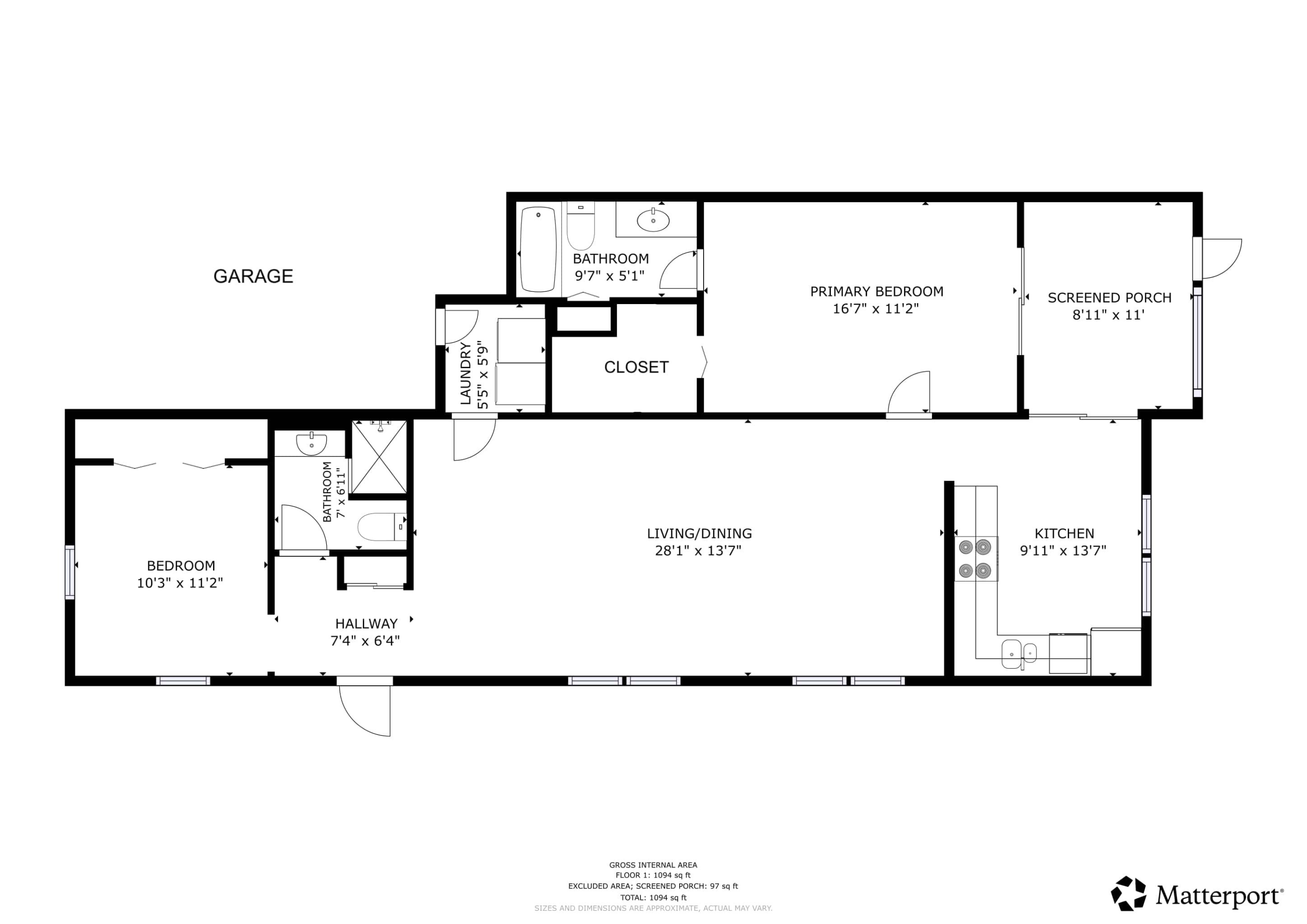 - Entry Level Living Area, Split Bedrooms, Walk-In Closet(s), Living/Dining Room, Eat-in Kitchen, Tub Shower