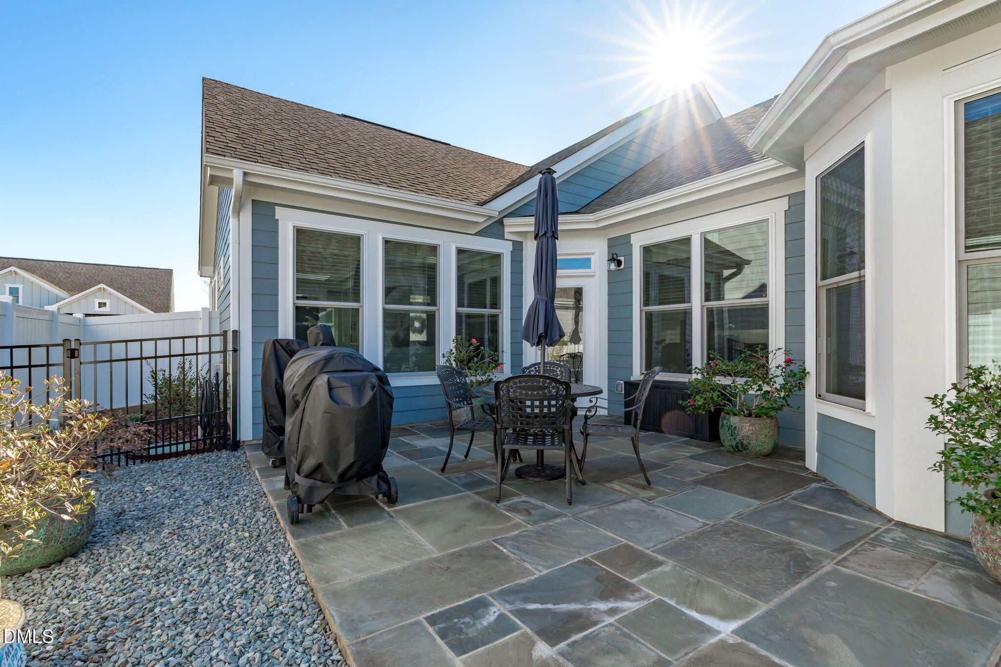 Experience luxurious living in this stunning, well maintained, better-than-new remodeled home. This is an Epcon Community Palazzo courtyard home built by McKee. The sleek kitchen offers ample space for effortless entertaining, featuring soft-close and pull-out drawers. This kitchen has ''two'' pantries! One custom-made with tons of storage and pull-out drawers in the kitchen and the other walk-in custom pantry behind the kitchen. The open plan living area comprises a spacious family room and breakfast area, perfect for social gatherings. Relax and unwind in the private fenced backyard with a custom flagstone courtyard. The primary suite showcases a premium bathroom and expansive walk-in closet with custom made shoe and handbag closets, jewelry drawers and many multiple places to put your clothes. Primary sitting area now used as home office. Additional bedroom for guests. French door-flanked sunroom to enjoy your morning coffee. Residents also enjoy inclusive yard maintenance and access to a community dog park and multiple pocket parks. This is a dream home with so many upgrades it will be hard not to make this your home. Perfect starter home or retirement abode providing effortless travel freedom, showcasing exemplary turnkey home design.