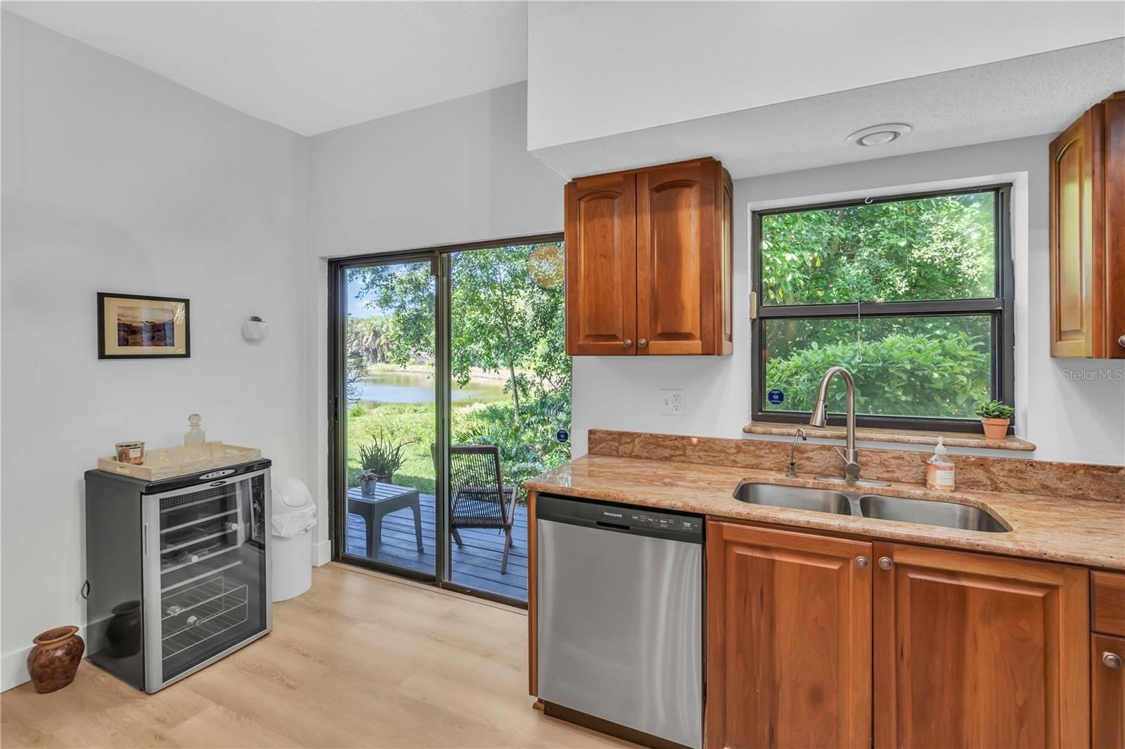 Welcome to this beautifully designed single-level unit offering 1,712sqft of thoughtfully crafted space. Step inside and feel the difference—high ceilings, new luxury vinyl floors, crisp baseboards, and large sliding back doors give the whole place a bright and modern feel. The kitchen features new appliances, granite countertops, and opens seamlessly to the dining area and family room, making it perfect for entertaining guests or everyday living. Step out onto the back deck that is surrounded by lush, Florida greenery overlooking a serene lake creating a tranquil spot to enjoy morning coffee or for some evening unwinding. The generously sized master suite offers a peaceful escape, featuring plush, new Karastan carpet, a stylish headboard accent wall, and a spacious walk-in closet. Just beside the closet, a dedicated vanity area provides space to get ready for a night out or a quick trip downtown. Step into the en-suite bathroom, where modern sophistication shines through an updated gray vanity topped with quartz, complemented by new lighting and fixtures. The home’s true split floor plan ensures privacy for all, with the second bedroom tucked away on the opposite side—ideal for guests or a home office. It enjoys easy access to a second full bath, complete with a granite countertop vanity and tasteful finishes. The unit includes a centrally located laundry room with a full-size washer and dryer, plus built-in storage cabinets, making everyday chores a breeze. A one-car garage adds convenience and completes this thoughtfully designed home. Beyond the walls of this beautiful place, The Landings offers a lifestyle that is second to none. Residents enjoy 24-hour gated security, direct access to Sarasota Bay, and a vibrant natural setting that feels like a private sanctuary. Amenities include a heated swimming pool with designated lap lanes and a relaxing spa, a full-size fitness center with locker rooms and showers, two clubhouses available for social gatherings and recreation, as well as Pickleball courts and 8 Har-Tru clay tennis courts for active living. Children will also love the opportunity to take tennis lessons and explore two beautiful, local parks. Recent community upgrades include a new roof (August 2023) and freshly paved roads (2024), ensuring both beauty and peace of mind. Located just outside the gate, there are many top-tier restaurants, and with Siesta Key Beach less than 6 miles away, you are never far from the world-class sunsets. Whether you are seeking a prime investment or your forever Florida home, this property offers the perfect blend of luxury, location, and lifestyle.