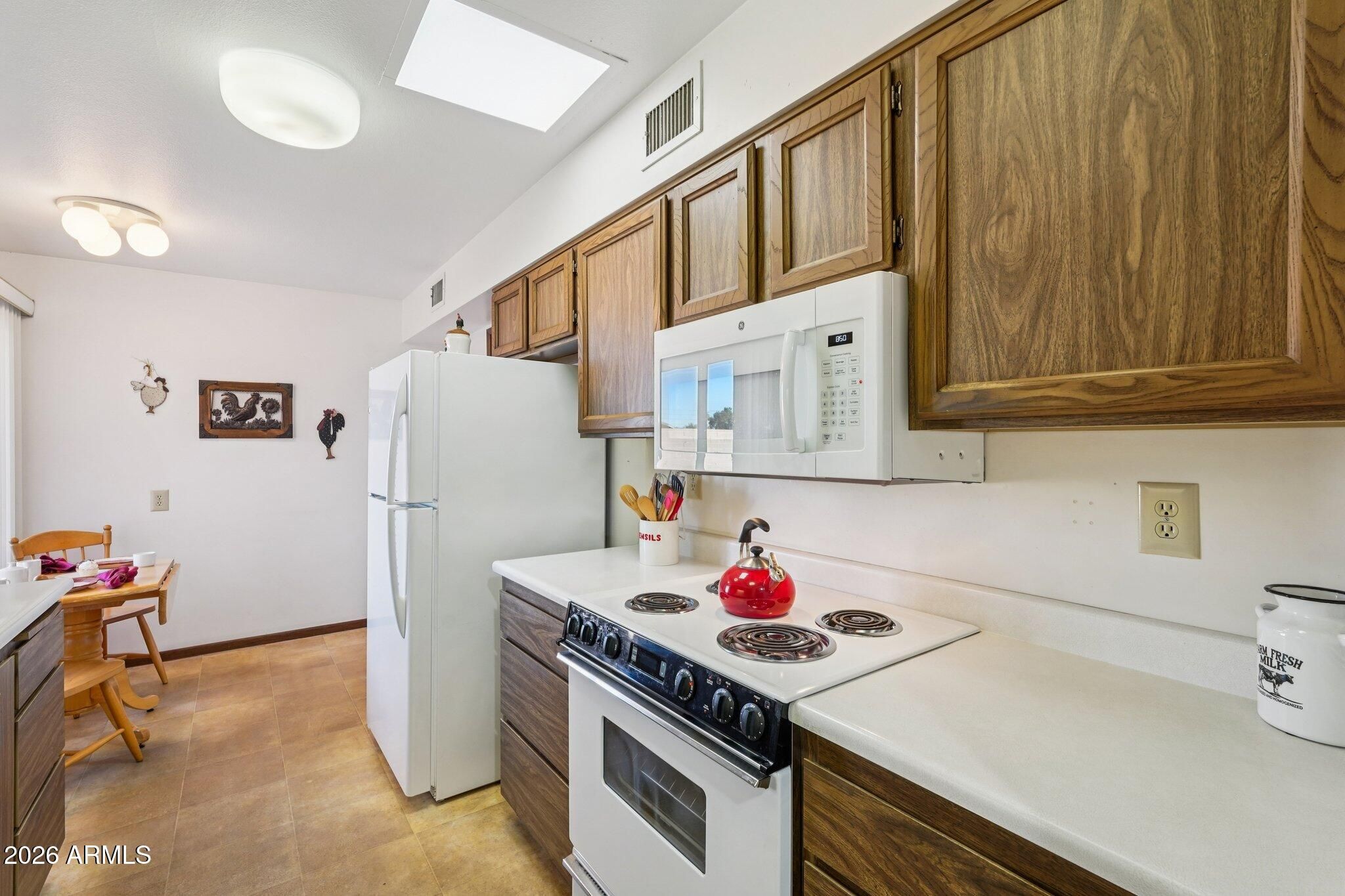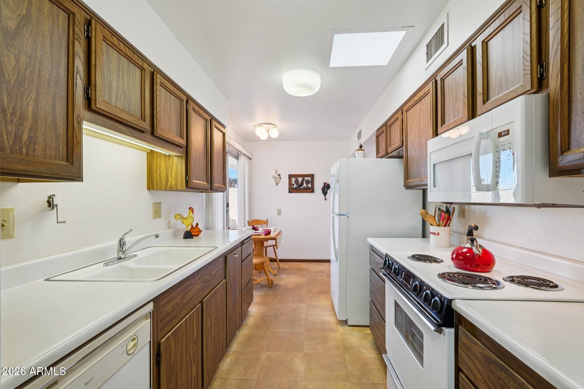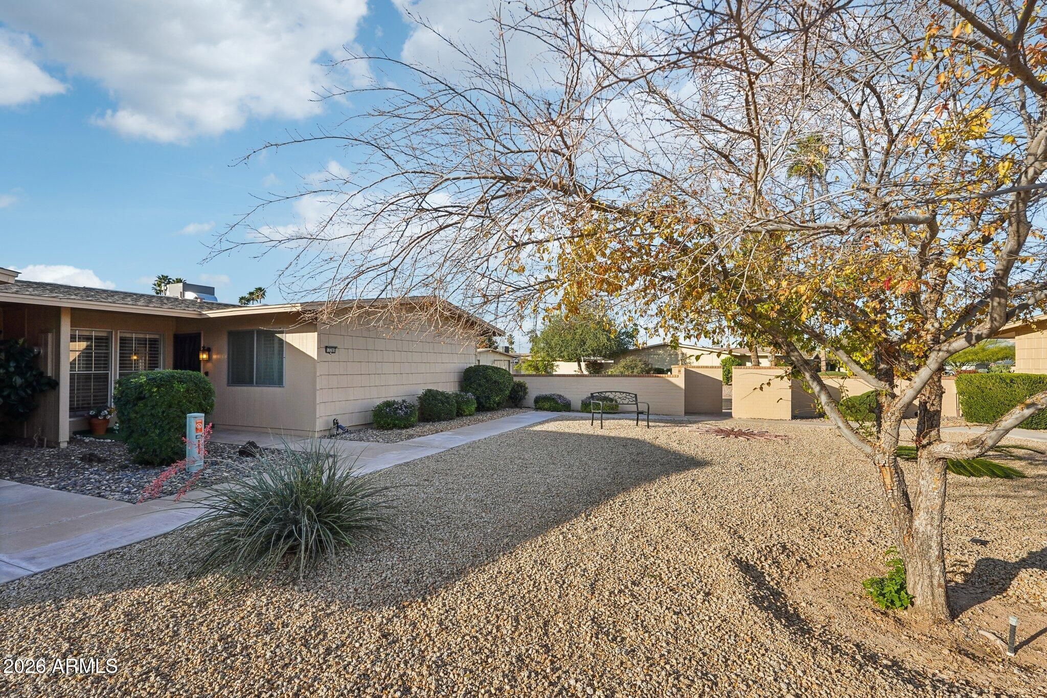 Highly sought after END UNIT w/ a PRIVATE PATIO - No Shared Patio wall * Light & Bright w/ Skylights * 2 BED / 2 BATH * 1.5 CAR GARAGE * Well cared for home w/ the same owner since 1995 * NEW LENOX AC 2023 * NEW WATER HEATER 2023 * Eat-in Kitchen * Large Living/ Dining Combo * Large Primary Suite w/ Shower, Walk-in Closet * AZ Room w/ slider to Flagstone Patio/ Private Back Yard * Full Hall Bath with Tub/ Shower * Large 2nd Bedroom * Laminate Flooring , LINO & carpet in beds * Original DUAL PANE Windows * Plantation Shutters / Blinds * NEW Washer/ Dryer 6/2025 * NEW Fire Rated Door to Garage * Professionally cleaned home & carpets * Xtra Parking in back * Dishwasher As-Is * Located in Prime area of Sun City Phase 3 close to Shopping, Banking, Dining & Medical * 2 PETS 40lb * NO RENTALS * Furniture can convey - Staging decor does not convey * The Bell Recreation Center & Marinette Recreation Center close by * Sun City offers many amenities! 7 Rec Centers with swimming pools, lap pools, walking pools, Hot tubs and every activity, work shop, & craft you can think of! Bowling! Pickleball! Shuffle Board! Pool Tables! Darts! Tennis! Ground Bowling! Mini Golf! Lake Activities! 9 Public Golf Courses & Reduced prices with Rec Card. 2 Private Golf Courses open to the public! And much more! Close to shopping, restaurants & entertainment! Close to Spring Training Base Ball Fields. Close to Arrowhead Mall, Lake Pleasant and all of it's growing amenities, medical facilities, hospitals, entertainment, shopping & restaurants!Close to Grand Ave, Bell Rd & 101 access! The list goes on & on!