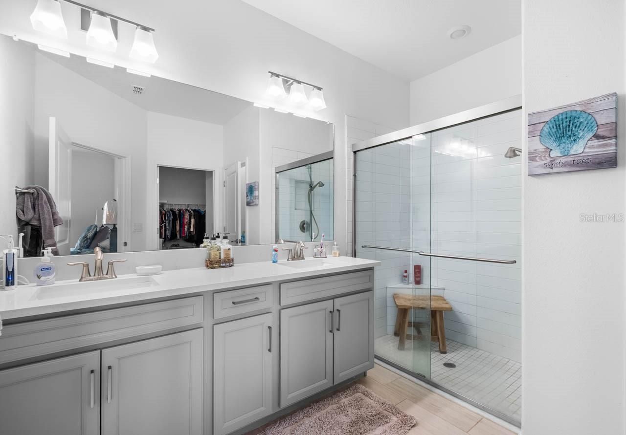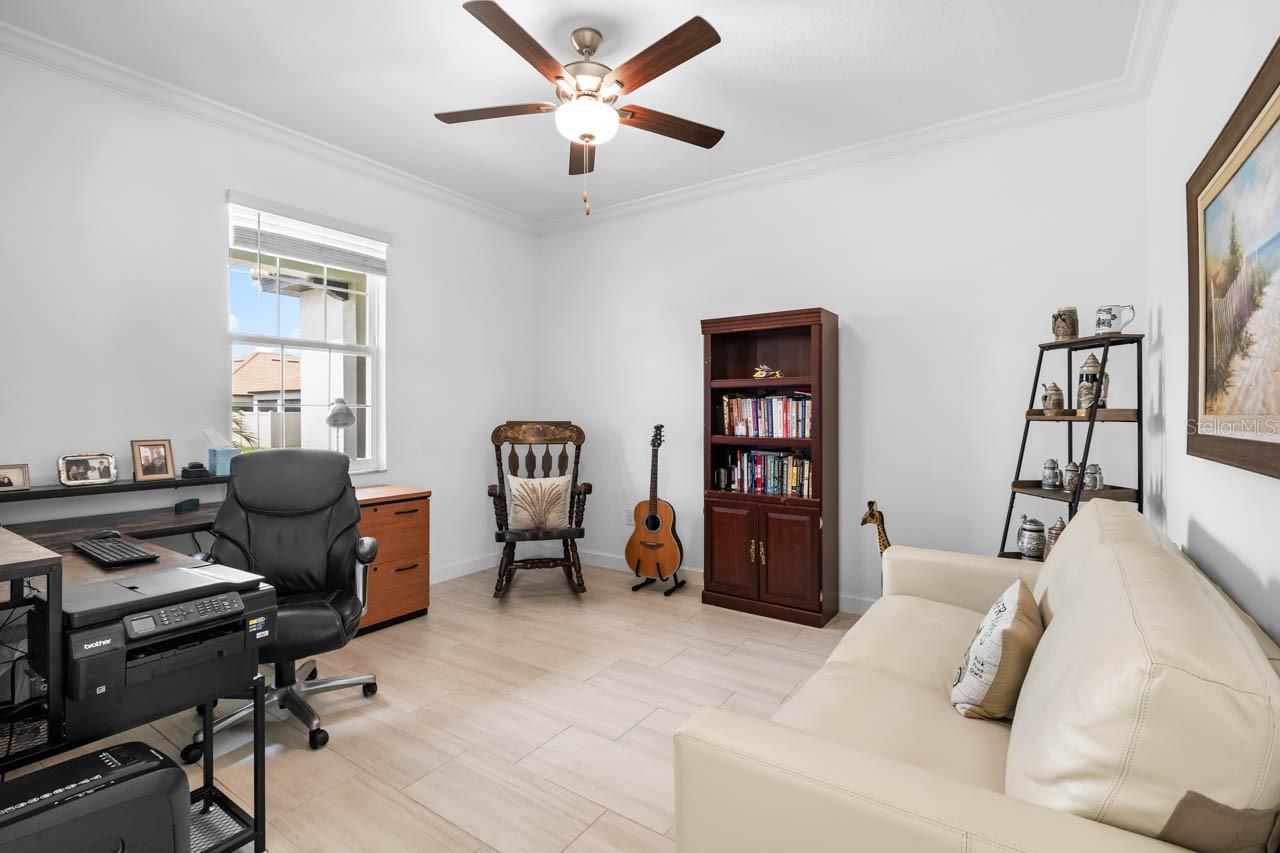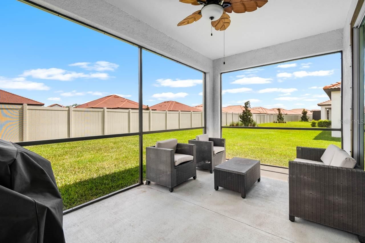 This beautifully maintained 2-bedroom, 2-bathroom home with a flex room and 2 1/2-car garage is better than new and ready to impress. Located in the premier, gated, active adult community of Medley at Southshore Bay, this home offers a lifestyle of comfort and convenience.Step inside to discover a spacious, open, and split-bedroom floorplan featuring ceramic woodgrain plank tile throughout the main living areas and carpet in the bedrooms. The home is thoughtfully designed with ceiling fans in every room, recessed lighting, and crown molding for a touch of elegance. The gas appliances and tankless gas water heater provide efficiency and modern convenience.The chef’s kitchen is a true highlight, with quartz countertops, painted cabinets with staggered height, and crown molding for added sophistication. The oversized island with a breakfast bar, walk-in corner pantry, and gas range make this kitchen as functional as it is beautiful.The master suite is a serene retreat with an ensuite bath featuring dual quartz vanities, an oversized glass-enclosed shower, and a large walk-in closet. The second bedroom and additional flex space (perfect for a home office or potential third bedroom) offer plenty of room for relaxation and versatility.The garage includes a 9x9 golf cart/workshop space, providing extra room for hobbies, storage, or a small studio setup—ideal for those who need a bit more space.Step outside and embrace Florida living. The covered and screened patio with a ceiling fan is perfect for relaxing or entertaining. And don’t miss the charming front porch, where you can unwind and enjoy vibrant Florida sunsets in the evenings—your own slice of paradise.Additional features include a tile roof, pavered driveway and walkways, and a separate laundry room.Medley at Southshore Bay is a vibrant, resort-style community designed exclusively for active adults who want to enjoy life to the fullest. This 55+ community features a private, gated entrance, providing peace of mind while still being part of a dynamic and social environment. Residents enjoy access to top-tier amenities including a luxurious clubhouse, a fitness center, resort-style pool, pickleball courts, and a grand ballroom for social events and gatherings. Plus, the stunning Southshore Bay Lagoon offers a unique aquatic experience with its beach entry, water slides, and cabanas, creating the perfect place to relax or entertain friends and family.The community is also ideally located near shopping, dining, and entertainment, with easy access to I-75 and zus Hwy 301, making it convenient for travel to nearby Tampa and the Gulf Coast beaches. Medley at Southshore Bay combines the best of both worlds – a peaceful, tranquil environment paired with a socially vibrant atmosphere where new friendships are waiting to be made.