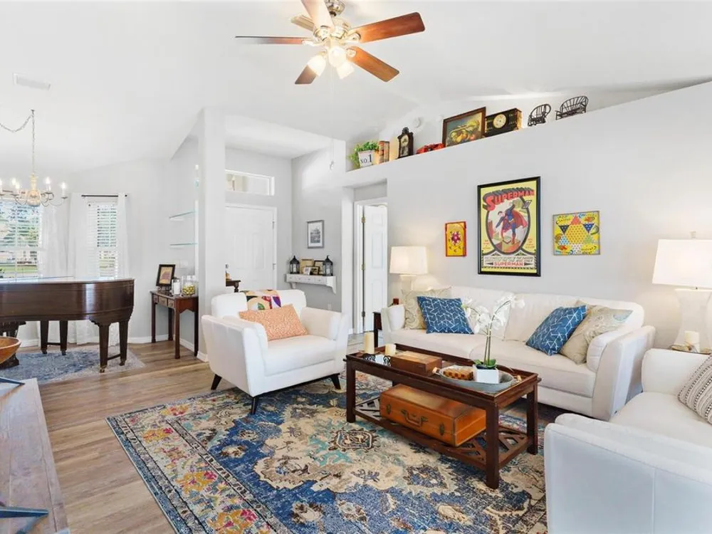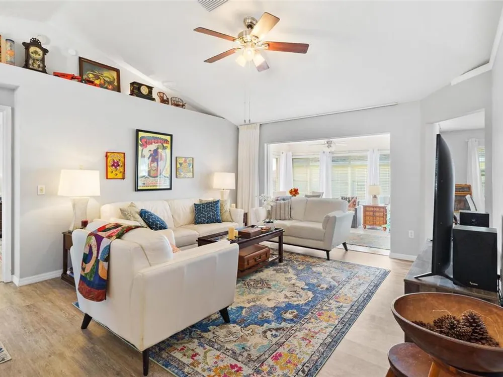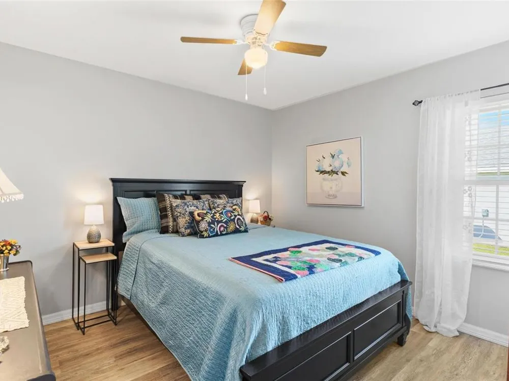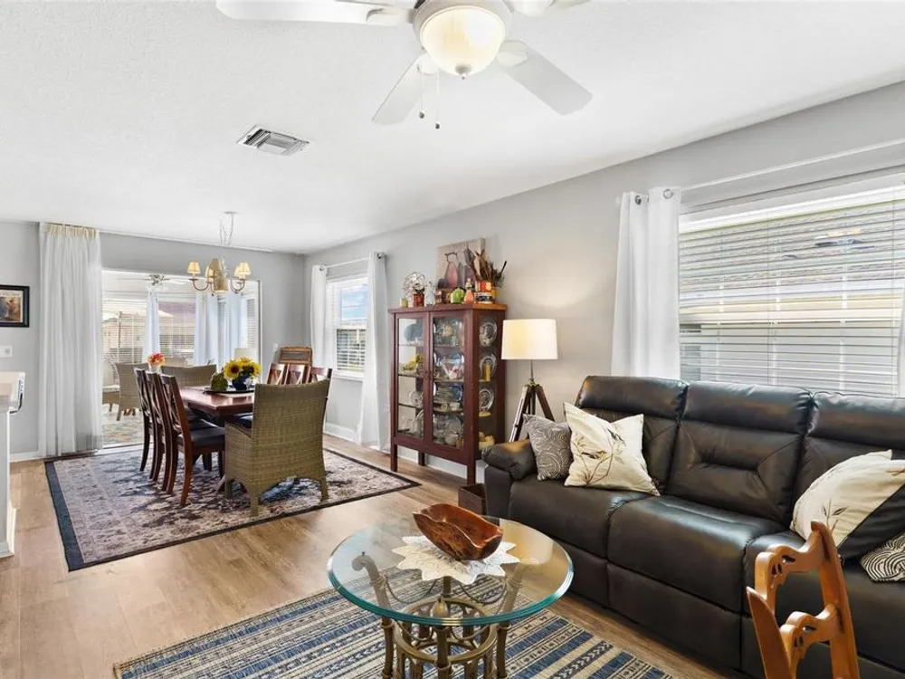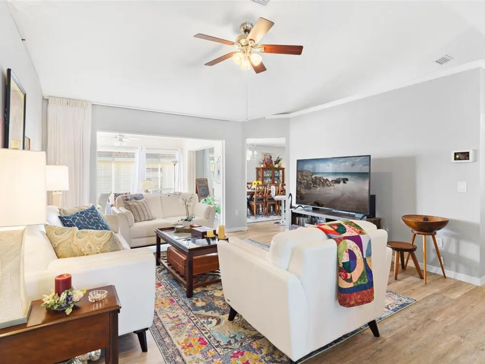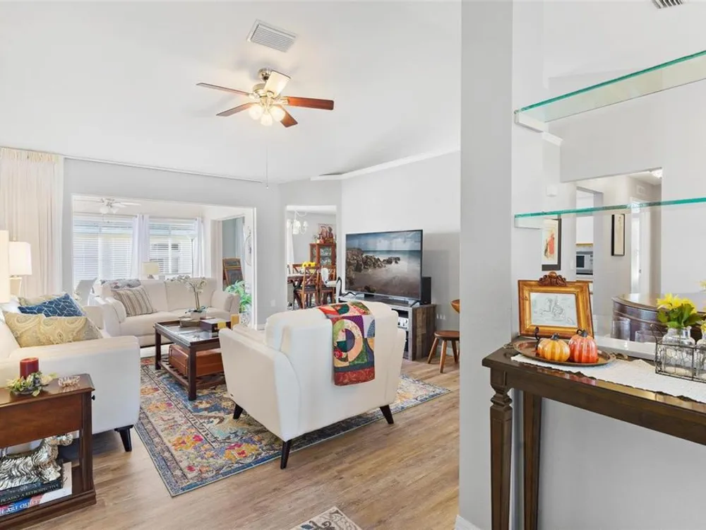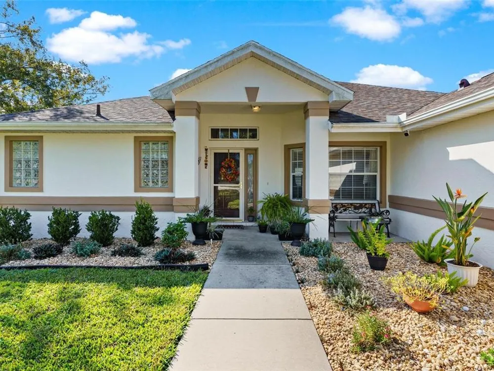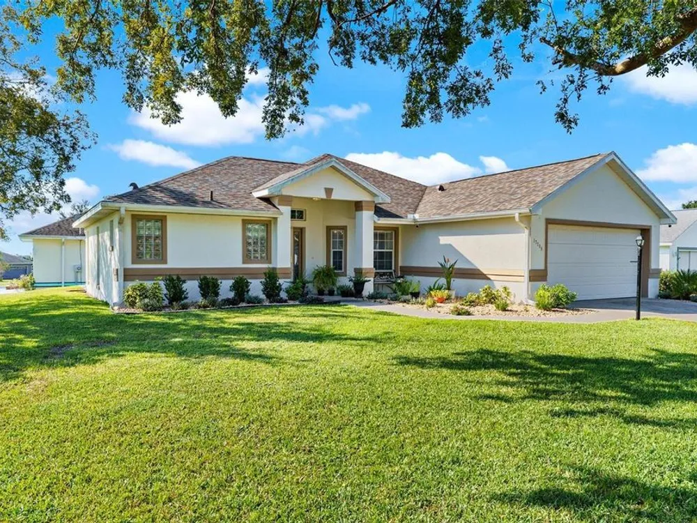 A Traditional Favorite! Affordable, Adorable, and Loveable! This charming 2-bedroom, 2-bath home with nearly 1,700 sq ft of living space checks all the boxes and is nestled in the Fairways section of Stonecrest. From the moment you arrive, you’ll fall in love with the oversized corner lot, lush landscaping, and pristine curb appeal. Step inside and be greeted by a light-filled, open layout featuring a formal living and dining area, newer luxury waterproof laminate wood flooring in the main living spaces and bedrooms, and a versatile Florida Room with tile flooring—perfect as a reading nook, office, craft room, or additional living space. The split floor plan ensures privacy, with the spacious primary suite tucked off the formal living room. Enjoy sliders leading to a newly added brick paver patio, a walk-in closet, and a spa-like bath with a walk-in shower, garden tub, and dual sinks. On the opposite side, the well-appointed kitchen boasts newer stainless steel appliances, ample cabinetry, and generous counter space, opening to a cozy breakfast nook and family room complete with a built-in entertainment center. The guest bedroom and bath, plus an indoor laundry leading to the 2-car garage, complete the thoughtful design. Recent updates make this home truly move-in ready: Roof (2021), interior & exterior paint (2023), luxury vinyl plank flooring (2024), refreshed landscaping (2024), and updated windows and sliders (2024). Whether a winter retreat or full-time residence, this home was constructed for comfort and convenience. Living in Stonecrest means resort-style amenities at your fingertips—golf, pools, fitness, billiards, crafts, tennis, pickleball, softball, and so much more. Just minutes from The Villages, shopping, dining, medical facilities, and even a golf cart ride to Walmart, the location couldn’t be better. This is a solid decision and a lifestyle upgrade you won’t regret. Plus, a ONE-YEAR HOME WARRANTY is included! What are you waiting for? This one won’t last—schedule your showing today!
