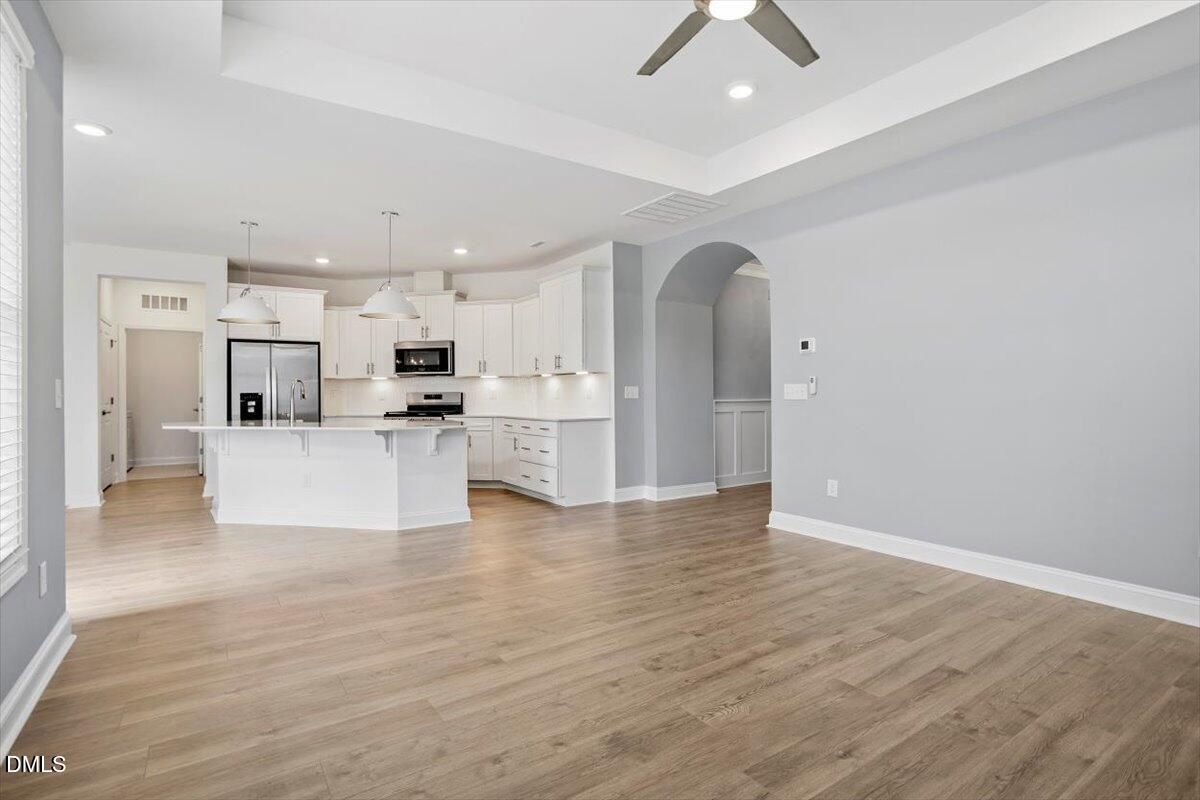 Welcome to this beautifully maintained one-story home featuring smart, open-concept living. The spacious island kitchen opens seamlessly to the inviting family room, creating an ideal space for everyday living and entertaining. This home offers two bedrooms plus a versatile office that can easily function as a third bedroom or flex space. Step outside to a charming Charleston-style courtyard patio, perfect for relaxing, entertaining, or personalizing with plants and décor. Enjoy low-maintenance living with James Hardie fiber cement siding and an irrigation system, allowing more time to enjoy your surroundings. Conveniently located just 5 minutes from downtown Fuquay-Varina and approximately 30 minutes to Raleigh, this home provides the perfect balance of small-town charm and city access. Shopping, dining, and everyday conveniences are nearby, with additional New Target/Retail coming soon. Don't miss this opportunity to own a stylish, low-maintenance home in a highly desirable location.