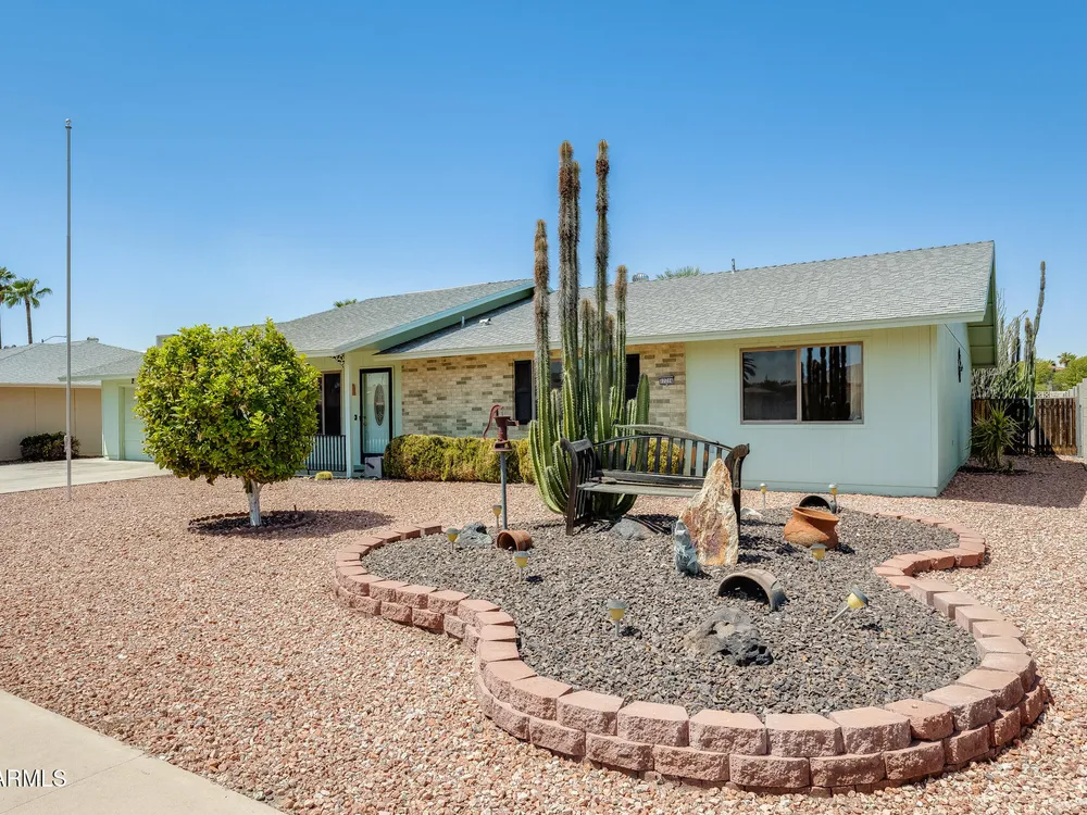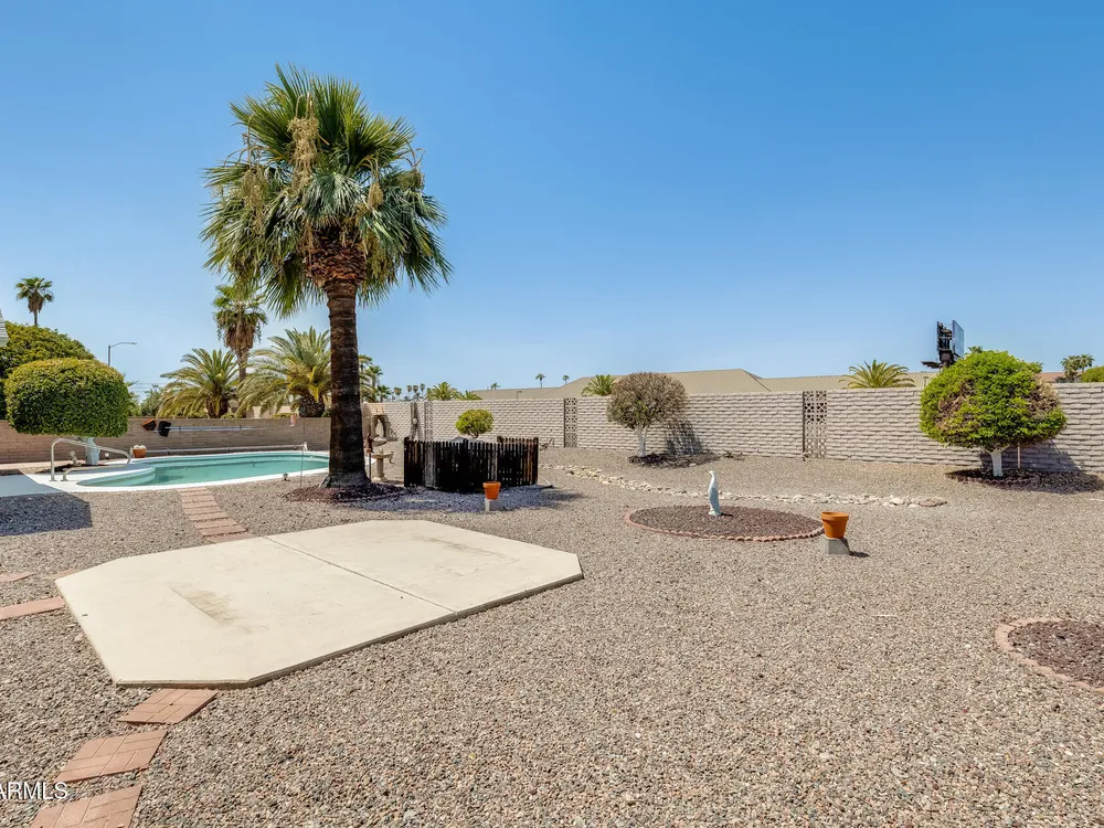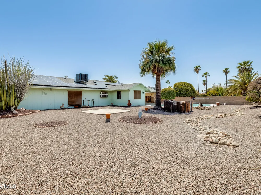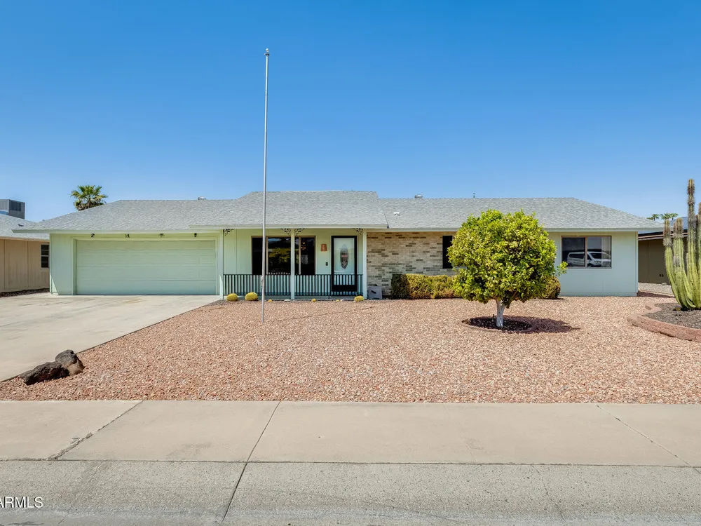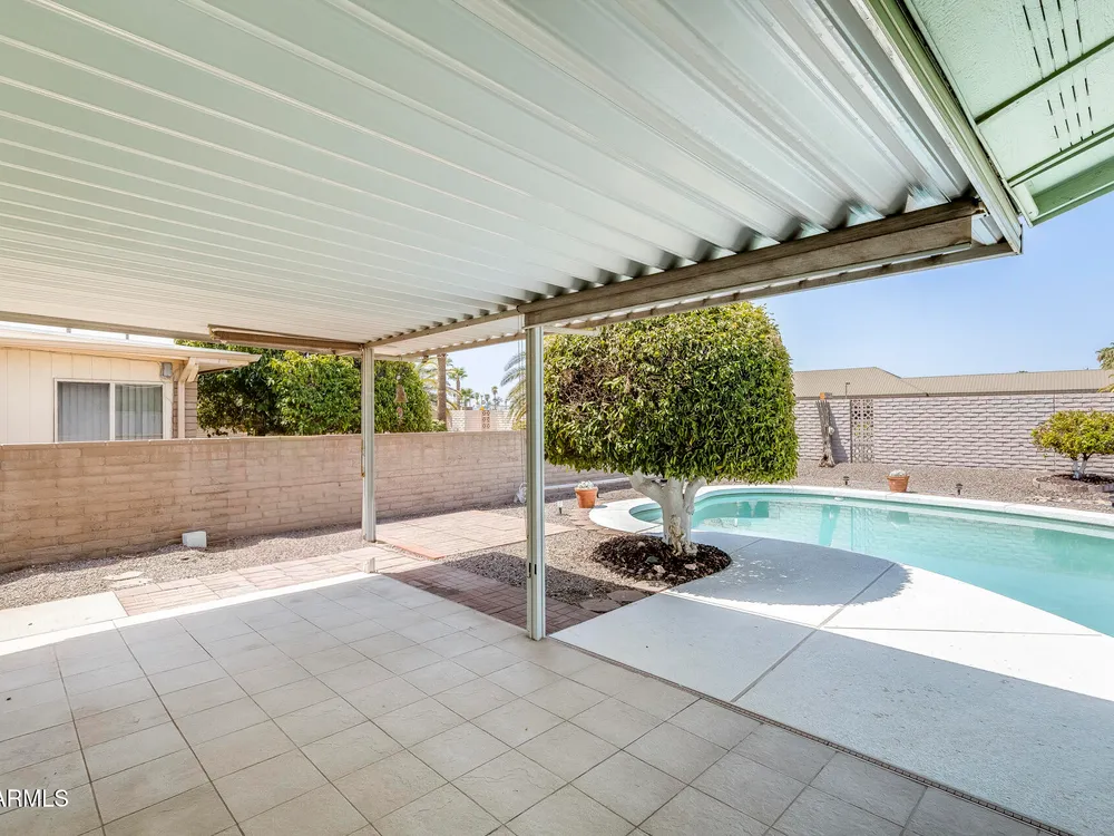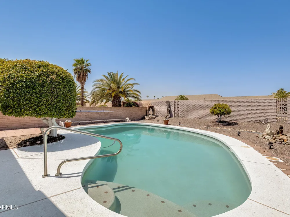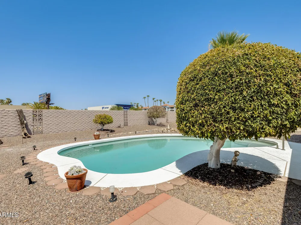FULLY PAID OFF SOLAR LEASE!! Welcome to your dream retreat in beautiful Sun City! This charming 2-bedroom, 2-bath home delivers the perfect blend of comfort and relaxation. The open-concept layout is ideal for entertaining guests or enjoying peaceful evenings at home. A spacious kitchen with ample storage overlooks the inviting living and dining areas. Step outside to your private backyard oasis, complete with a sparkling pool- perfect for cooling off on sunny Arizona days or hosting unforgettable BBQs with friends and family. Located in an active 55+ community, you'll enjoy all the amenities, golf courses, and social clubs, all just minutes from shopping, dining, and more! Here's the best part: there is no other home on the market, in this area, at this price point. Don't miss your chance& tour today before it's gone!