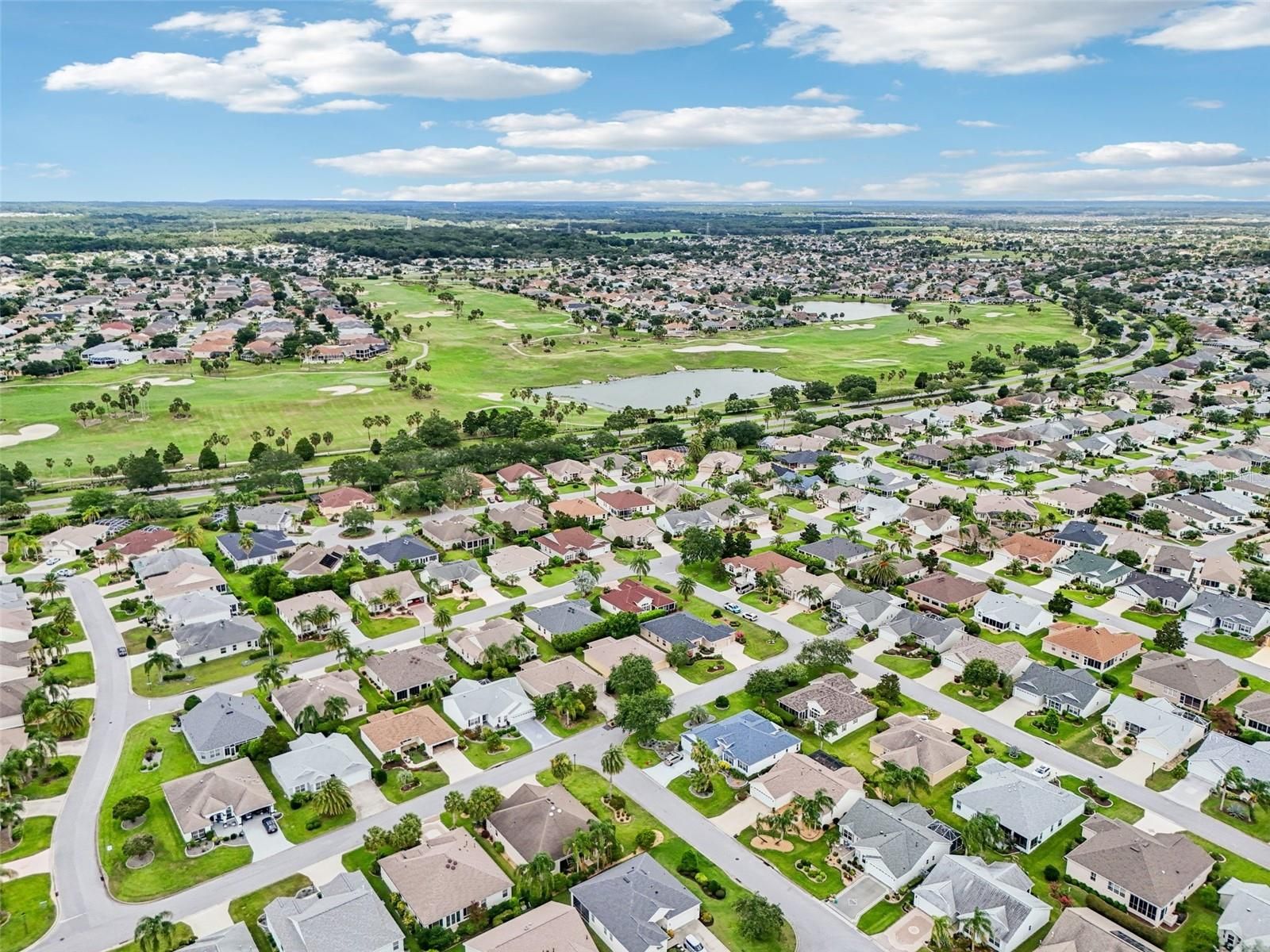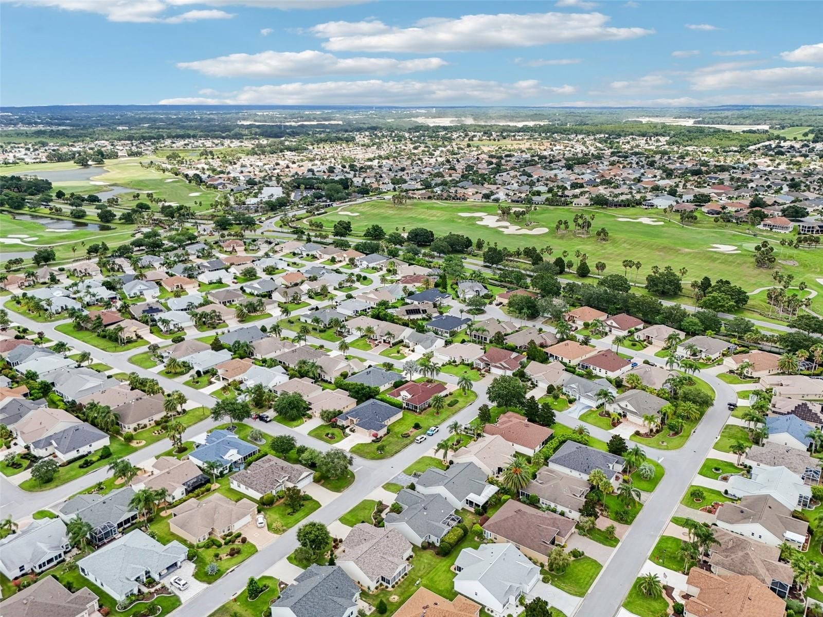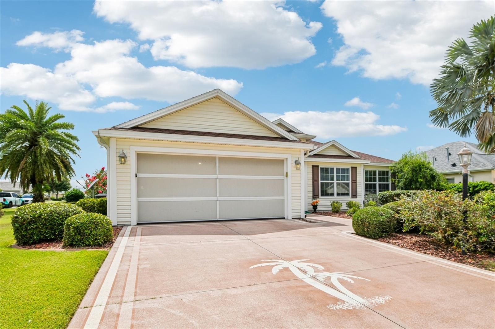 BOND PAID and Location, Location, Location. This 3-bedroom 2-bath Oleander Designer in the Village of SABAL CHASE sits on a Corner Lot (Room for a Pool), has Mature Landscaping, Ceramic Tile Flooring in Foyer, Hallway, both Bathrooms, Kitchen, and Laundry Room, Carpet in two bedrooms, and Laminate in 3rd Bedroom. Home Features: New Roof August 2023, HVAC Nov 2020, Water Heater January 2013, Island in Kitchen with Cherry finish cabinets and pull-out drawers, Corian Countertops, Eat-n-Kitchen, Formal Dining Room with Wood Laminate floor and French doors that open to the lanai, L-Shaped Lanai with Tile Floor, Private Patio, Water Filtration, and Radiant Roof Barrier in attic. The Garage has pull-down attic steps, a work bench, cabinets for plenty of storage, shelving, and a Garage Door with a Screen Garage Door. The Driveway and Walkway is Painted, and there is a 2012 Yamaha Gas Golf Cart. Just 1.1 mile from Sumter Landing off Canal Street. Many of you who are looking for a home priced right and needs some updating...Well this is it. Get it before someone else does. I have a complete Expense Report to upgrade everything or nothing. The Primary Bedroom has two walk-in closets, dual vanity, water closet with door, and a walk-in tile shower. Schedule your private showing today—or request a FaceTime tour if you’re out of the area—and experience all this beautiful property provides.