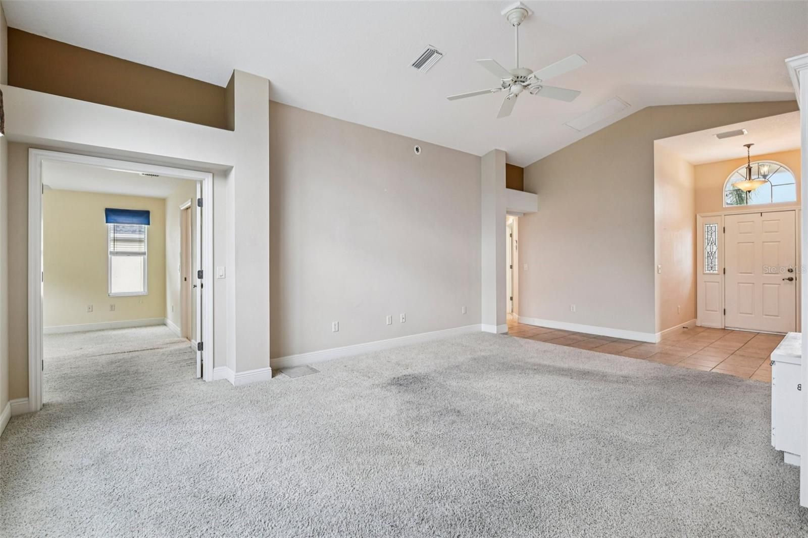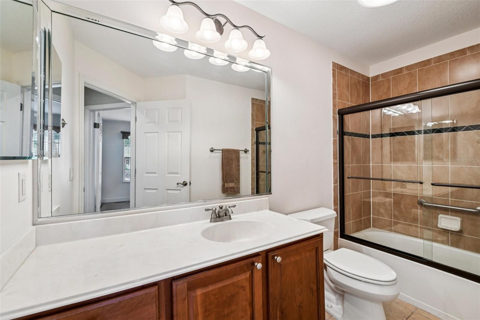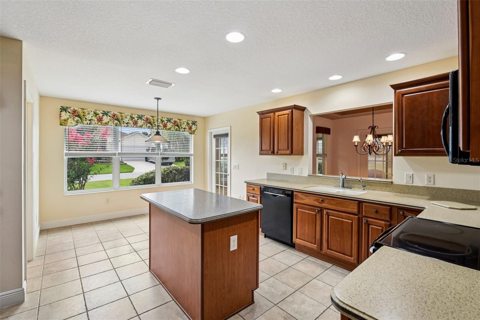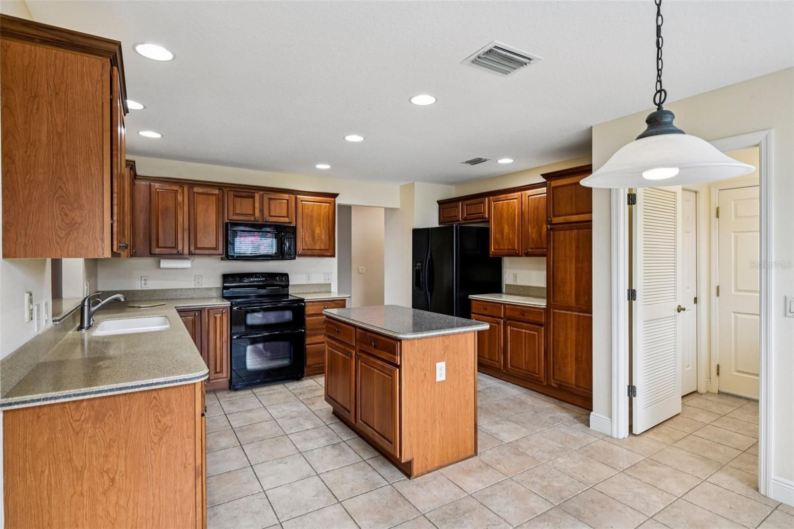 BOND PAID and Location, Location, Location. This 3-bedroom 2-bath Oleander Designer in the Village of SABAL CHASE sits on a Corner Lot (Room for a Pool), has Mature Landscaping, Ceramic Tile Flooring in Foyer, Hallway, both Bathrooms, Kitchen, and Laundry Room, Carpet in two bedrooms, and Laminate in 3rd Bedroom. Home Features: New Roof August 2023, HVAC Nov 2020, Water Heater January 2013, Island in Kitchen with Cherry finish cabinets and pull-out drawers, Corian Countertops, Eat-n-Kitchen, Formal Dining Room with Wood Laminate floor and French doors that open to the lanai, L-Shaped Lanai with Tile Floor, Private Patio, Water Filtration, and Radiant Roof Barrier in attic. The Garage has pull-down attic steps, a work bench, cabinets for plenty of storage, shelving, and a Garage Door with a Screen Garage Door. The Driveway and Walkway is Painted, and there is a 2012 Yamaha Gas Golf Cart. Just 1.1 mile from Sumter Landing off Canal Street. Many of you who are looking for a home priced right and needs some updating...Well this is it. Get it before someone else does. I have a complete Expense Report to upgrade everything or nothing. The Primary Bedroom has two walk-in closets, dual vanity, water closet with door, and a walk-in tile shower. Schedule your private showing today—or request a FaceTime tour if you’re out of the area—and experience all this beautiful property provides.