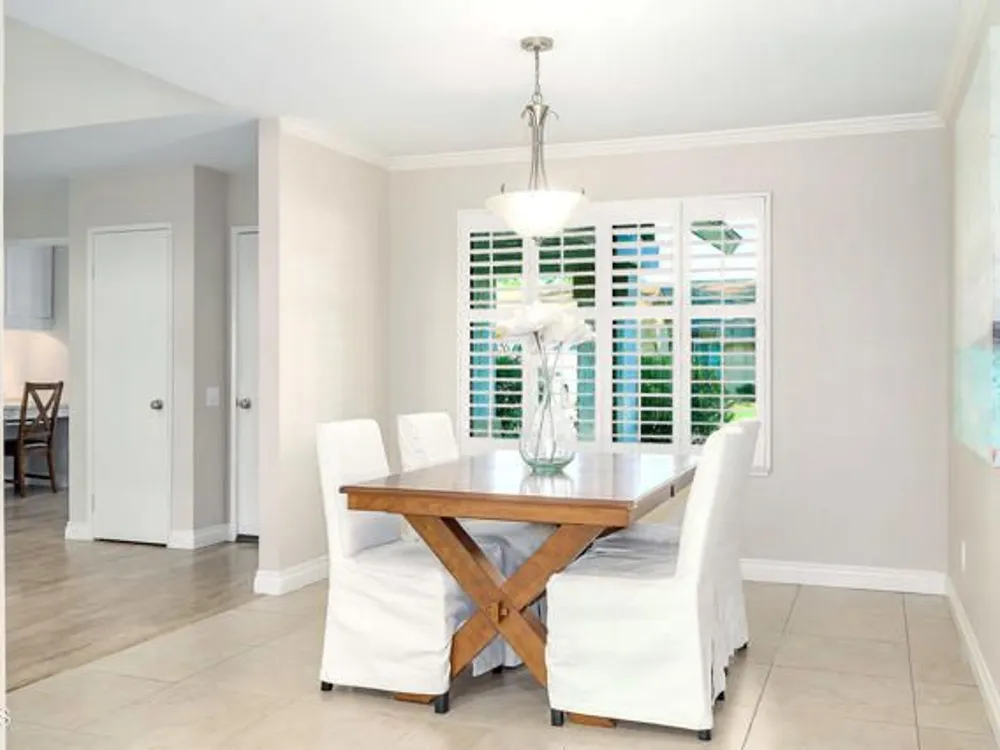 Welcome Home! This beautifully upgraded Amalfi floor plan is the one you've been waiting for--move-in ready and thoughtfully designed for comfort, flexibility, and style. Featuring 2 spacious bedrooms and a versatile den with double doors, this space easily converts into a 3rd bedroom, home office, or flex room to suit your needs.Step inside to find elegant laminate flooring in the main living areas, plush high-quality carpet in the bedrooms, and sophisticated touches throughout--including granite countertops, plantation shutters, and crown molding. The hall bath is handicap accessible and features a seamless walk-in shower with bench seating and a grab bar for added convenience and safety.This home has it all--function, beauty, and value. Priced to sell--don't miss your opportunity! Schedule your private showing today before it's gone!