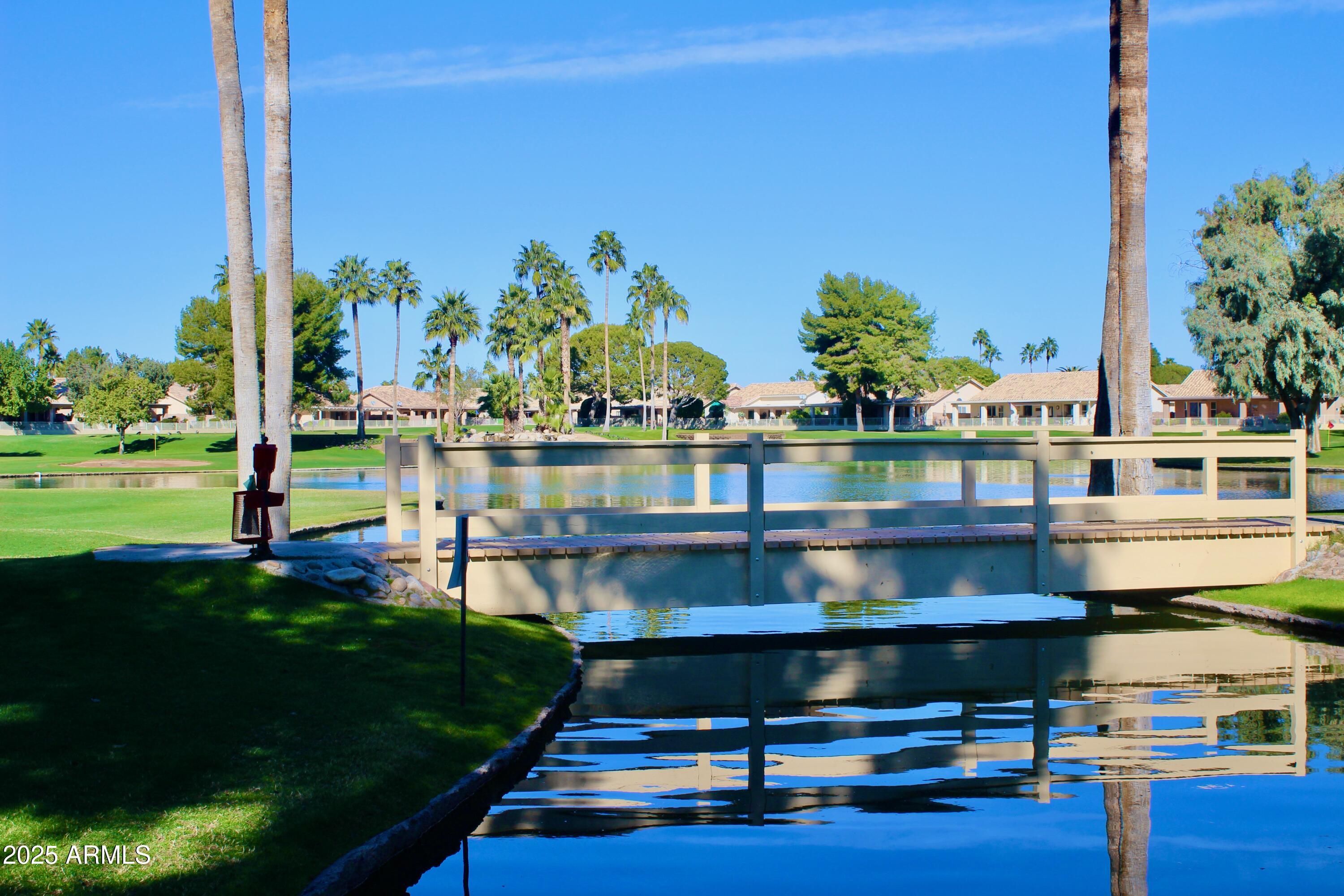 ***BRAND NEW EXTERIOR PAINT*** NEW INTERIOR PAINT*** NEWLY SEALED & COATED ROOF*** SOLD FURNISHED*** Charming patio home with 2 BR + Den and 2 bathrooms. Den can be used for a family room, office and/or extra bedroom for guests. A beautiful back patio gives you the extra space for entertaining or enjoying the mild AZ winters, adjacent to a green common area. Sizable main suite with walk-in shower and private backyard exit to enjoy your morning coffee or to pick fresh oranges from your very own orange tree. The home is adorned with windows everywhere letting in an abundance of natural light in addition to skylights in the bathrooms. In addition to Sun Village community center access, Zuni residents also have their own pool, spa and community center. The amazing community center features a heated community swimming pool and spa. Inside this beautiful gated & guarded resort-style community of Sun Village is an amazing array of features that offer a wide range of activities and events all year-round. Enjoy pickleball, tennis, the huge heated pool and spa, golf course & pro shop and so many more games and activities! The Fitness Center can help keep you in tip-top physical shape, or visit the gift gallery or on-site restaurant. And just minutes away are the Kansas City Royals and Texas Rangers baseball stadiums. Don't miss this opportunity!