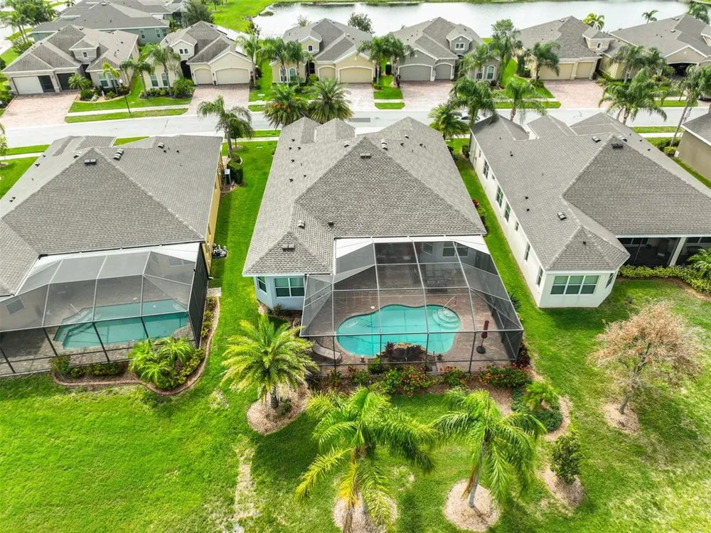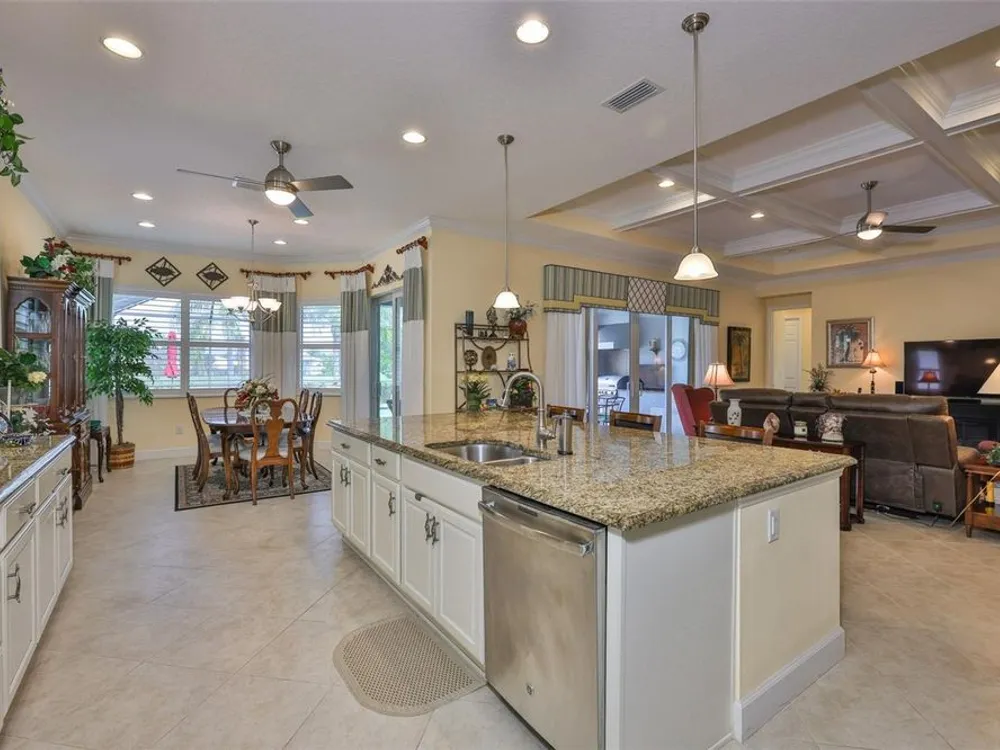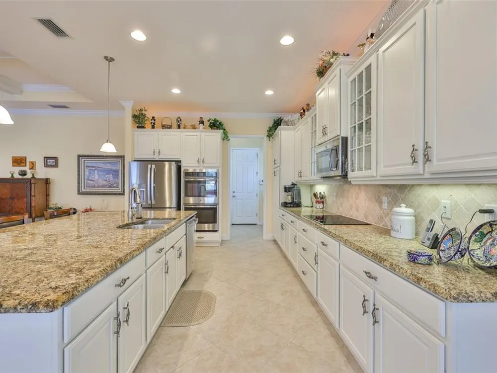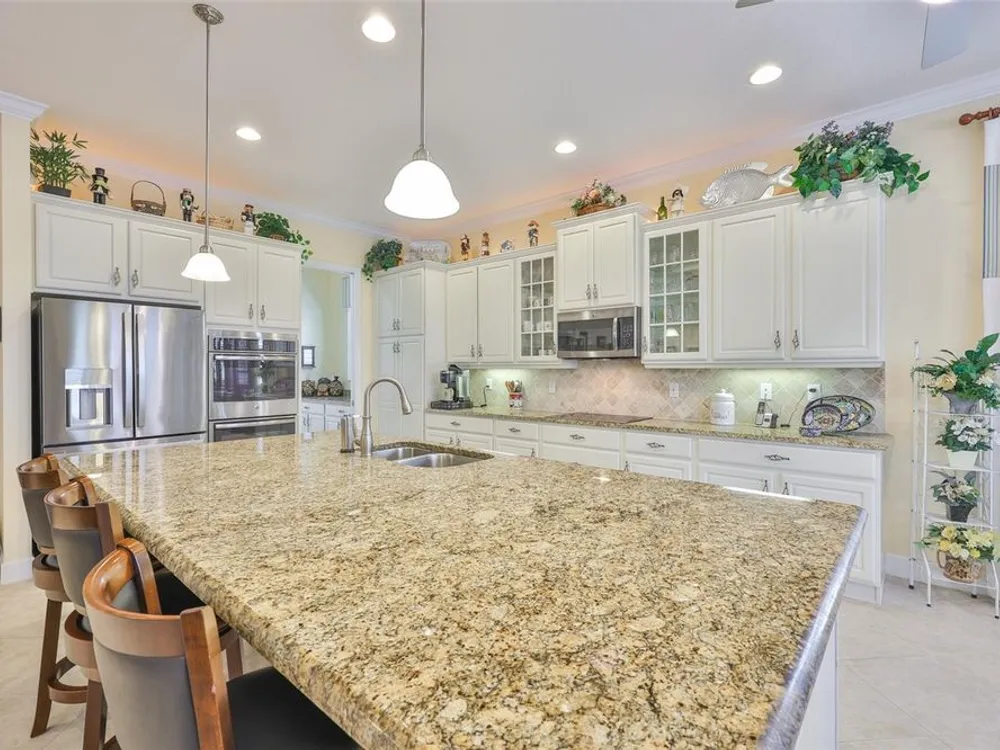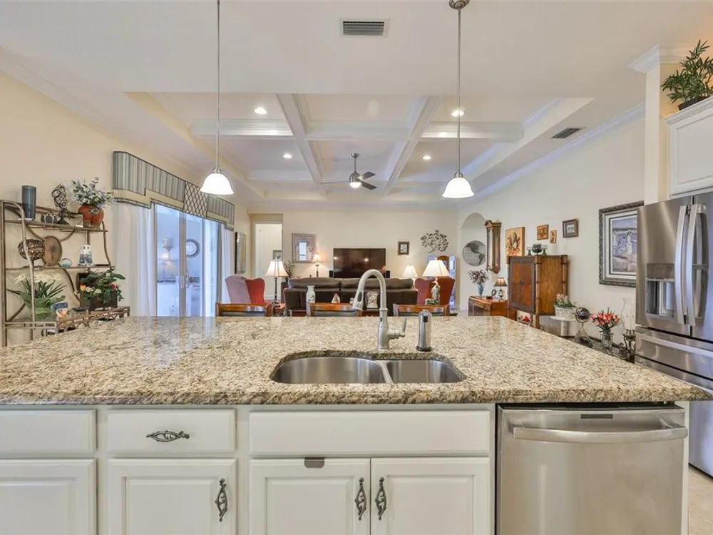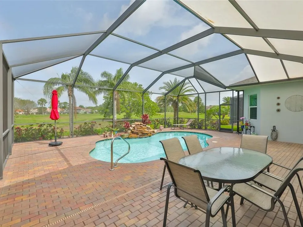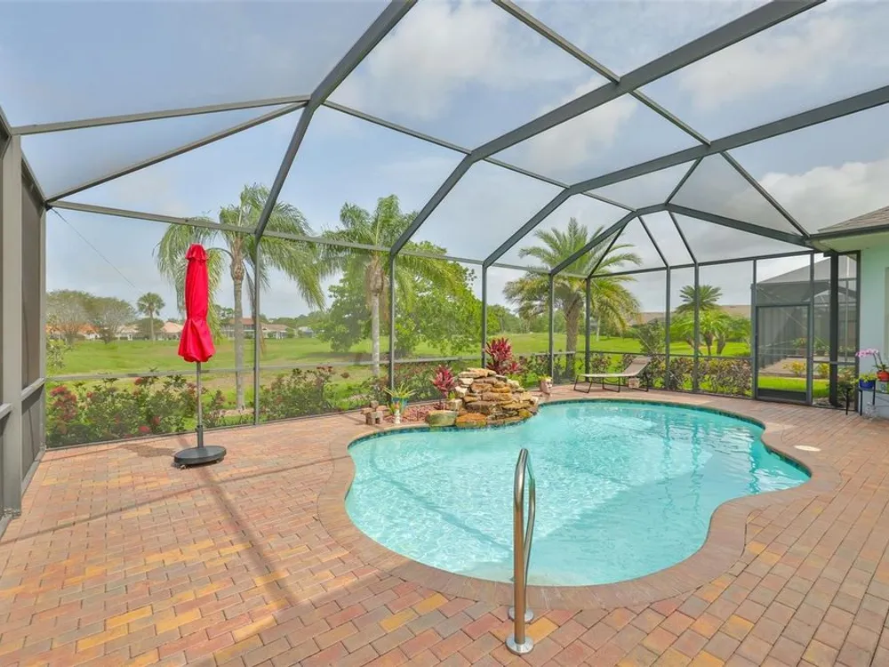 CLICK ON 3D TOUR ABOVE ------- STUNNING HOME FEATURING 3 CAR GARAGE, IMPACT WINDOWS, HEATED SALT WATER POOL, 2 PRIVATE OWNERS' SUITES, NEW ROOF (2025) PLUS UPGRADES GALORE!! (COMPLETE LIST OF ALL UPGRADES IS AVAILABLE). Welcome to active retirement living in the premier 55+ GATED COMMUNITY of Verona, where you'll feel like you're on vacation every day! This immaculate and perfectly maintained 2 bedrooms & 2 1/2 bathrooms "MONTECITO" model offers almost 2400 sq ft of modern open living space. You'll love the elegant touches throughout, such as crown molding, coffered & tray ceilings, plantation shutters & custom window treatments (2020), tasteful decor and ceramic tile & hardwood flooring. The gourmet eat-in kitchen is a cook's dream with 42 inch white cabinetry w/pullouts, stainless appliances that include a double wall oven & induction cooktop (2022), granite counters and huge island for extra seating. The large great room is the perfect space for all your entertainment needs and allows your guests easy access to the lanai area. The den/office has beautiful custom built-in work spaces & bookshelves. For an added bonus, this home has 2 private owners' suites, both with plenty of closet space and lovely ensuite bathrooms. When you want to relax, retreat to your very own private oasis in the extended lanai that features a gorgeous heated salt-water pool w/custom waterfall, built-in outdoor kitchen w/gas grill, refrigerator & sink, plus a covered area for entertaining that has an impact screen for storm protection. HVAC WAS REPLACED 2023 AND WATER HEATER 2025. The new owner will have access to both Club Renaissance, where you can enjoy dining, drinks, fitness classes, spa, social activities PLUS all Sun City amenities such as shopping, restaurants, banking, doctors, numerous social clubs, pickleball and so much more, all accessible by golf cart. So come and view this beauty today and see why you'll want to call it home!
