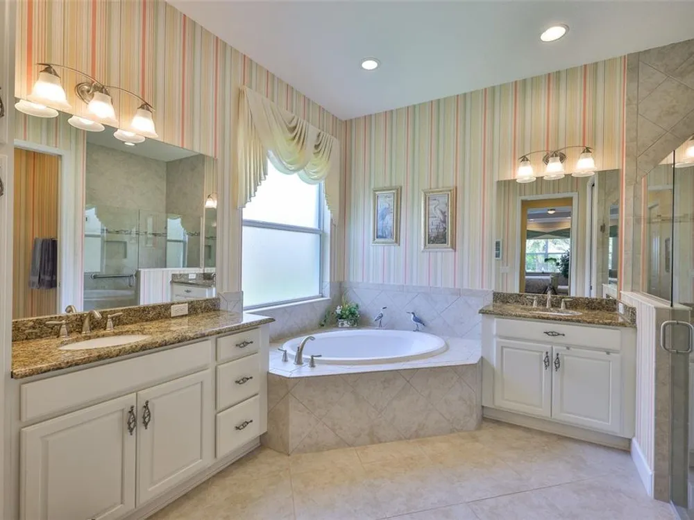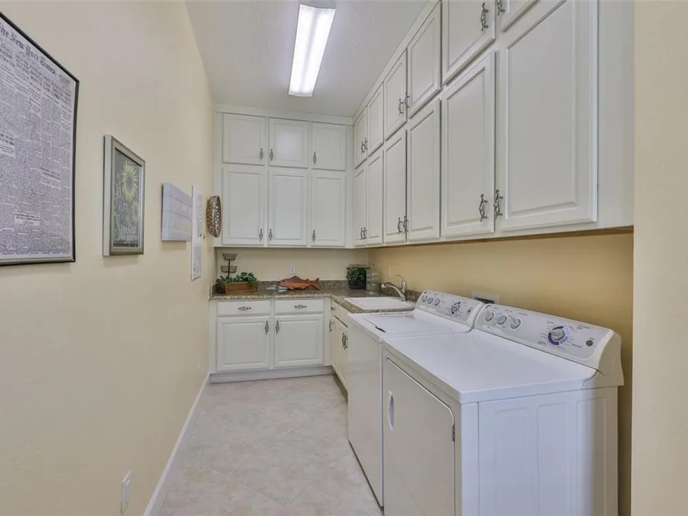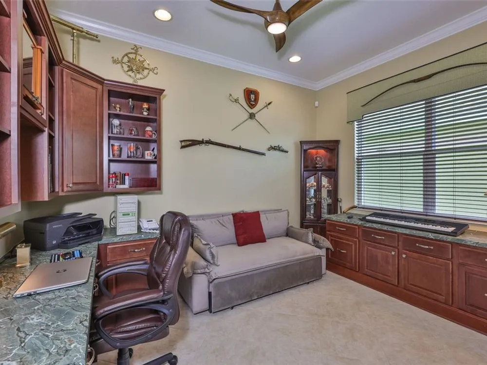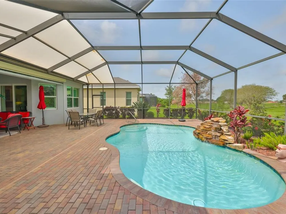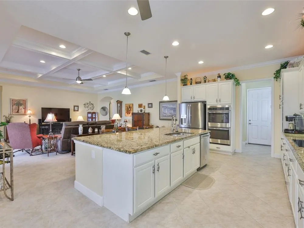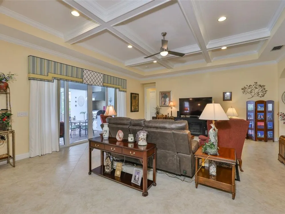 CLICK ON 3D TOUR ABOVE ------- STUNNING HOME FEATURING 3 CAR GARAGE, IMPACT WINDOWS, HEATED SALT WATER POOL, 2 PRIVATE OWNERS' SUITES, NEW ROOF (2025) PLUS UPGRADES GALORE!! (COMPLETE LIST OF ALL UPGRADES IS AVAILABLE). Welcome to active retirement living in the premier 55+ GATED COMMUNITY of Verona, where you'll feel like you're on vacation every day! This immaculate and perfectly maintained 2 bedrooms & 2 1/2 bathrooms "MONTECITO" model offers almost 2400 sq ft of modern open living space. You'll love the elegant touches throughout, such as crown molding, coffered & tray ceilings, plantation shutters & custom window treatments (2020), tasteful decor and ceramic tile & hardwood flooring. The gourmet eat-in kitchen is a cook's dream with 42 inch white cabinetry w/pullouts, stainless appliances that include a double wall oven & induction cooktop (2022), granite counters and huge island for extra seating. The large great room is the perfect space for all your entertainment needs and allows your guests easy access to the lanai area. The den/office has beautiful custom built-in work spaces & bookshelves. For an added bonus, this home has 2 private owners' suites, both with plenty of closet space and lovely ensuite bathrooms. When you want to relax, retreat to your very own private oasis in the extended lanai that features a gorgeous heated salt-water pool w/custom waterfall, built-in outdoor kitchen w/gas grill, refrigerator & sink, plus a covered area for entertaining that has an impact screen for storm protection. HVAC WAS REPLACED 2023 AND WATER HEATER 2025. The new owner will have access to both Club Renaissance, where you can enjoy dining, drinks, fitness classes, spa, social activities PLUS all Sun City amenities such as shopping, restaurants, banking, doctors, numerous social clubs, pickleball and so much more, all accessible by golf cart. So come and view this beauty today and see why you'll want to call it home!