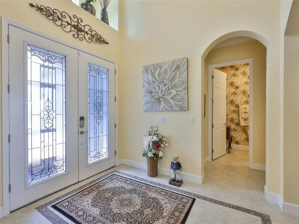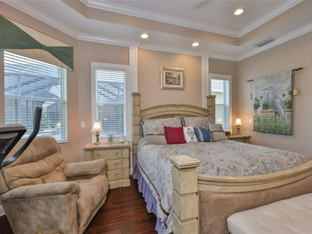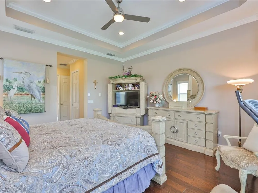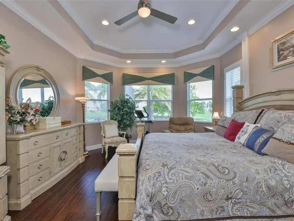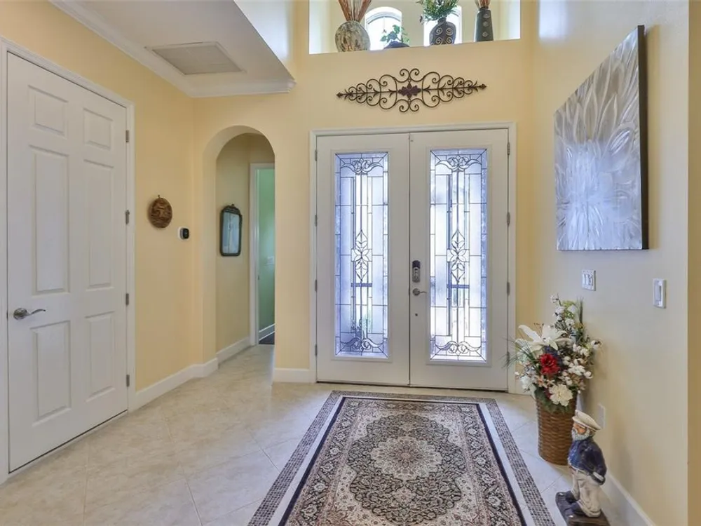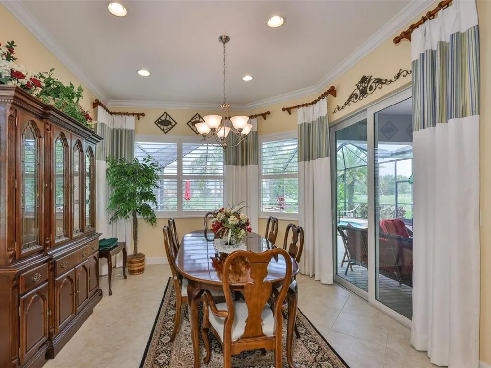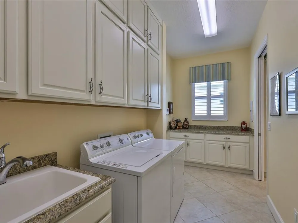 CLICK ON 3D TOUR ABOVE ------- STUNNING HOME FEATURING 3 CAR GARAGE, IMPACT WINDOWS, HEATED SALT WATER POOL, 2 PRIVATE OWNERS' SUITES, NEW ROOF (2025) PLUS UPGRADES GALORE!! (COMPLETE LIST OF ALL UPGRADES IS AVAILABLE). Welcome to active retirement living in the premier 55+ GATED COMMUNITY of Verona, where you'll feel like you're on vacation every day! This immaculate and perfectly maintained 2 bedrooms & 2 1/2 bathrooms "MONTECITO" model offers almost 2400 sq ft of modern open living space. You'll love the elegant touches throughout, such as crown molding, coffered & tray ceilings, plantation shutters & custom window treatments (2020), tasteful decor and ceramic tile & hardwood flooring. The gourmet eat-in kitchen is a cook's dream with 42 inch white cabinetry w/pullouts, stainless appliances that include a double wall oven & induction cooktop (2022), granite counters and huge island for extra seating. The large great room is the perfect space for all your entertainment needs and allows your guests easy access to the lanai area. The den/office has beautiful custom built-in work spaces & bookshelves. For an added bonus, this home has 2 private owners' suites, both with plenty of closet space and lovely ensuite bathrooms. When you want to relax, retreat to your very own private oasis in the extended lanai that features a gorgeous heated salt-water pool w/custom waterfall, built-in outdoor kitchen w/gas grill, refrigerator & sink, plus a covered area for entertaining that has an impact screen for storm protection. HVAC WAS REPLACED 2023 AND WATER HEATER 2025. The new owner will have access to both Club Renaissance, where you can enjoy dining, drinks, fitness classes, spa, social activities PLUS all Sun City amenities such as shopping, restaurants, banking, doctors, numerous social clubs, pickleball and so much more, all accessible by golf cart. So come and view this beauty today and see why you'll want to call it home!