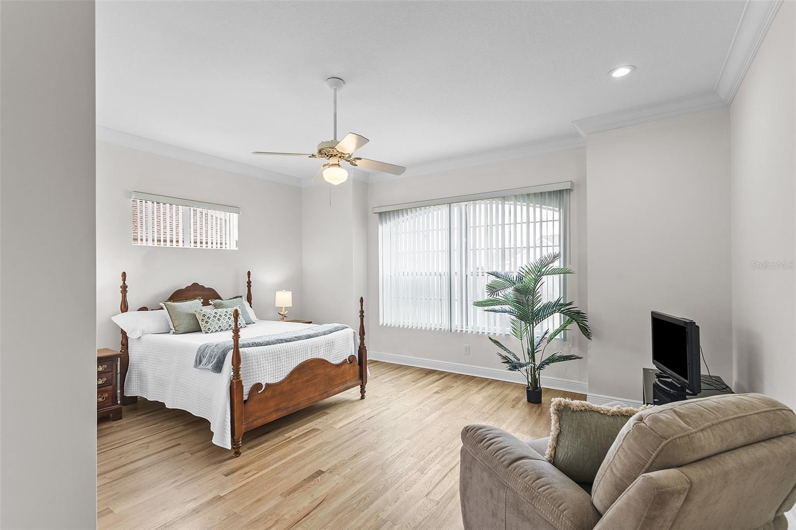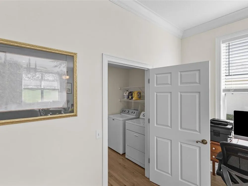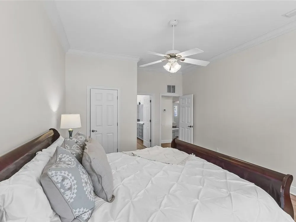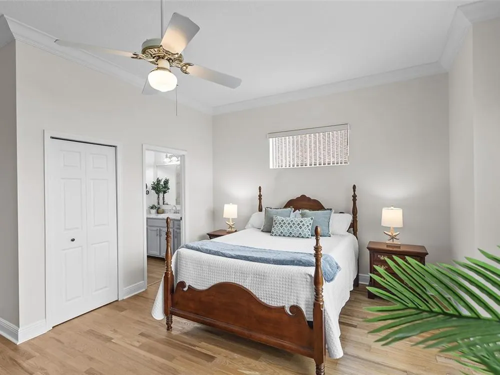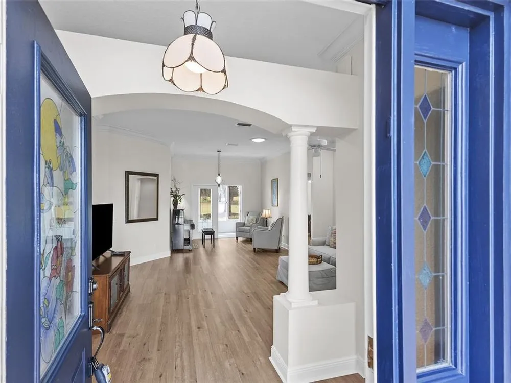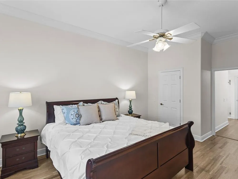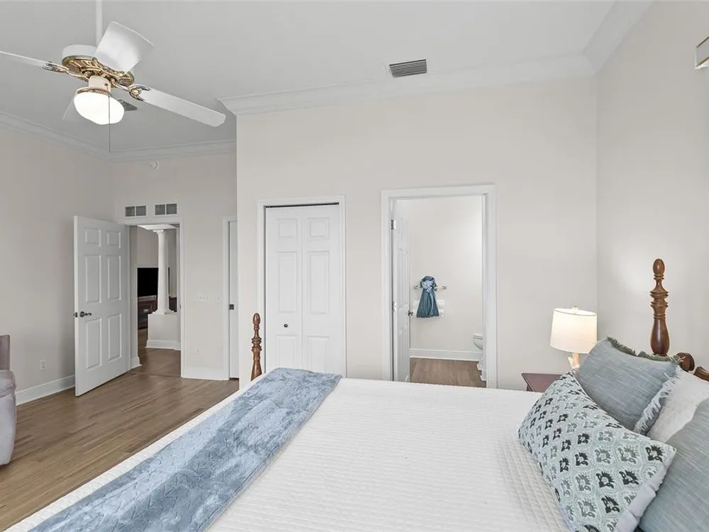 - Crown Molding, Eat-in Kitchen, High Ceilings, Kitchen/Family Room Combo, Main Level Primary, Split Bedrooms, Walk-In Closet(s), Window Treatments