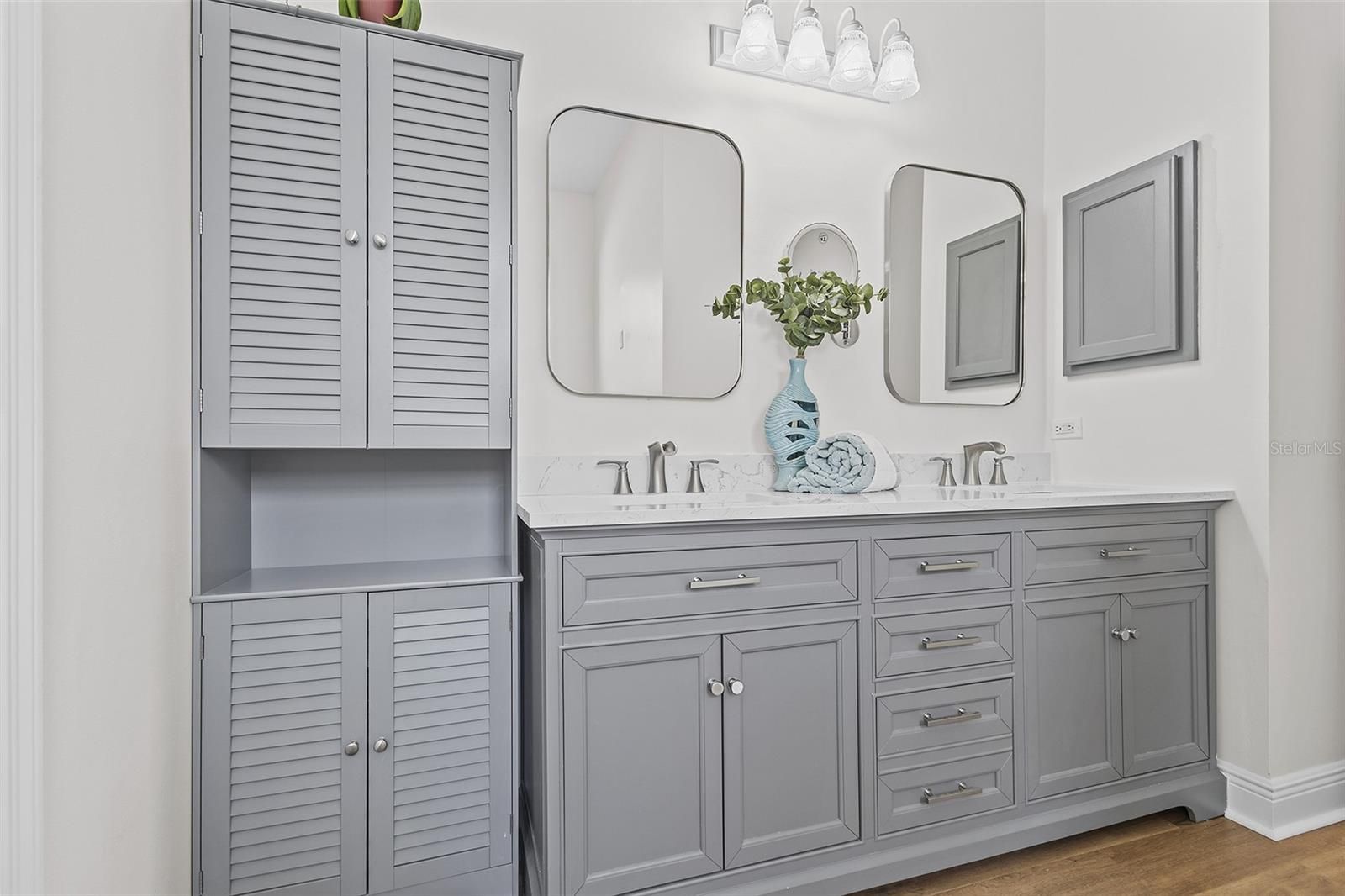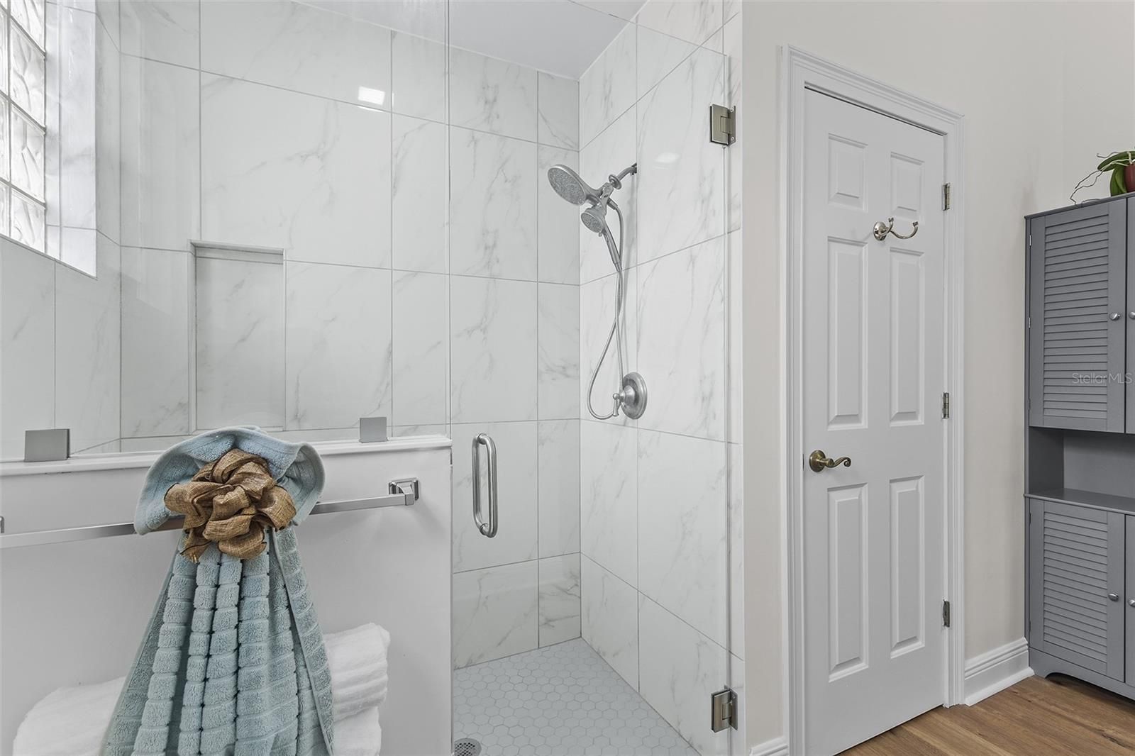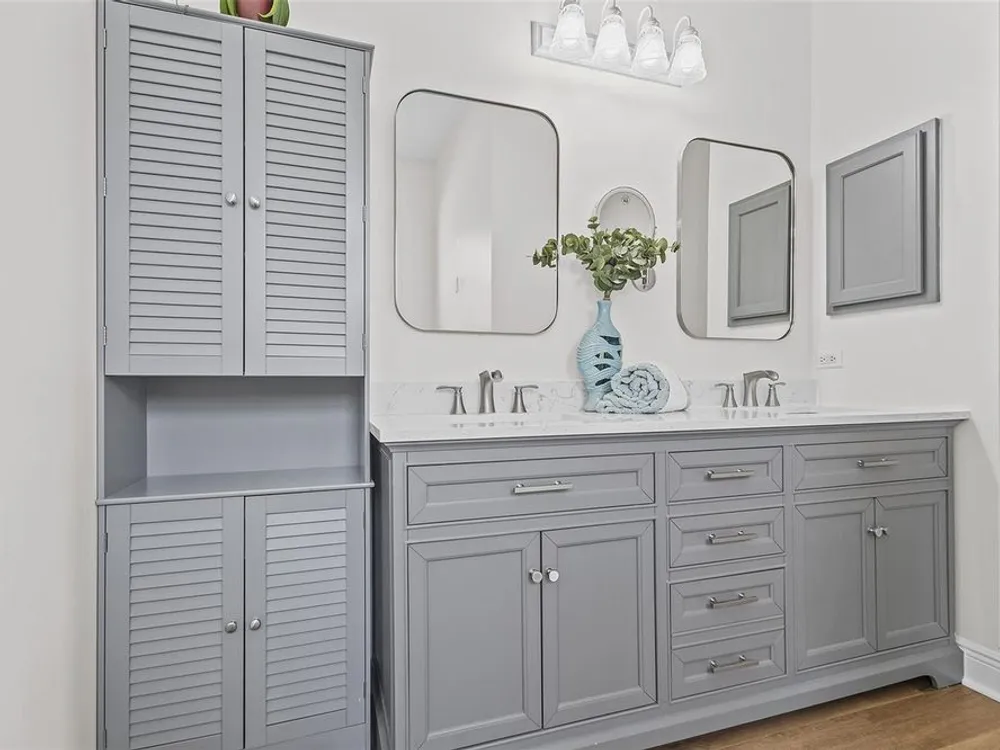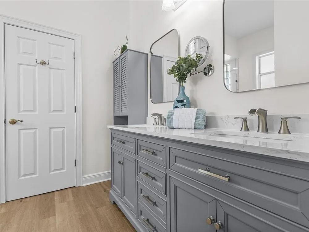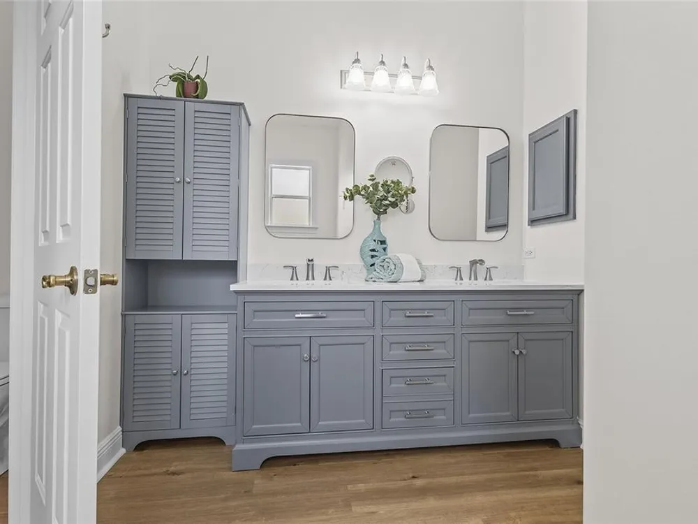 - Crown Molding, Eat-in Kitchen, High Ceilings, Kitchen/Family Room Combo, Main Level Primary, Split Bedrooms, Walk-In Closet(s), Window Treatments