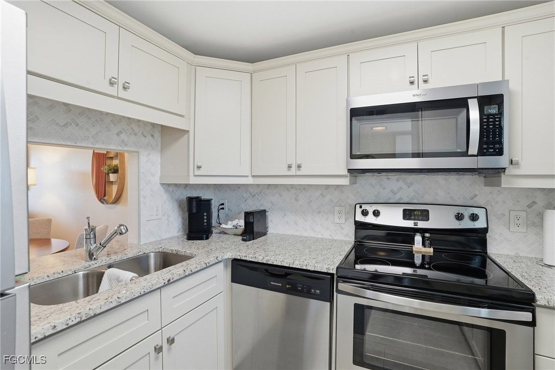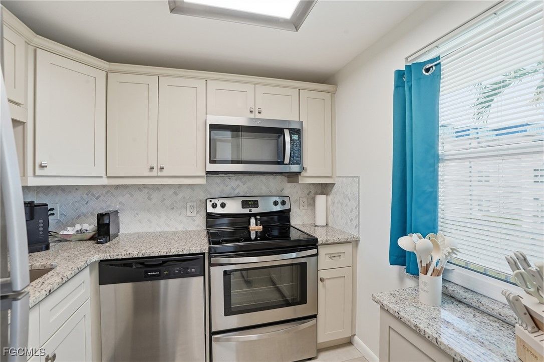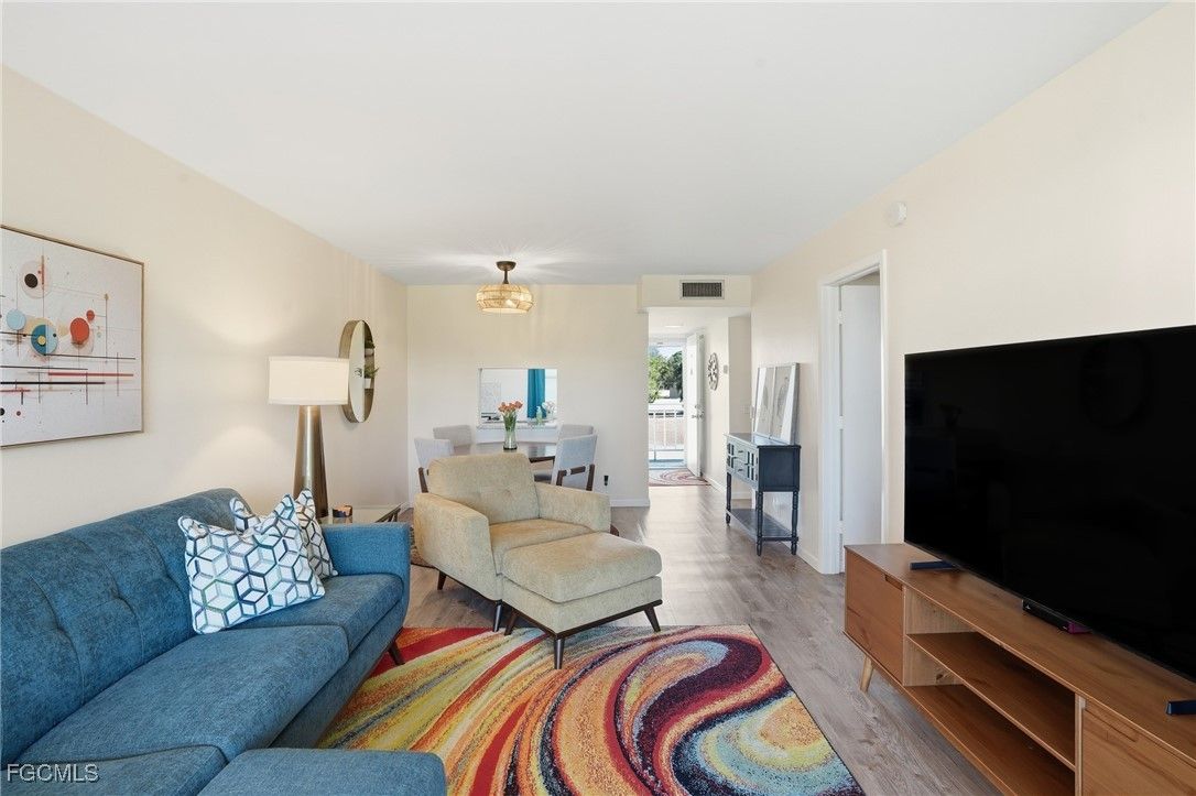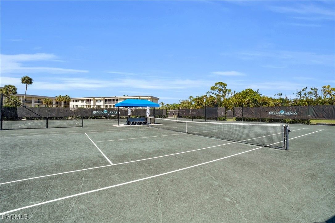 Experience simplified, resort-style living in this beautifully renovated 2-bedroom, 2-bath condo located in the highly desirable Seven Lakes Community, a vibrant 55+ bundled golf neighborhood in Fort Myers. This bright and inviting second-floor unit offers a smart split floor plan, new vinyl and tile flooring, updated fixtures, and turnkey modern décor throughout. The updated kitchen features soft-close cabinetry, granite countertops, stainless steel appliances, a stylish backsplash, and a cozy coffee bar—perfect for everyday living or entertaining. The spacious primary suite includes dual closets and an updated bath with quartz countertops and a walk-in shower. Enjoy peaceful mornings and sunsets from your screened lanai overlooking the golf course, with additional private storage for convenience. What truly sets Seven Lakes apart is its all-inclusive, predictable lifestyle. The HOA fee replaces many everyday expenses, covering golf membership, cable, internet, water, exterior insurance, exterior maintenance, amenities, and community transportation, allowing for low-hassle living with fewer separate bills. Residents enjoy an impressive array of amenities, including an 18-hole bundled golf course, six swimming pools, tennis and pickleball courts, fitness center, billiards room, library, on-site restaurant with no food minimums, creative spaces such as pottery and wood shops, and an on-site bus for easy transportation throughout the community. Ideally located just minutes from beaches, shopping, and dining, this turnkey condo offers the perfect combination of comfort, convenience, and a truly bundled lifestyle—where living is simple, social, and stress-free.