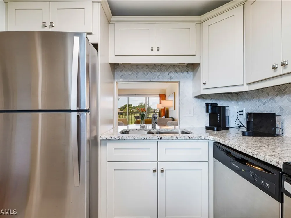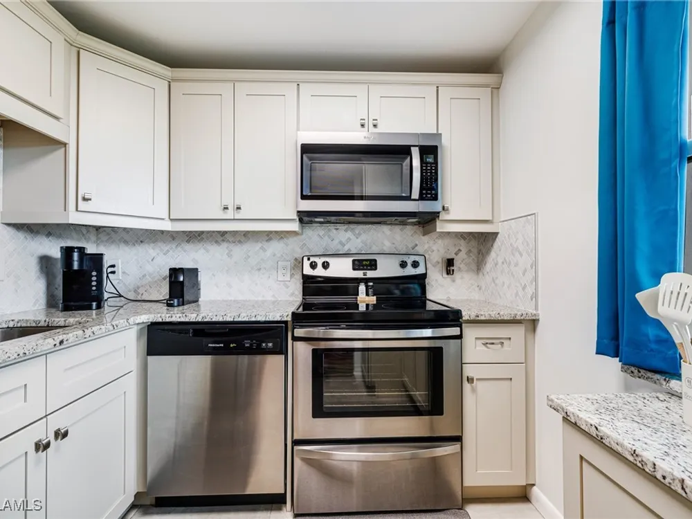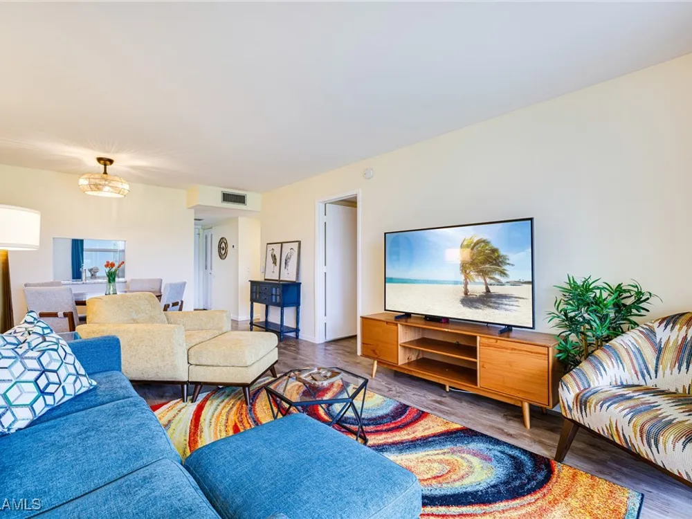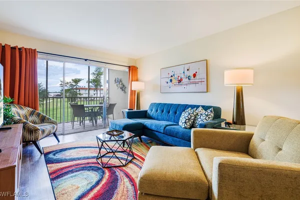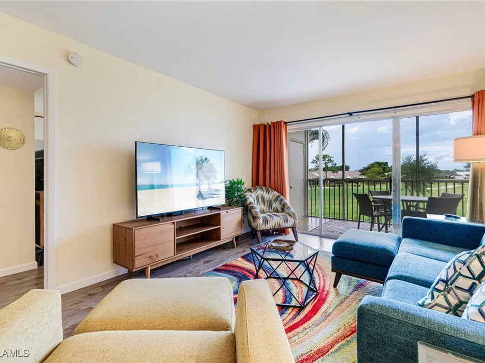 FURNISHED • BUNDLED GOLF • MOVE-IN READY! Enjoy resort-style living in this beautifully renovated 2-bedroom, 2-bath condo located in the highly sought-after Seven Lakes Community, a vibrant 55+ bundled golf neighborhood in Fort Myers! This bright 2nd-floor unit features a split floor plan, new vinyl & tile flooring, updated fixtures, and comes fully furnished with brand-new, stylish furniture. The stunning kitchen impresses with soft-close cabinets, granite countertops, stainless steel appliances, a striking backsplash, and a cozy coffee bar. The spacious master suite includes dual closets and an updated bath with quartz counters & walk-in shower. Enjoy peaceful golf course views from your screened lanai with private storage. Seven Lakes offers unmatched amenities—an 18-hole bundled golf course, 6 swimming pools, restaurant with no food minimums, tennis & pickleball courts, billiards, gym, library, and a full social calendar. Creative residents will love the pottery and wood shops, and the on-site bus makes getting around town a breeze. The HOA covers nearly everything—water, cable, internet, and exterior maintenance—leaving only your electric bill. Just minutes to beaches, shopping & dining—this turnkey condo truly has it all!